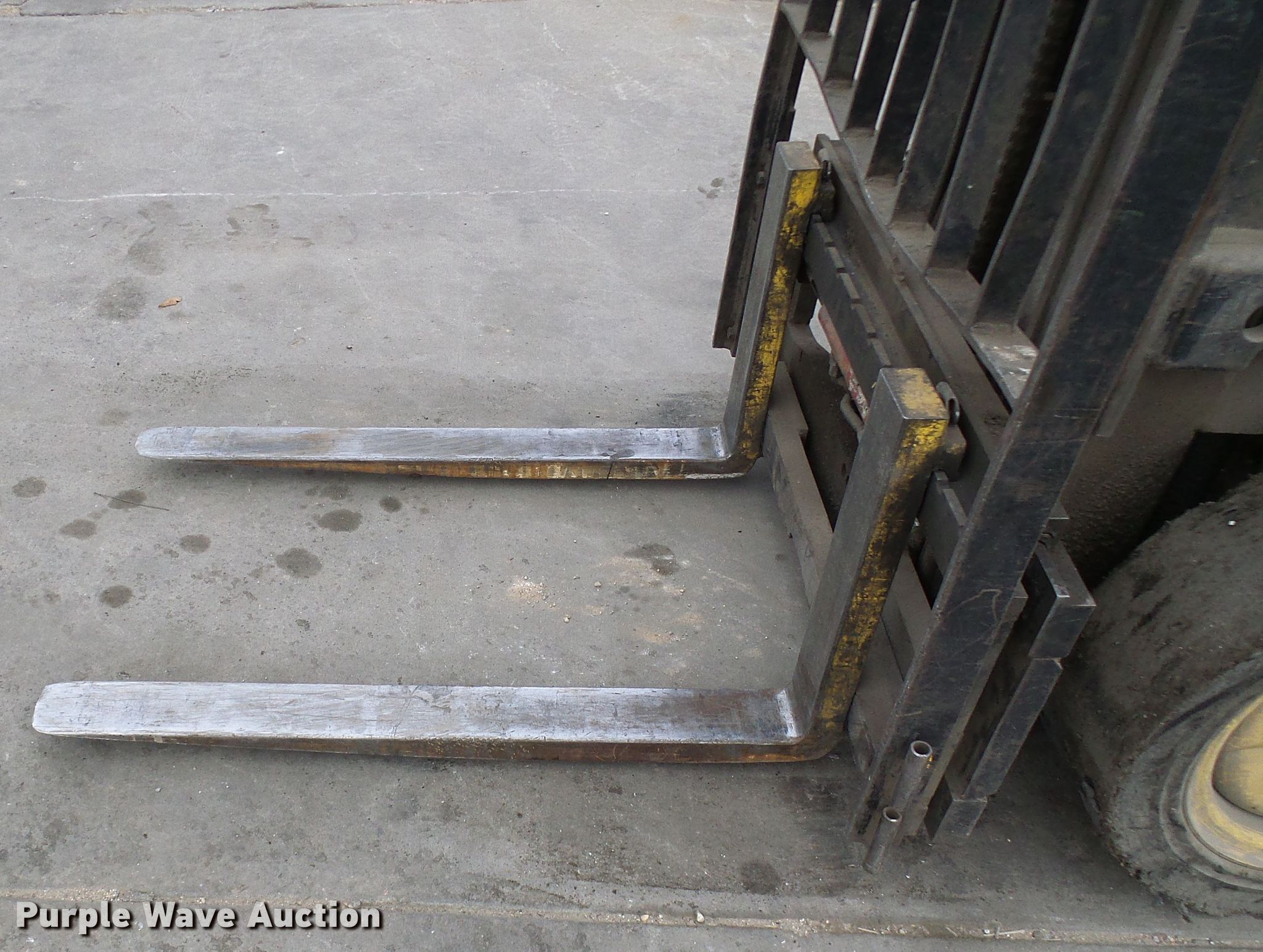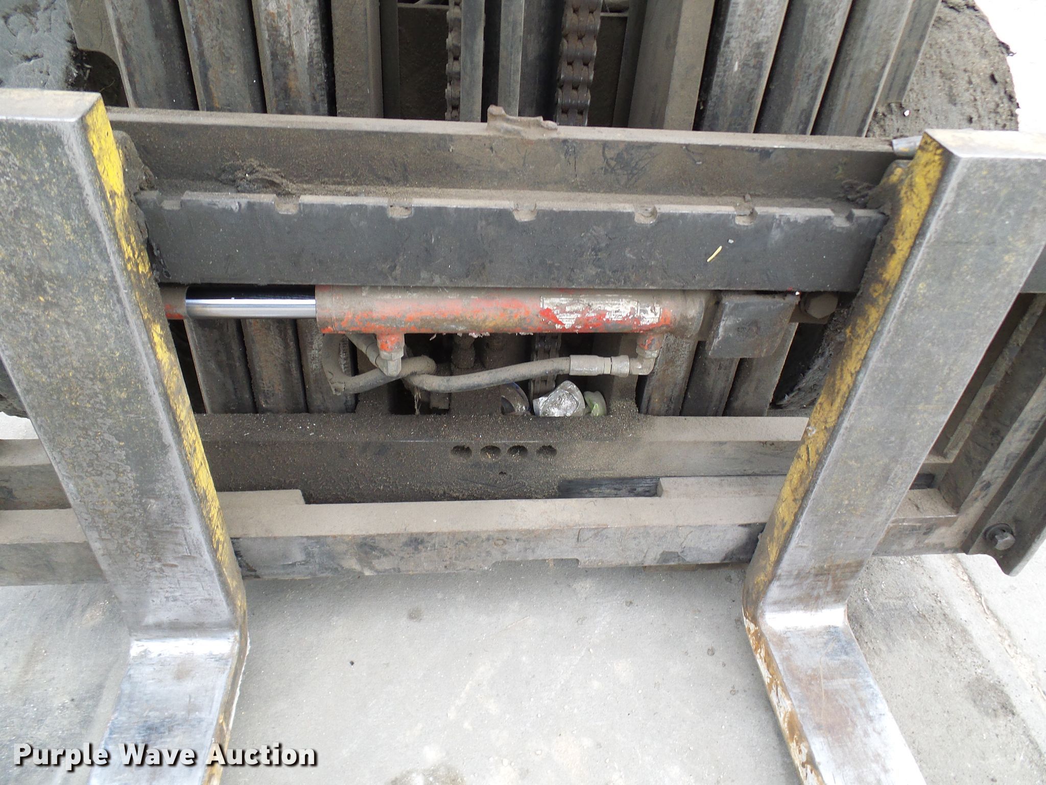 Daewoo G25SE forklift. 5,783 hours on meter, Serial: CX04217. Engine Cylinders: 4, Fuel type: LPG LP bottle: Included. Transmission Powershift, 1F - 1R. Operators station Canopy. Operational Maximum lift capacity: 5,000 lbs, Maximum lift height: 173", Side shift, Mast tilt, Fork length: 42". Tires Solid. Reed's Automotive. 20 Twiggy Ln. Eldon, MO 65026