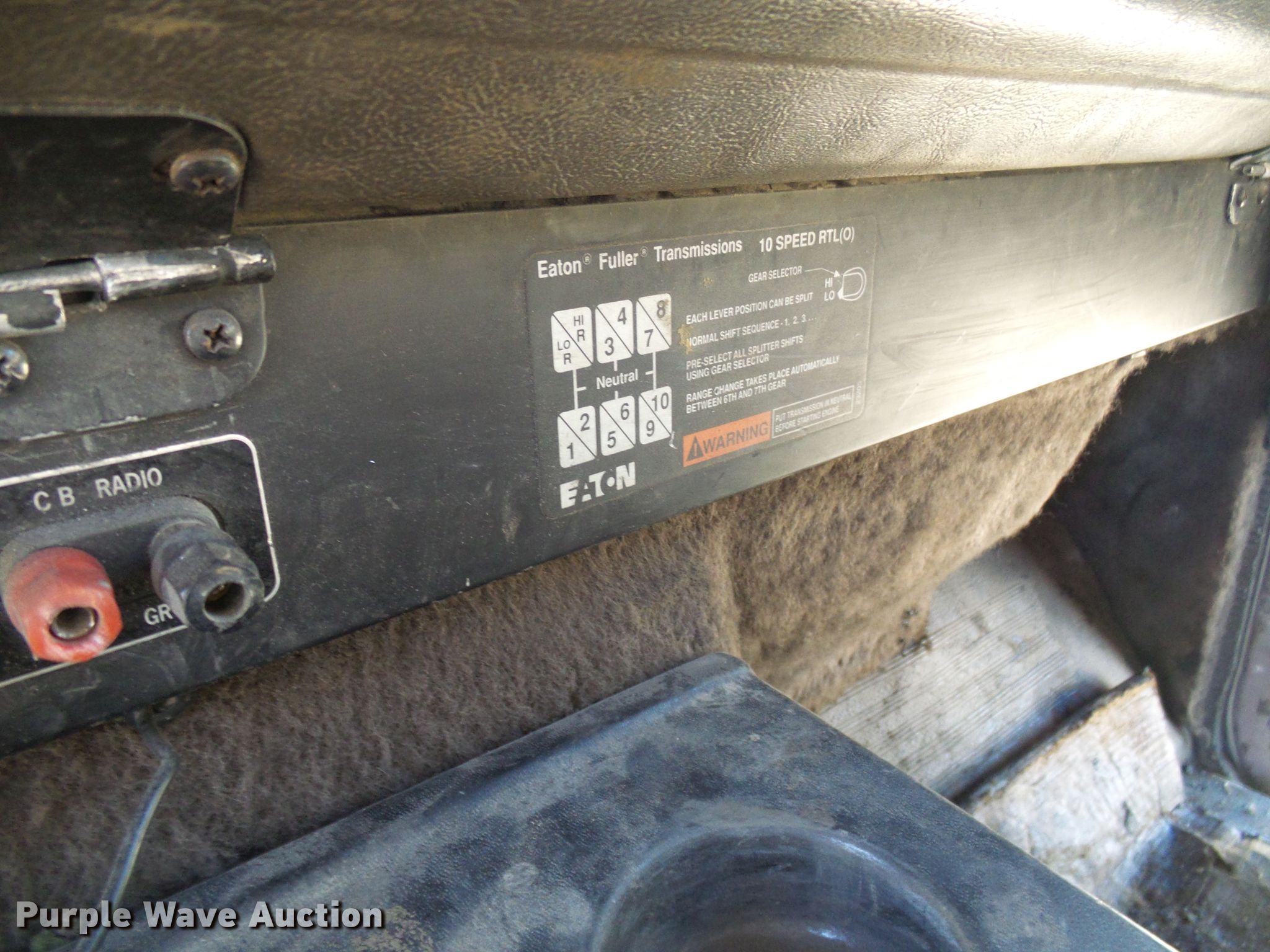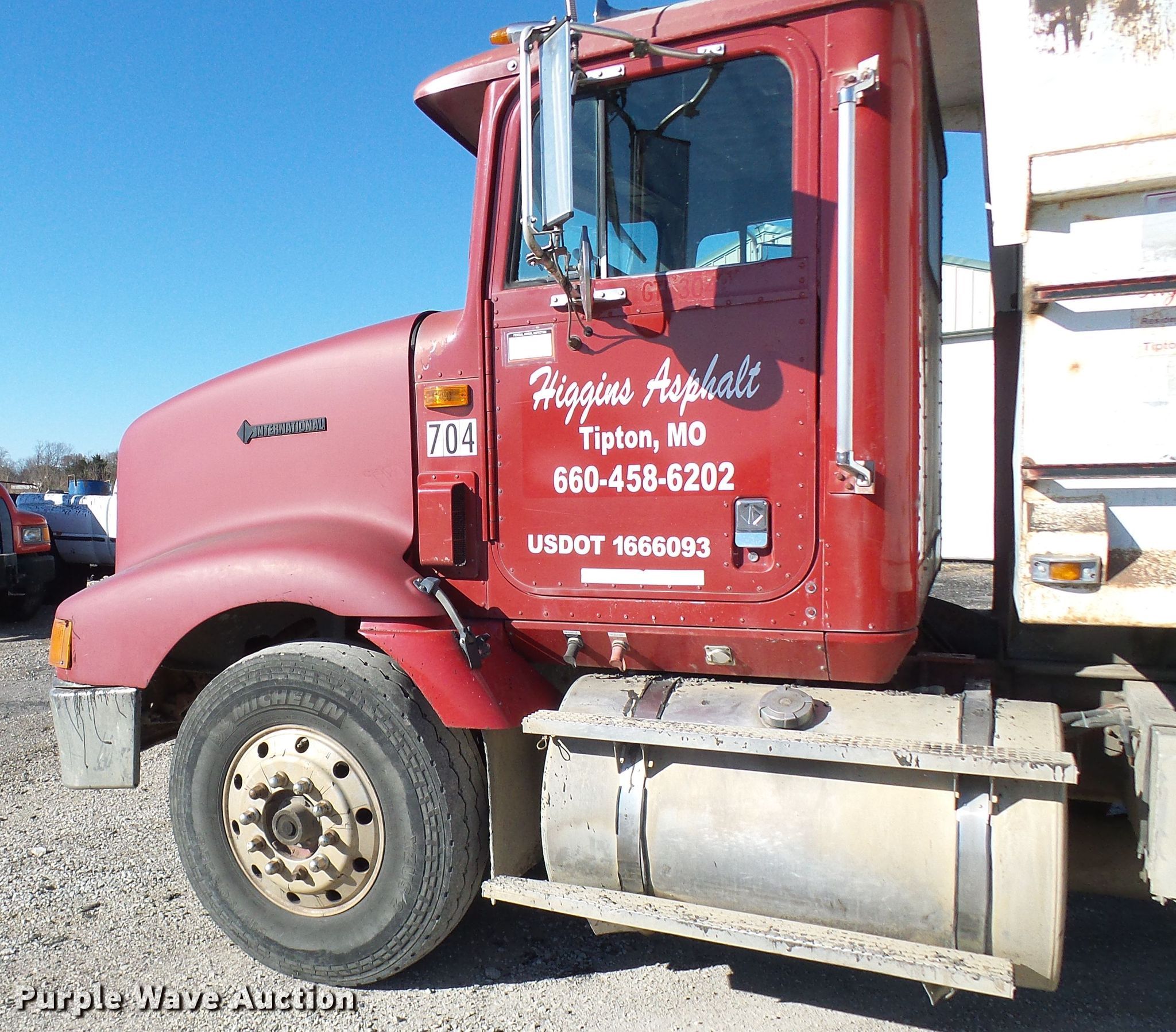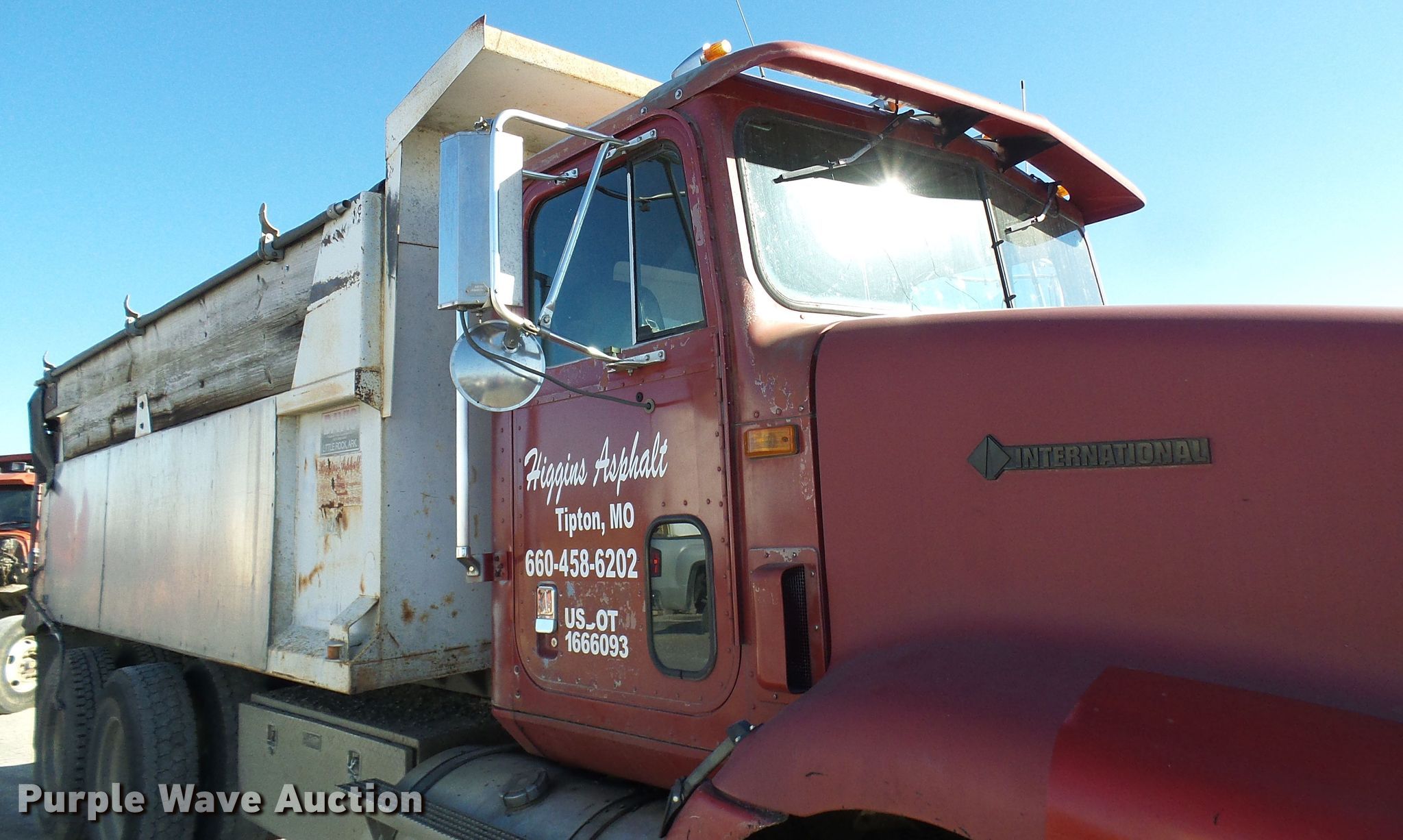 1993 International 9200 dump truck. 98,461 miles on odometer. Engine Cummins L10, Displacement: 10.0L, Cylinders: 6, Fuel type: Diesel. Transmission Eaton Fuller , Manual, Speed: 10. Chassis Axles: Tandem, Differential lock: Inter-axle, Suspension: Air, Brakes: Air, PTO, GVWR: 52,000 lbs. Interior AC, Heat, Heated mirrors. Operational Dump bed 16' L x 96" W, Side height: 36", Side board height: 22", Bed type: Steel, Roll tarp, Ram: Single , End gate: Air operated. Tires Front: 315/80R22.5 , Rear: 11R22.5. Missouri title. 2HSFMA7R8PC076567. Higgins Asphalt. 35086 Higgins Rd. Tipton, MO 65081