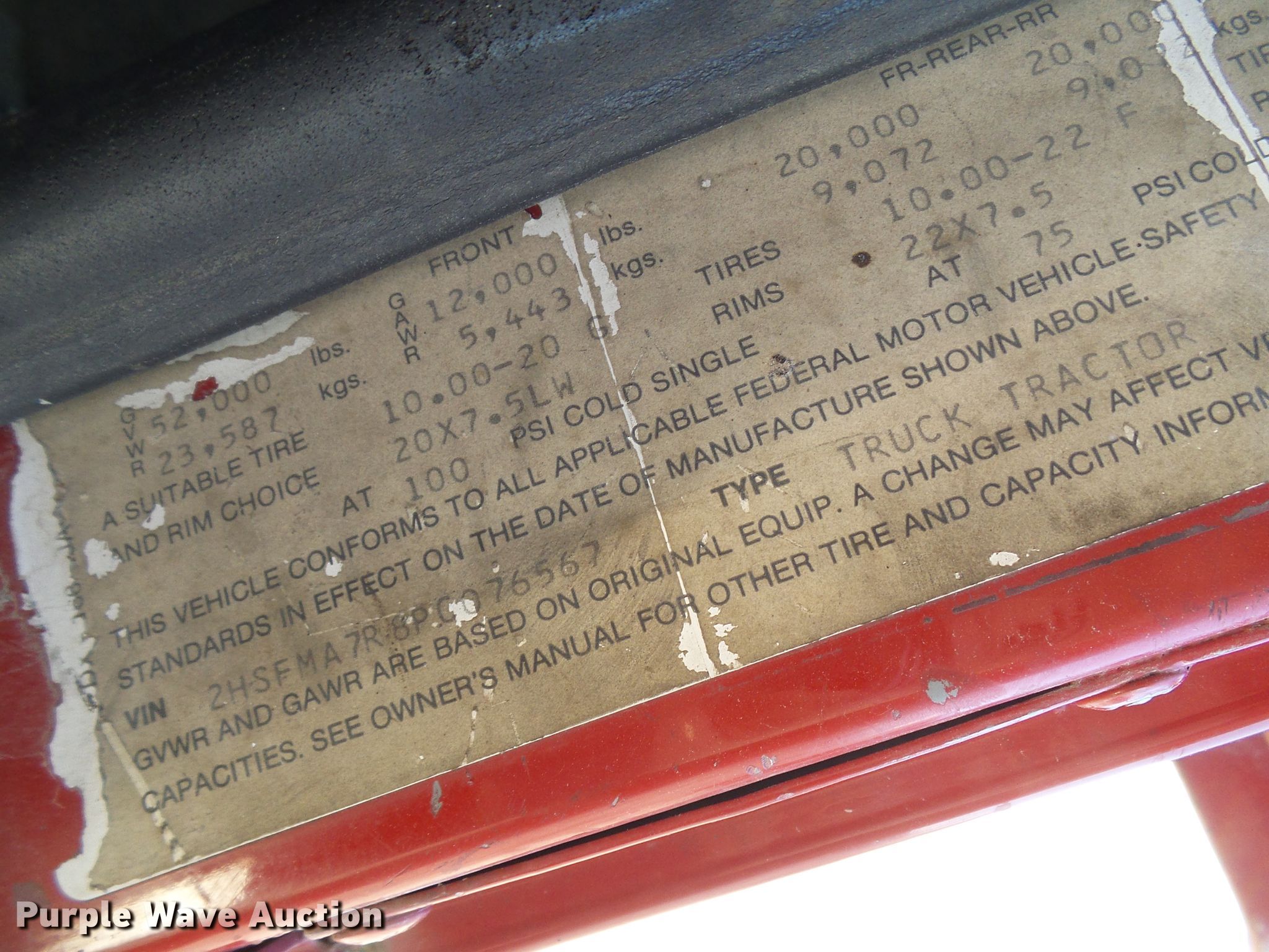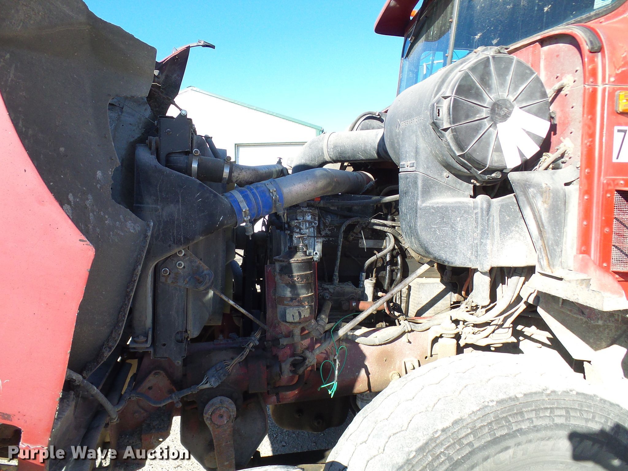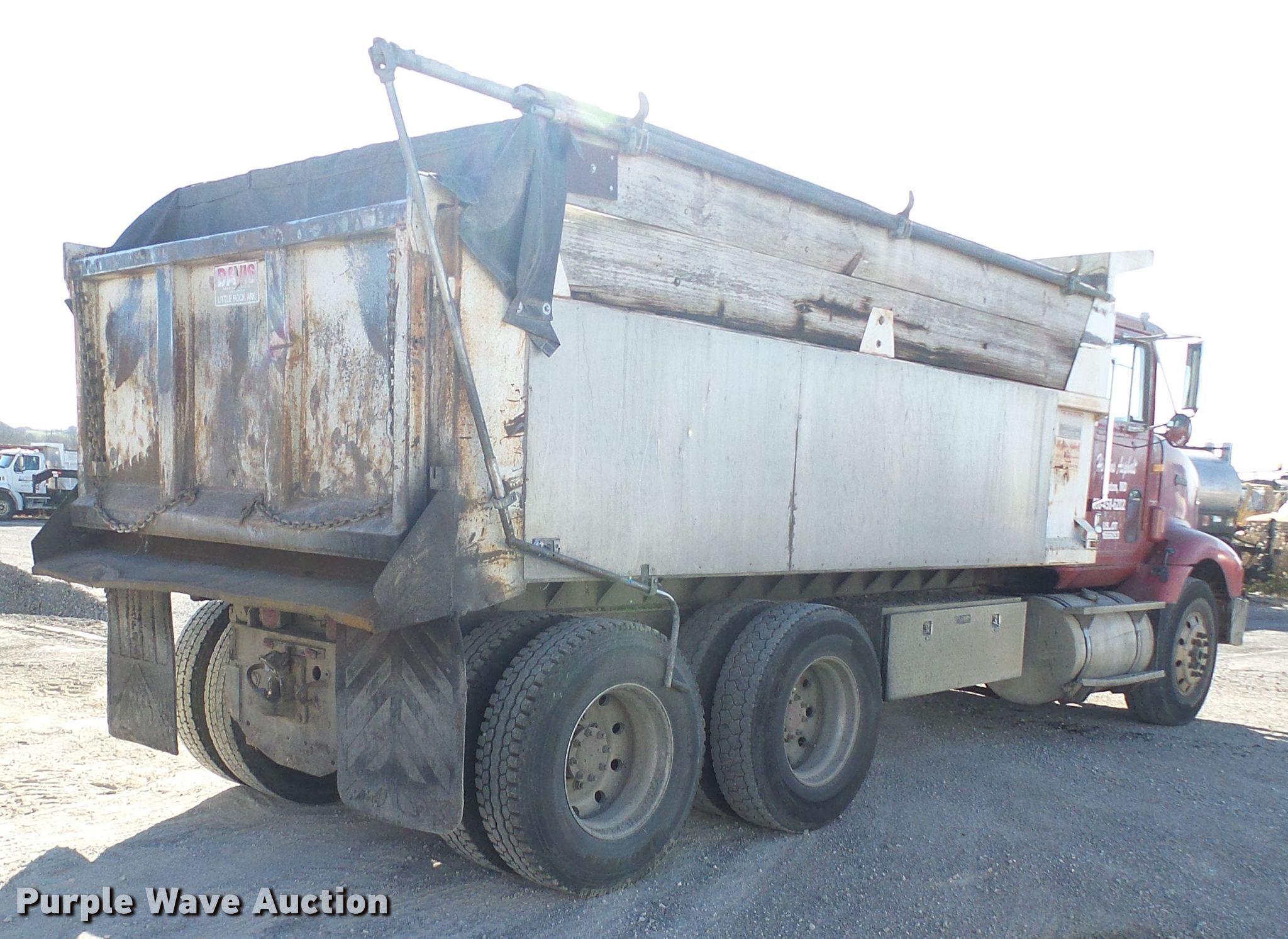 1993 International 9200 dump truck. 98,461 miles on odometer. Engine Cummins L10, Displacement: 10.0L, Cylinders: 6, Fuel type: Diesel. Transmission Eaton Fuller , Manual, Speed: 10. Chassis Axles: Tandem, Differential lock: Inter-axle, Suspension: Air, Brakes: Air, PTO, GVWR: 52,000 lbs. Interior AC, Heat, Heated mirrors. Operational Dump bed 16' L x 96" W, Side height: 36", Side board height: 22", Bed type: Steel, Roll tarp, Ram: Single , End gate: Air operated. Tires Front: 315/80R22.5 , Rear: 11R22.5. Missouri title. 2HSFMA7R8PC076567. Higgins Asphalt. 35086 Higgins Rd. Tipton, MO 65081