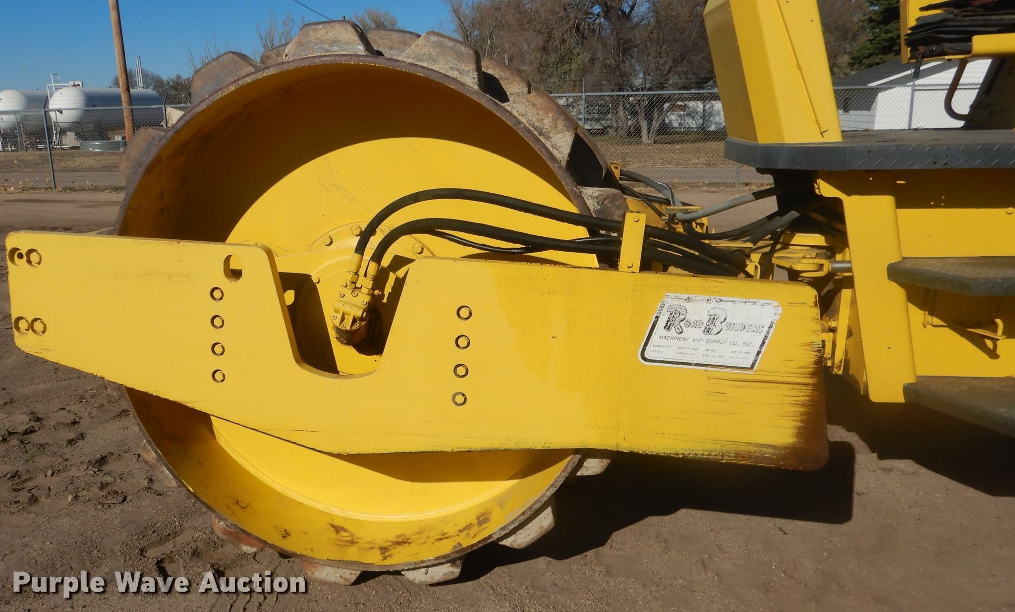 1987 Bomag BW213PD vibratory single drum roller. 6,727 hours on meter, Serial: 101400170130. Engine Cylinders: 6, Fuel type: Diesel. Transmission Hydrostatic. Operational Drum: Padfoot, Vibratory system: Two speed, Drum width: 83", Drum diameter: 58", Drum scrapers: Front. Tires Size: 23.1-26, Brand: Firestone. Charley Lloyd Construction. 42397 Sand Valley Rd. Callaway, NE 68825