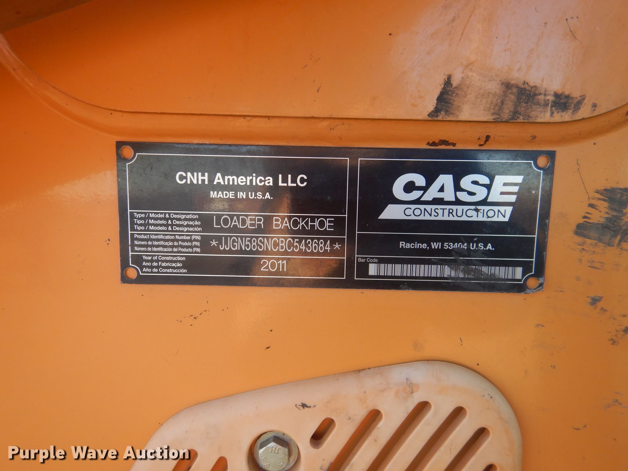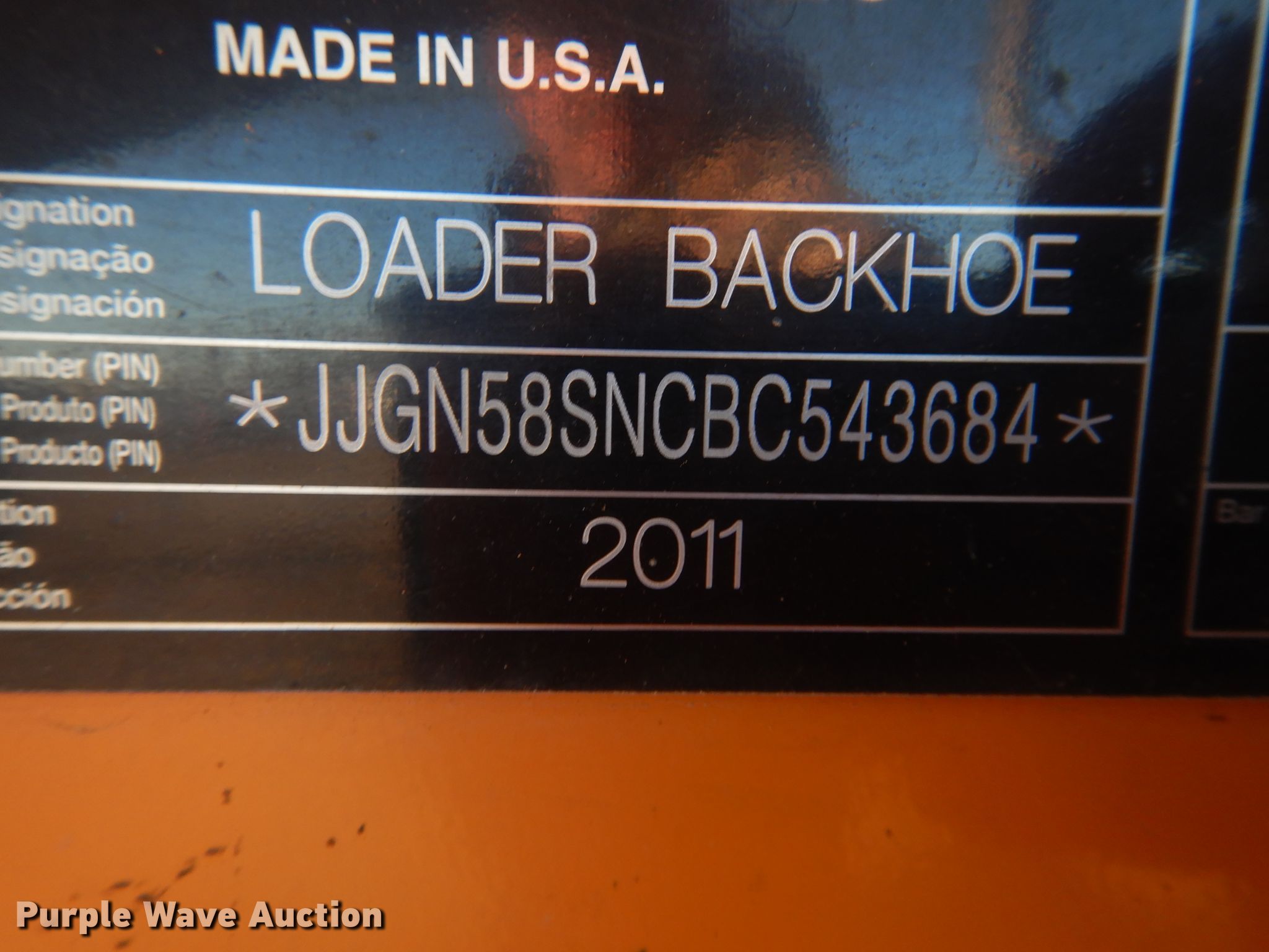 Purple Wave is selling a used Tractor Loader Backhoe in Oklahoma. This item is a 2011 Case 580 Super N backhoe with the following: 3,718 hours on meter, Serial: JJGN58SNCBC543684, Unit #: 210