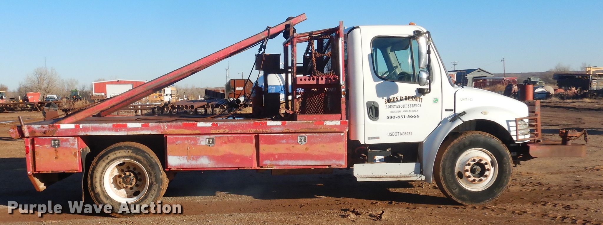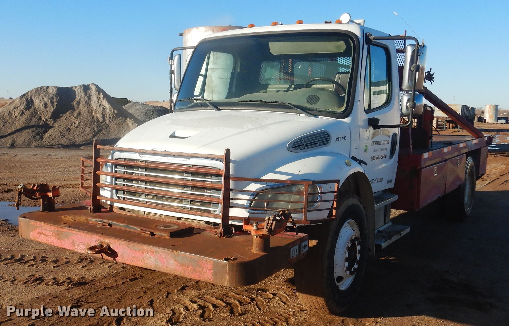 Purple Wave is selling a used Oilfield Truck in Oklahoma. This item is a 2004 Freightliner Business Class M2 winch truck with the following: 318,083 miles on odometer