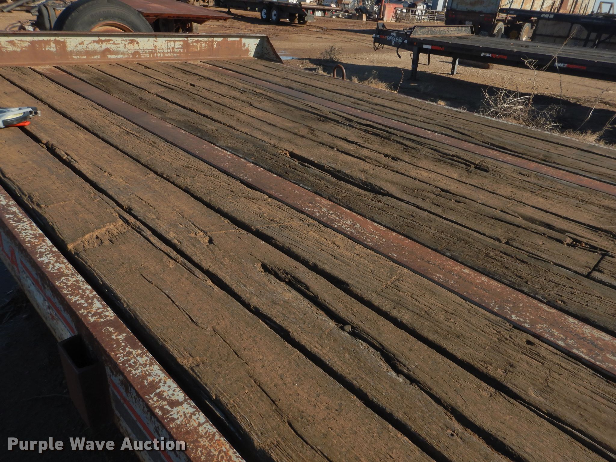 Purple Wave is selling a used Equip. Trailer in Oklahoma. This item is a 2000 Interstate 400LA equipment trailer with the following: 35'L x 102"W overall, 24'L x 102"W wood deck, 5' tail length, 4.5'L ramps, Single leg landing gear, Spring suspension, Electric brakes, Tandem axle, 215/75R17 tires