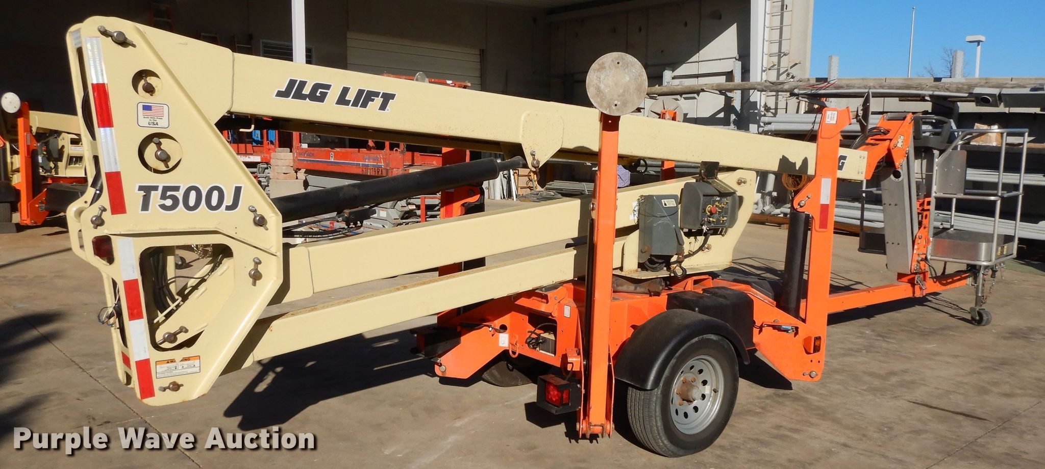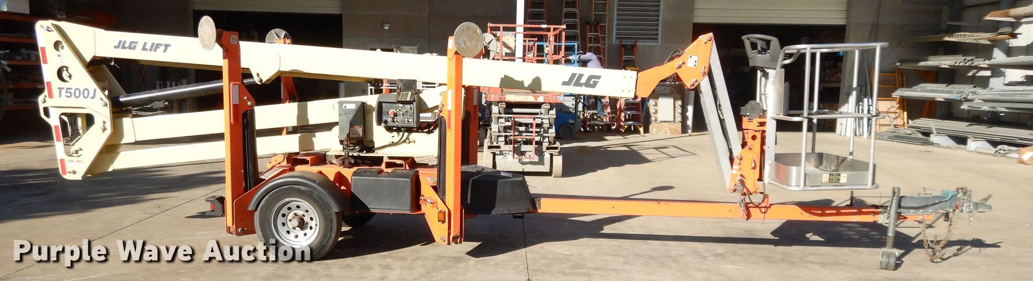 2014 JLG T500J boom lift. 293 hours on meter, Serial: 0030006262. Electric Motor Volts: 24. Operational Articulating boom, Tow behind, Maximum lift capacity: 500 lbs, Maximum reach length: 30', Maximum lift height: 50', Hydraulic outriggers, Hydraulic extendable jib, Platform: 46" L x 28" W, Controls: Platform, Ground, Platform rotation: Hydraulic, Material handler 500 lbs capacity. Tires Tire size: 225/75R15. Kansas title. Title distribution may be delayed up to 14 days from verification of funds. 5DYACJ1J1EP006262. Heritage Electric. 841 N Mart-way Dr. Olathe, KS 66061