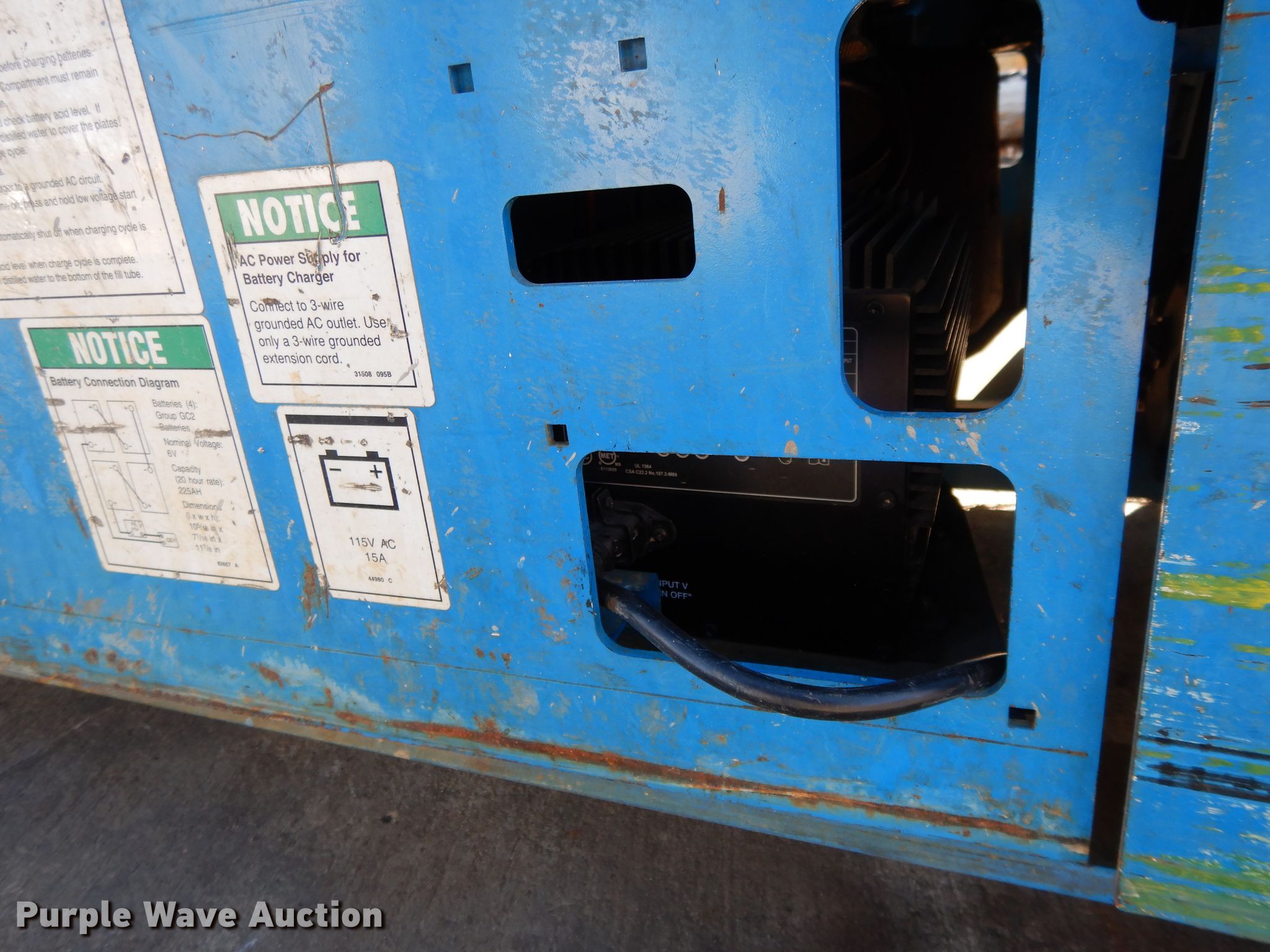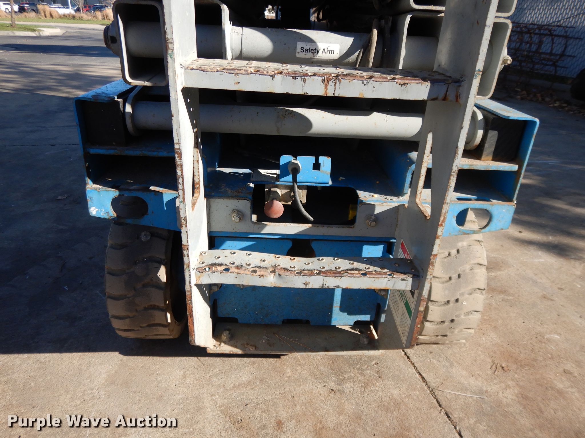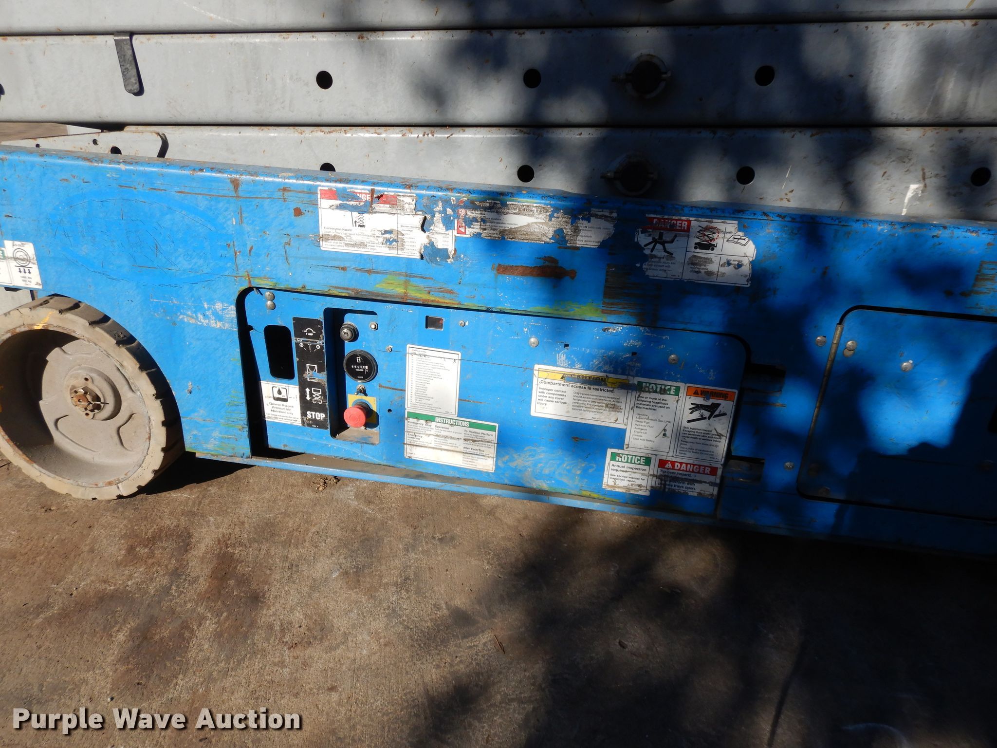 2006 Genie GS-2632 scissor lift. 439 hours on meter, Serial: GS320677761. Electric Motor Volts: 24. Operational Maximum lift capacity: 500 lbs, Maximum lift height: 26', Platform: 89" L x 32" W, Controls: Platform, Platform extensions: Manual. Tires Tire size: 15x5, Solid. Heritage Electric. 841 N Mart-way Dr. Olathe, KS 66061