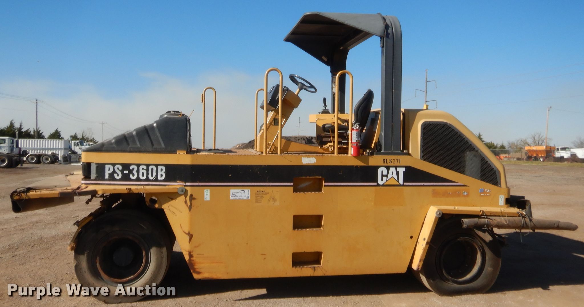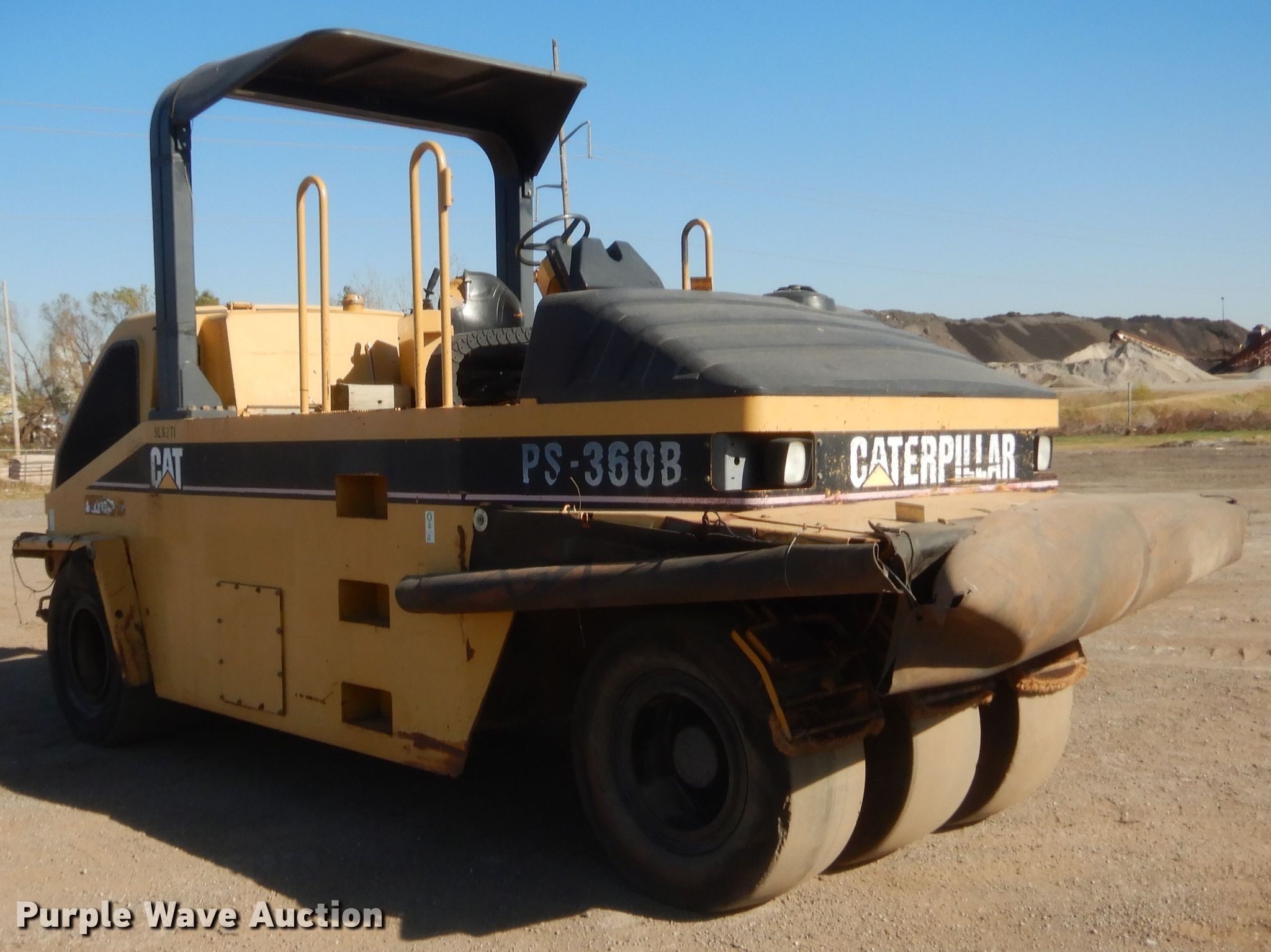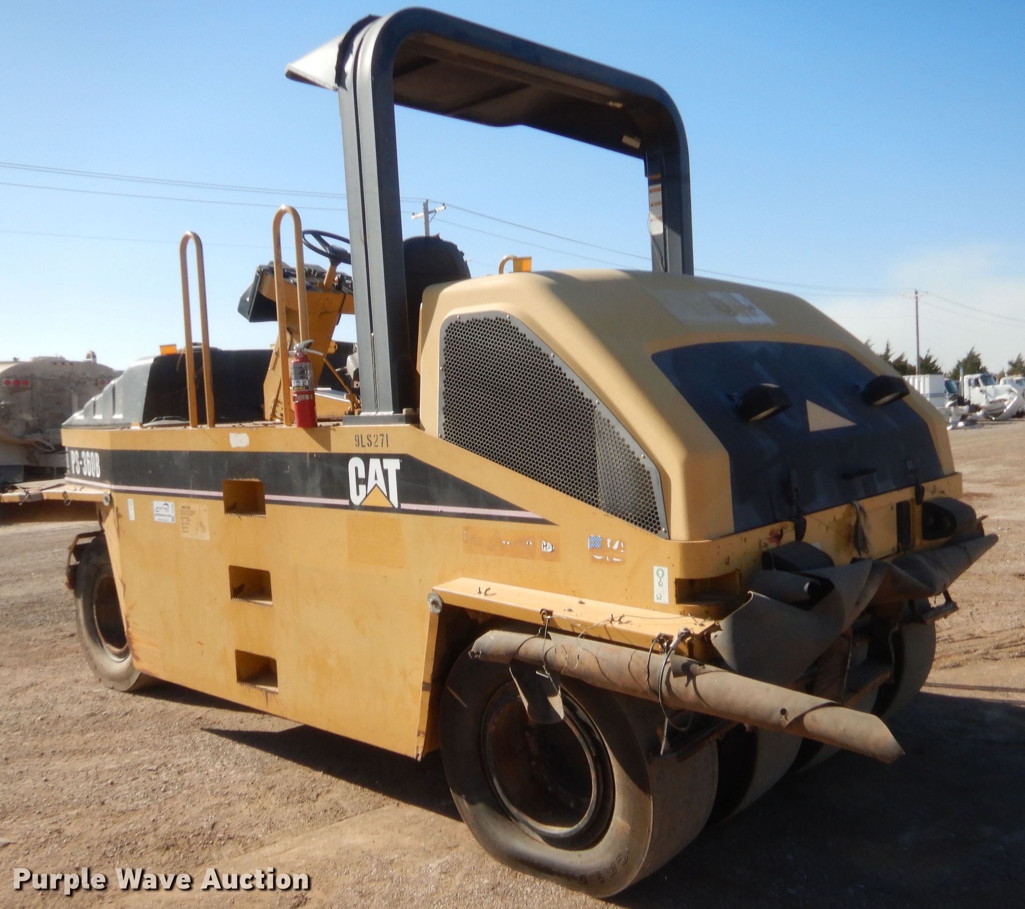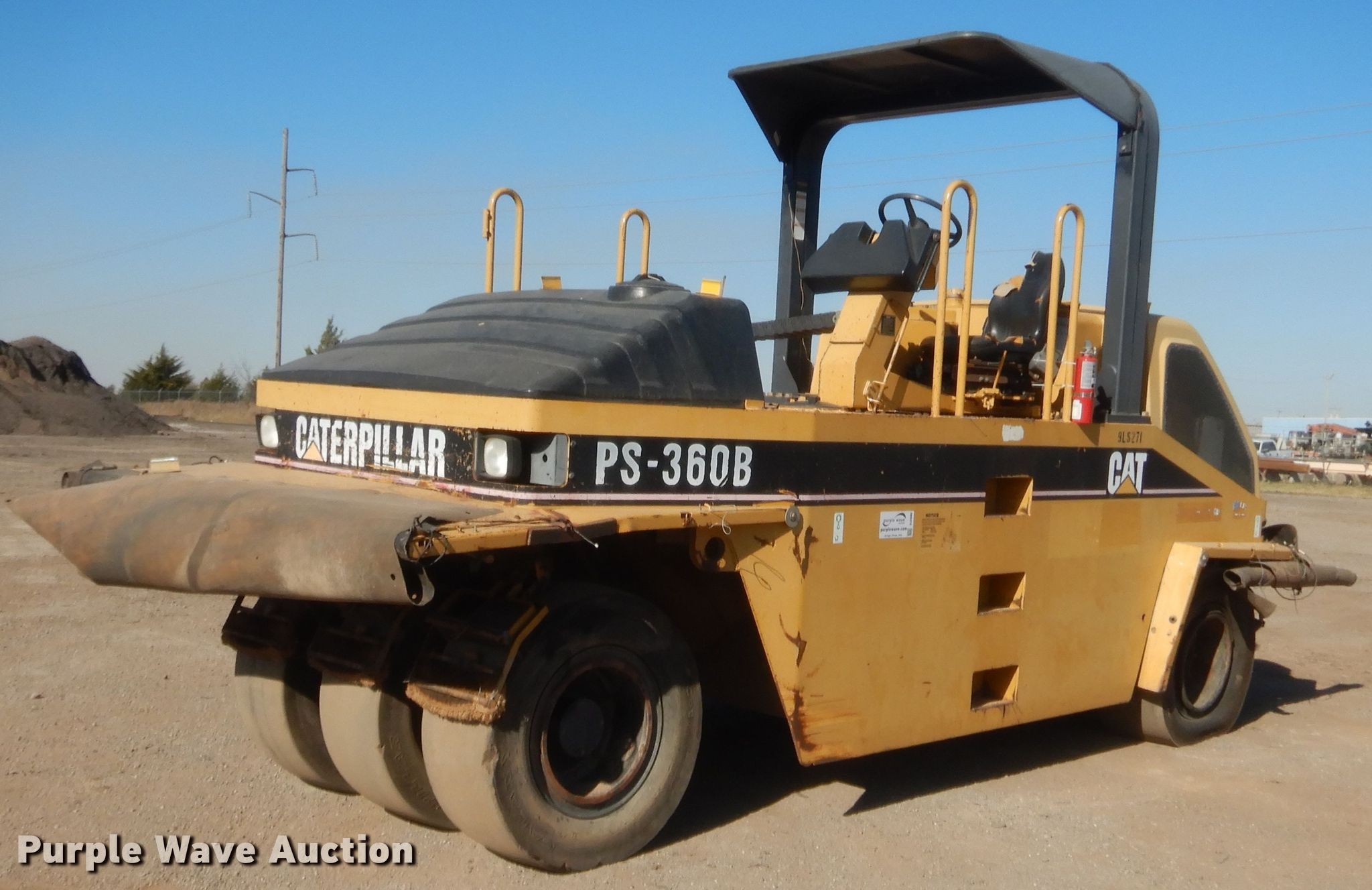 Purple Wave is selling a used Pneumatic Roller in Oklahoma. This item is a 2003 Caterpillar PS-360B pneumatic roller with the following: 9,912 hours on meter, Serial: CATPS360E9LS00271