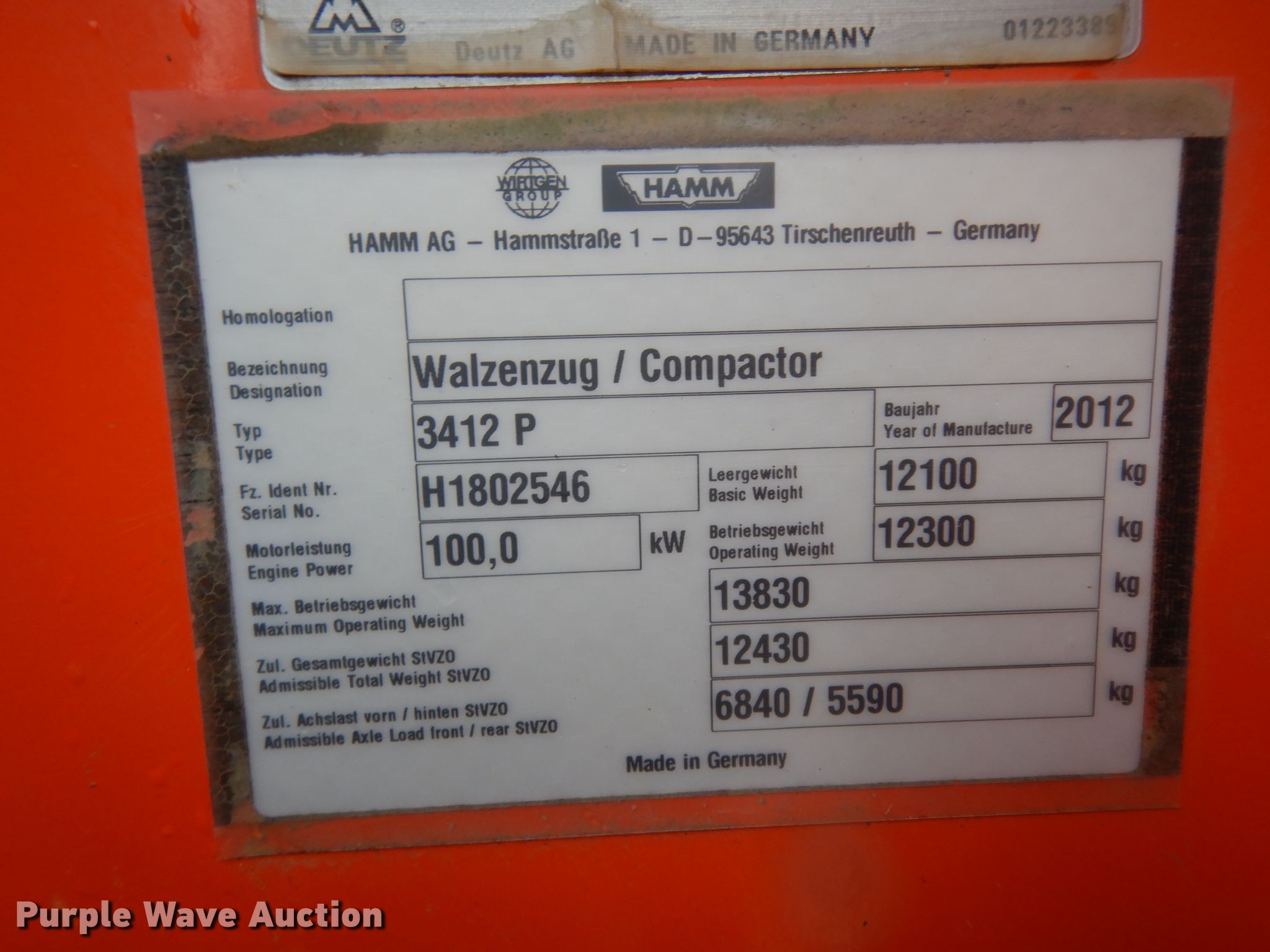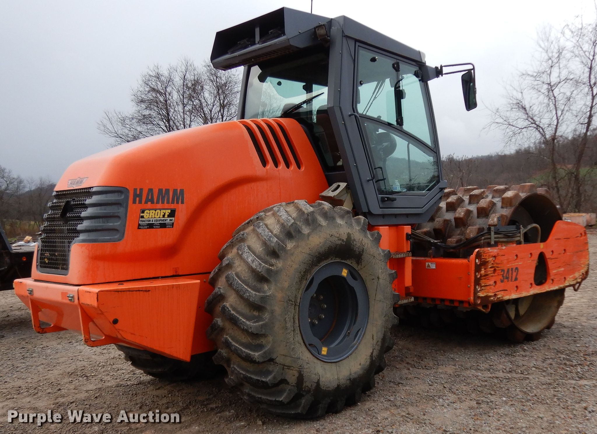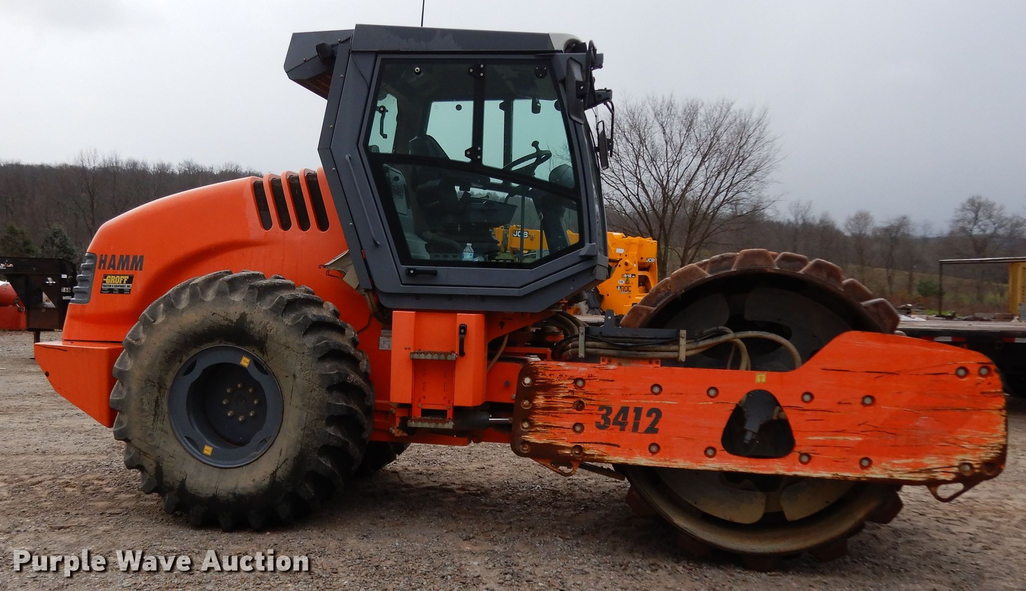 Purple Wave is selling a used Single Drum Roller Compactor in Pennsylvania. This item is a 2012 Hamm 3412P vibratory single drum roller compactor with the following: 4,674 hours on meter, Serial: H1802546