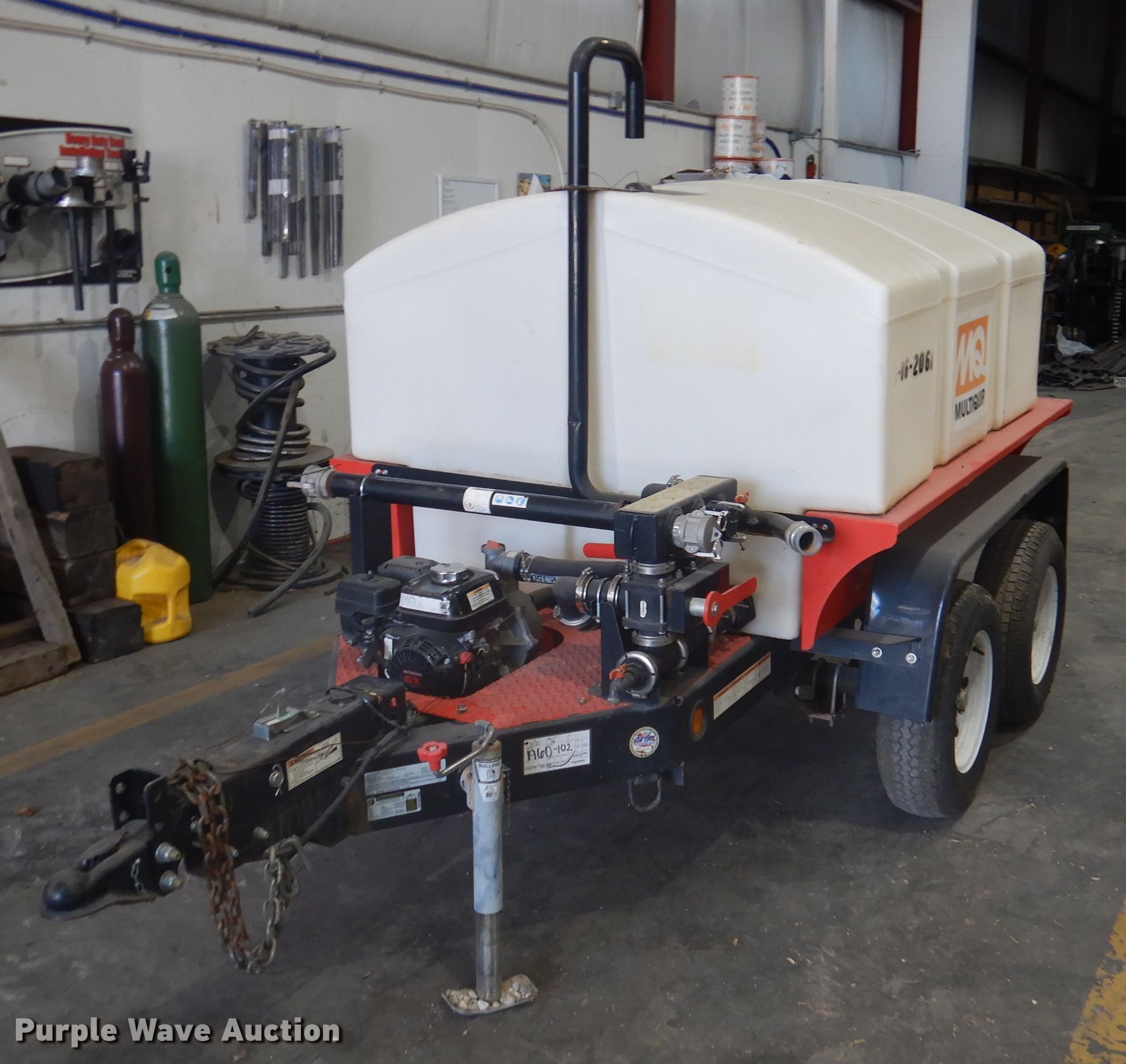 Purple Wave is selling a used Tank Trailer in Missouri. This item is a Multiquip WT5 tank trailer with the following: Honda GX160 gas engine, 55 gallon tank, Multiquip QP-2H 2x2 pump, Intake hose, Discharge hose, Surge brakes, ST205/75D14 tires