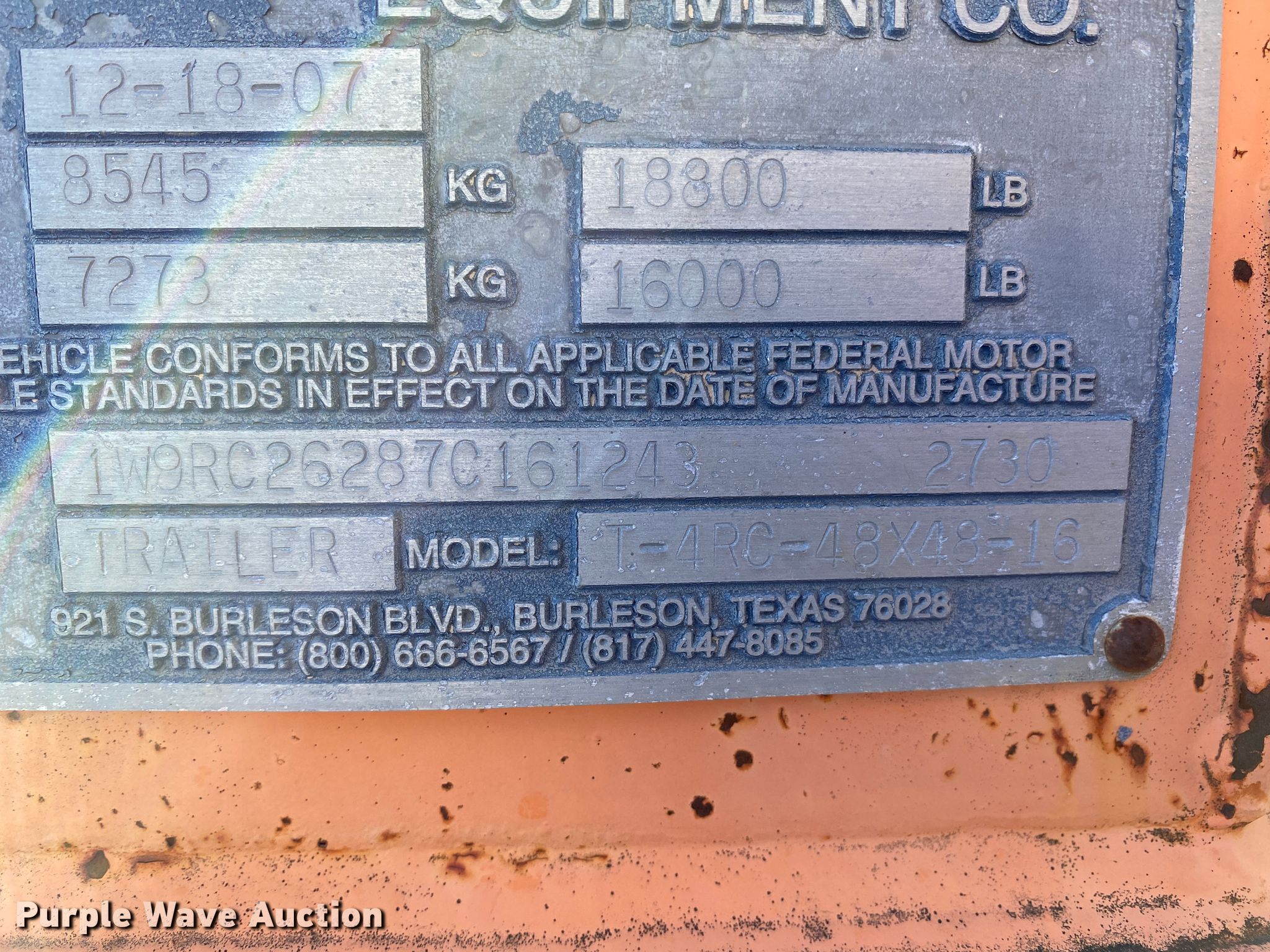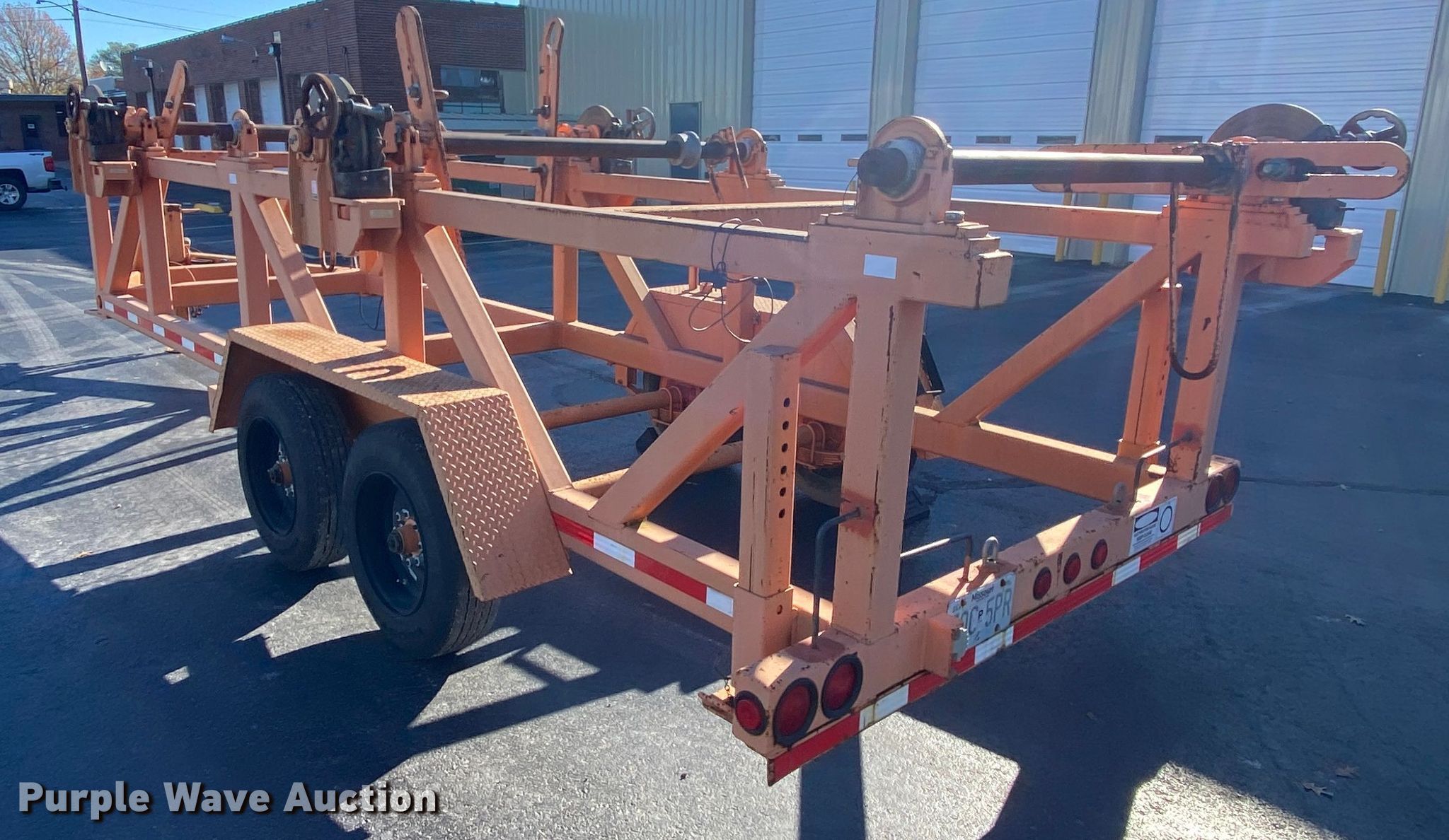 Purple Wave is selling a used Reel Trailer in Missouri. This item is a 2007 Wagner Smith T-4RC-48X48-26 reel trailer with the following: 26'L x 8'W, Four reel capacity, 55" maximum reel width, Single leg landing gear, Spring suspension, Electric brakes, Tandem axle, 215/75R17.5 tires, GVWR 18,800 lbs