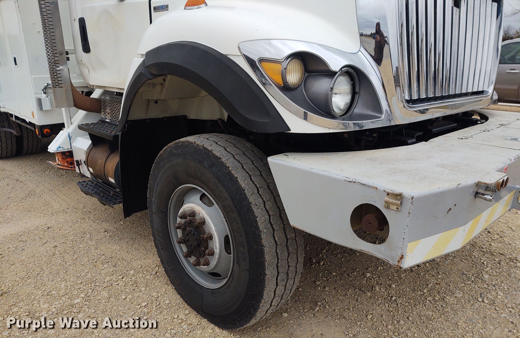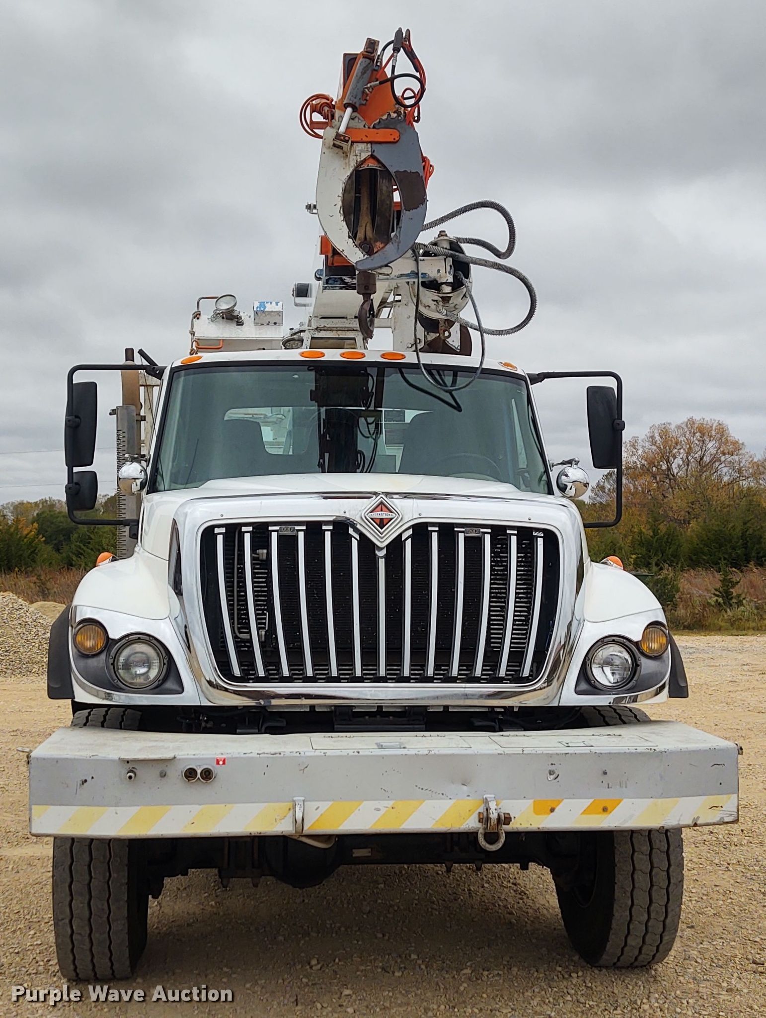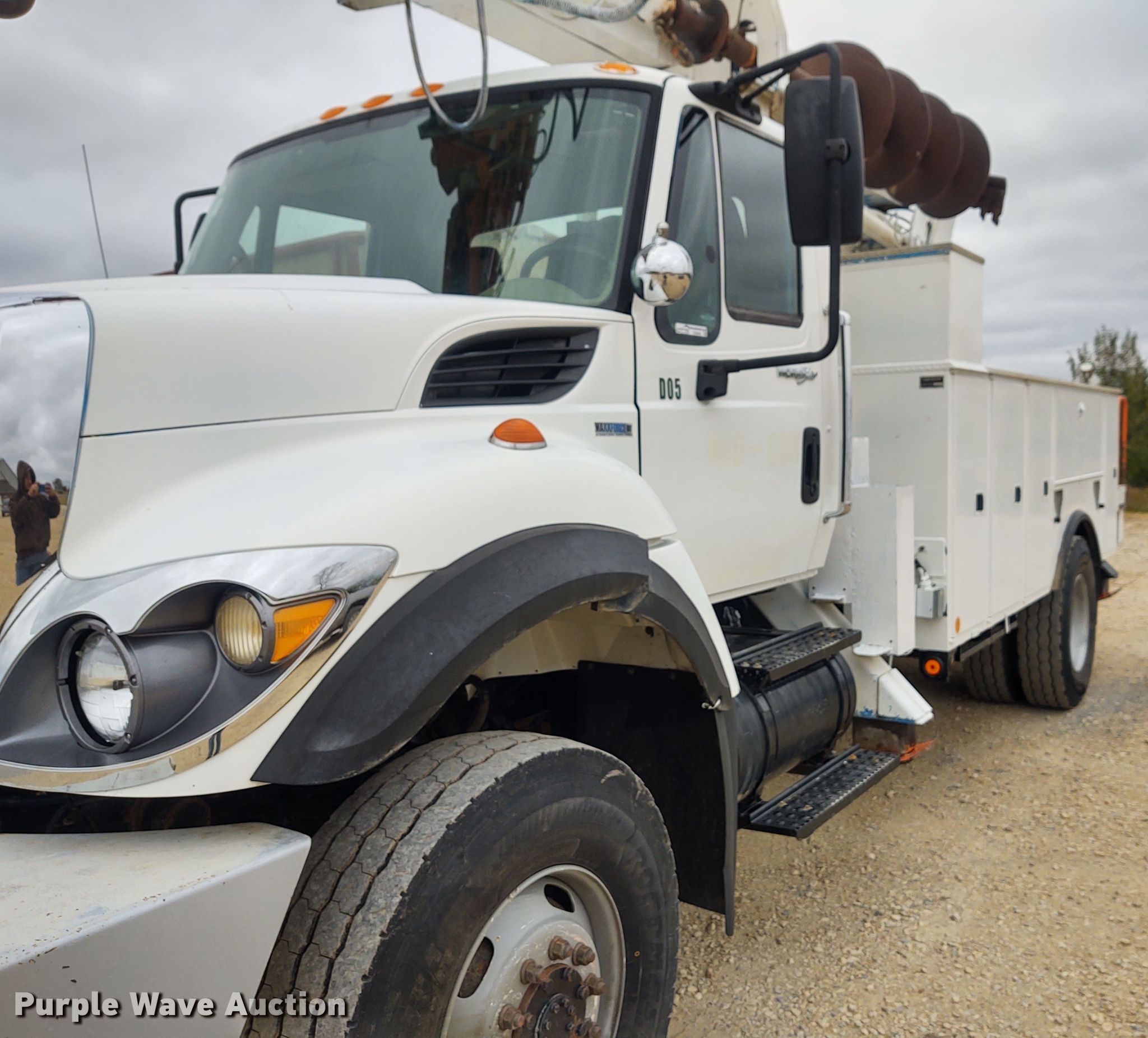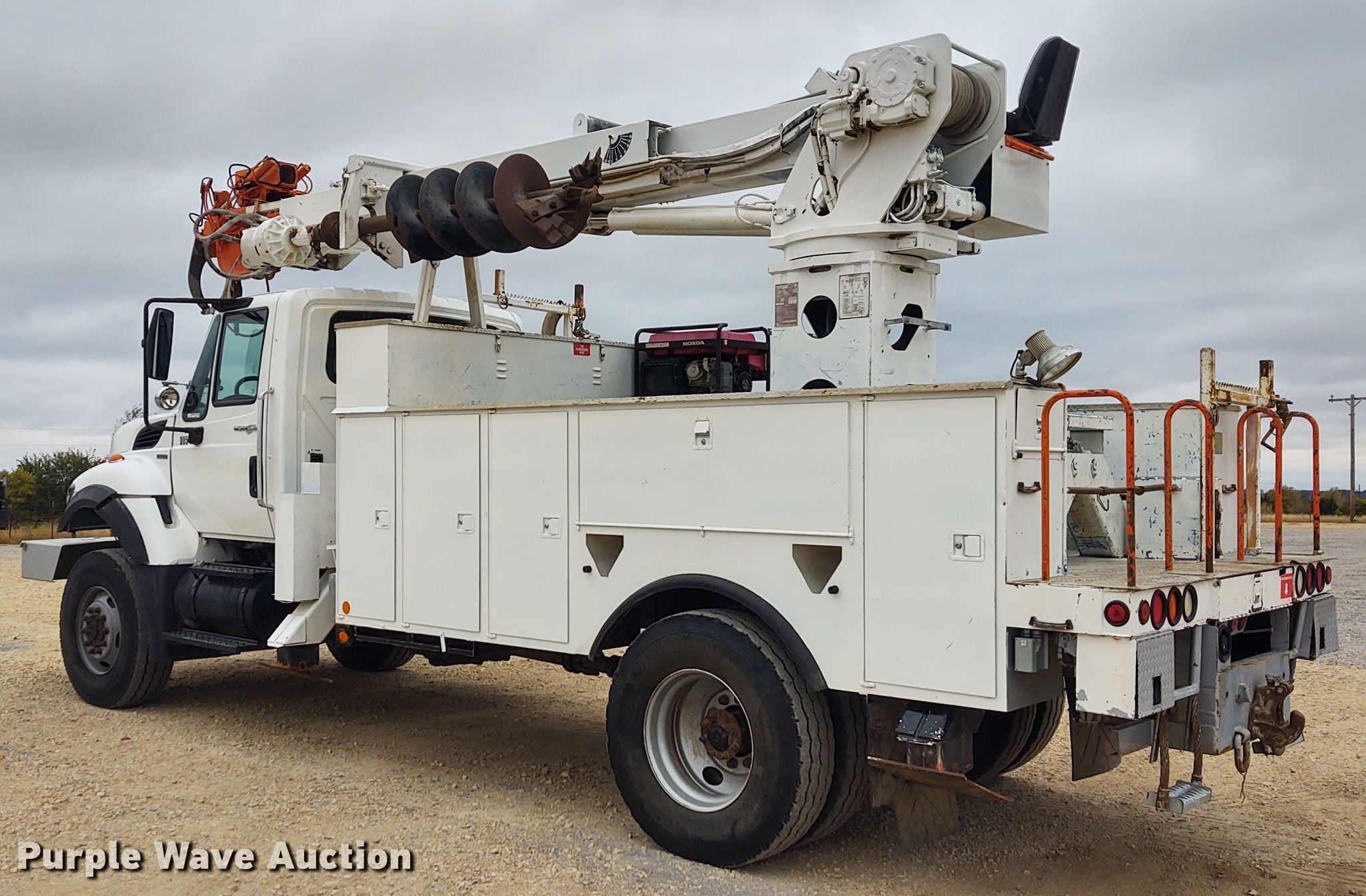 2010 International WorkStar 7400 digger derrick truck. 83,125 miles on odometer. Engine International DT466, Displacement: 7.6L, Cylinders: 6, Fuel type: Diesel. Transmission Automatic. Chassis Four wheel drive, Axles: Single, Suspension: Spring, Brakes: Air, PTO. Interior AC, Heat, Power locks, Cruise control. Operational Utility bed Terex, Boom Auger Diameter: 24".. Tires Front: 12R22.5, Rear: 11R22.5. Oklahoma title. 1HTWEAARXAJ249466. Mid-Con. Ponca City, OK 74601