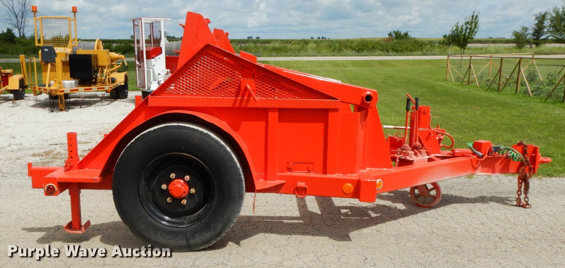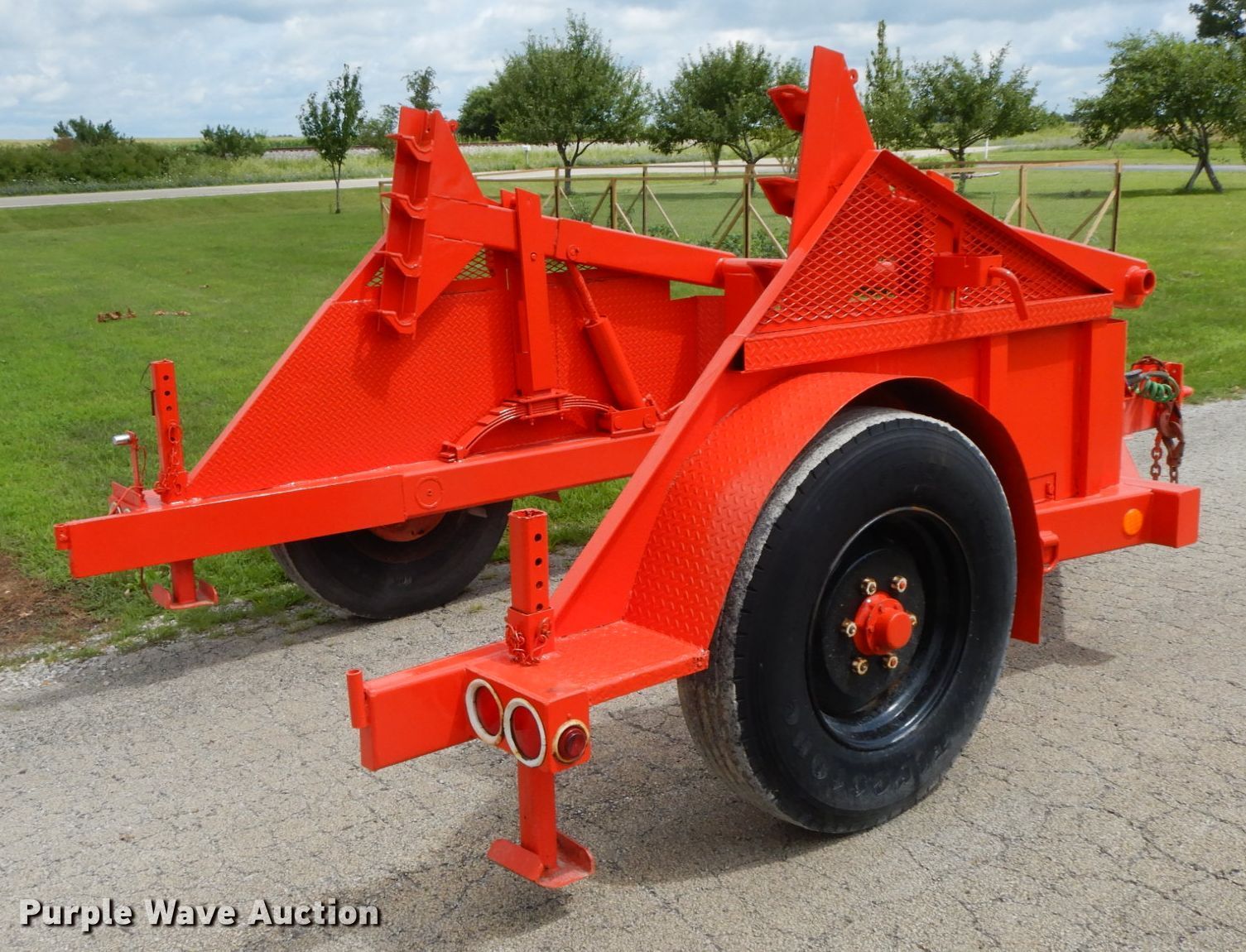 Purple Wave is selling a used Reel Trailer in Illinois. This item is a 2000 Butler HCT100L reel trailer with the following: 16'L x 102"W, Single reel capacity, 70" maximum reel width, Hydraulic height adjustment, Single leg landing gear, Spring suspension, Electric brakes, Single axle, 11R22.5 tires, GVWR 10,000 lbs