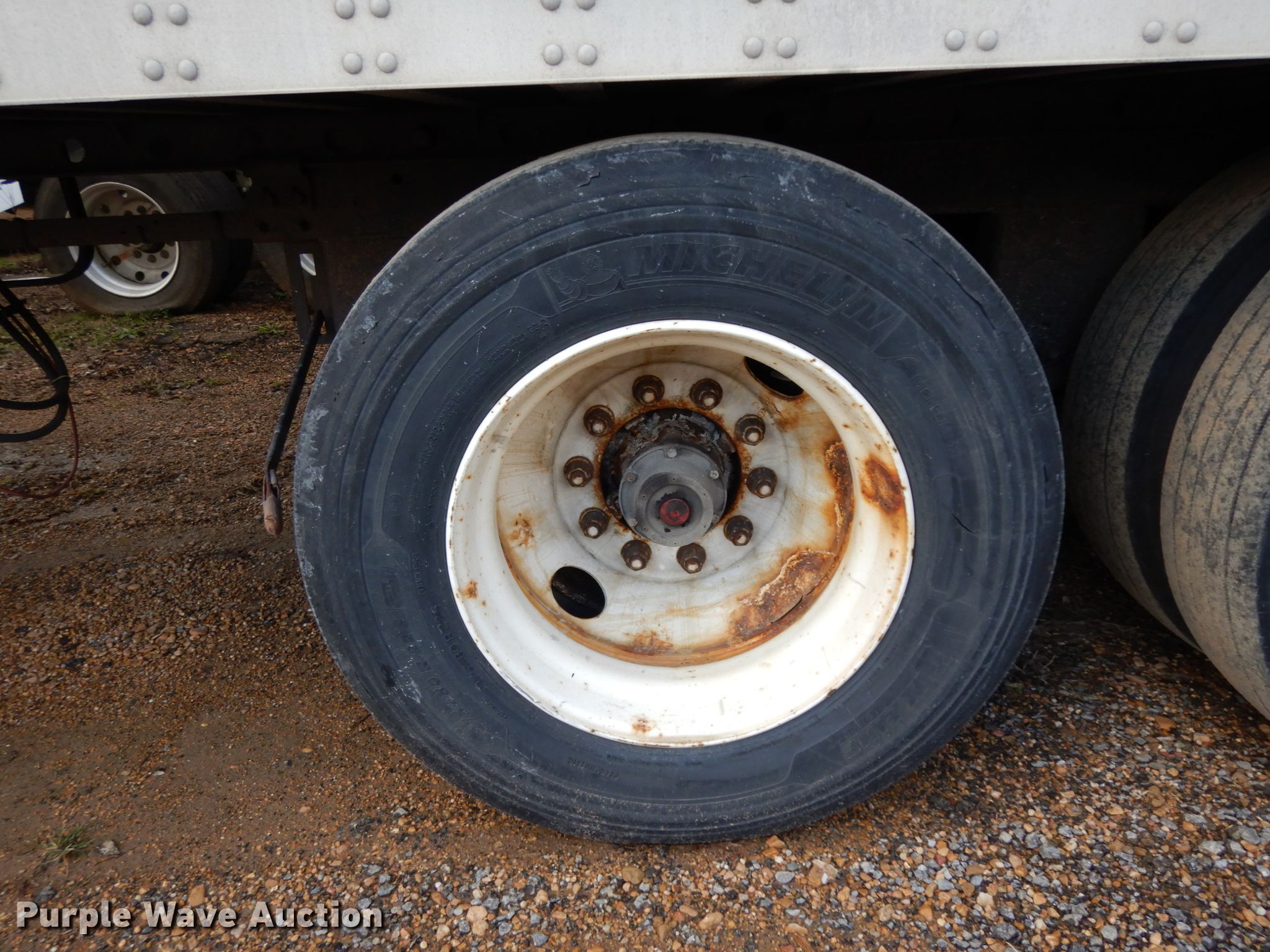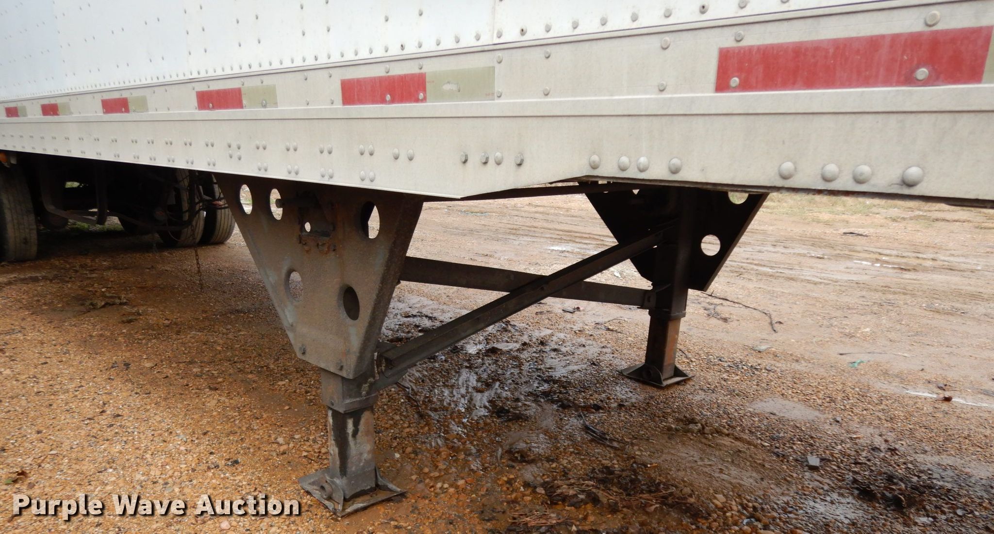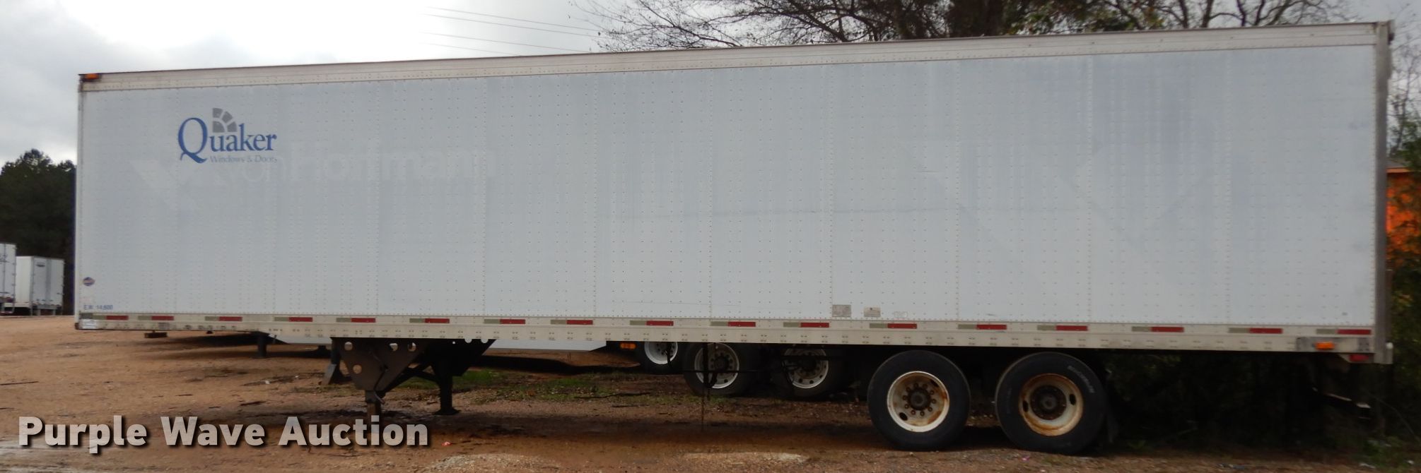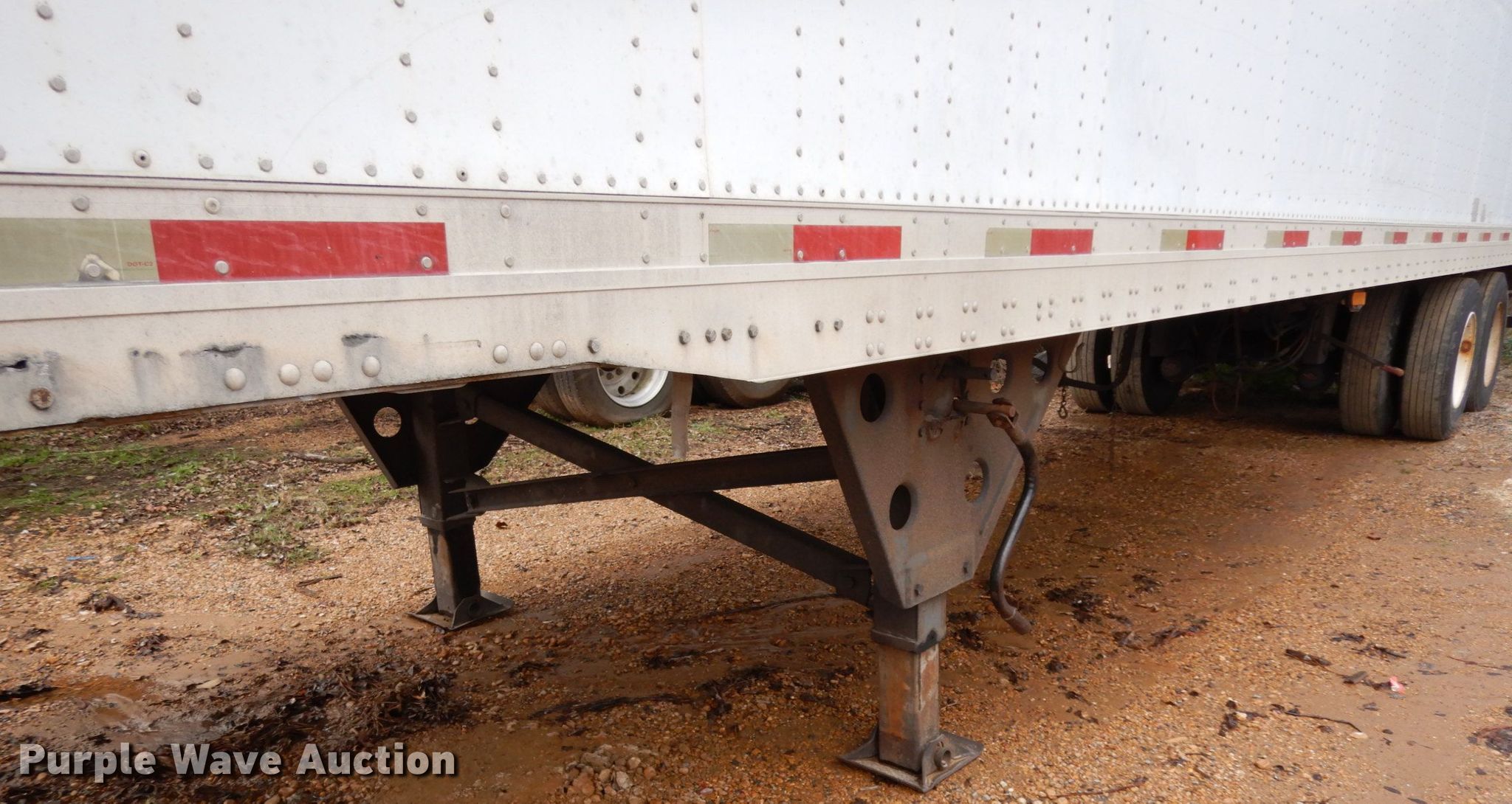 Purple Wave is selling a used Dry Van Trailer in Mississippi. This item is a 2000 Utility dry van trailer with the following: 45'L x 8'W overall, Wood deck, E-track rail system, Dual leg landing gear, Air suspension, Air brakes, Tandem axle, Steel wheels, 11R22.5 tires, GVWR 65,000 lbs, GAWR 20,000 lbs, Possible rear axle damage, Tires and wheels missing