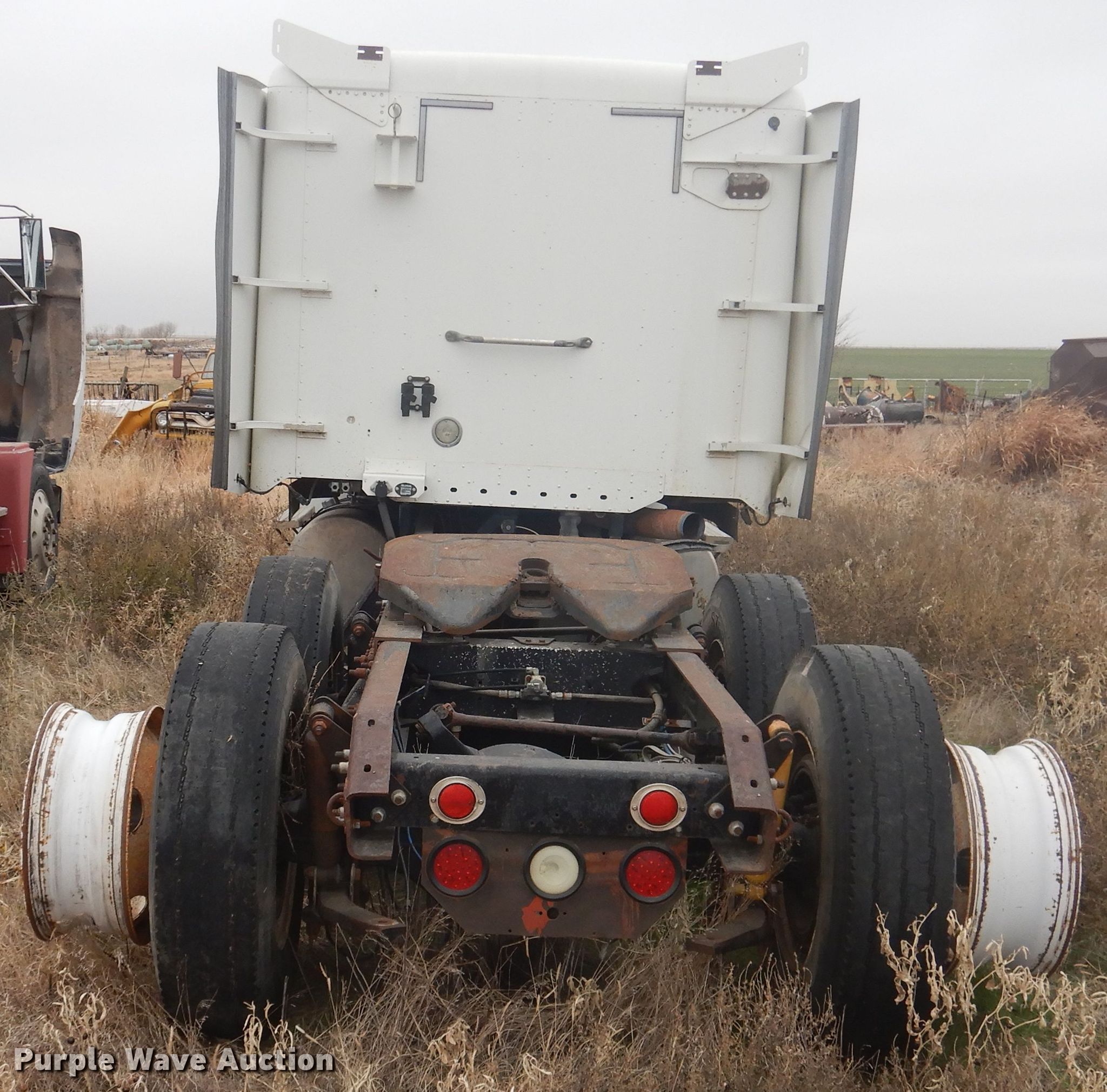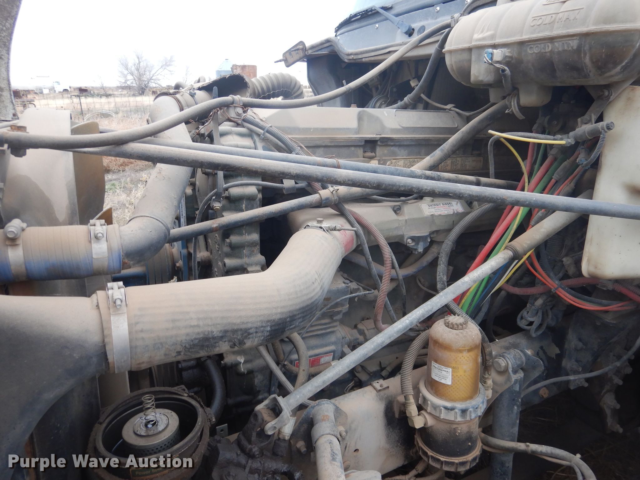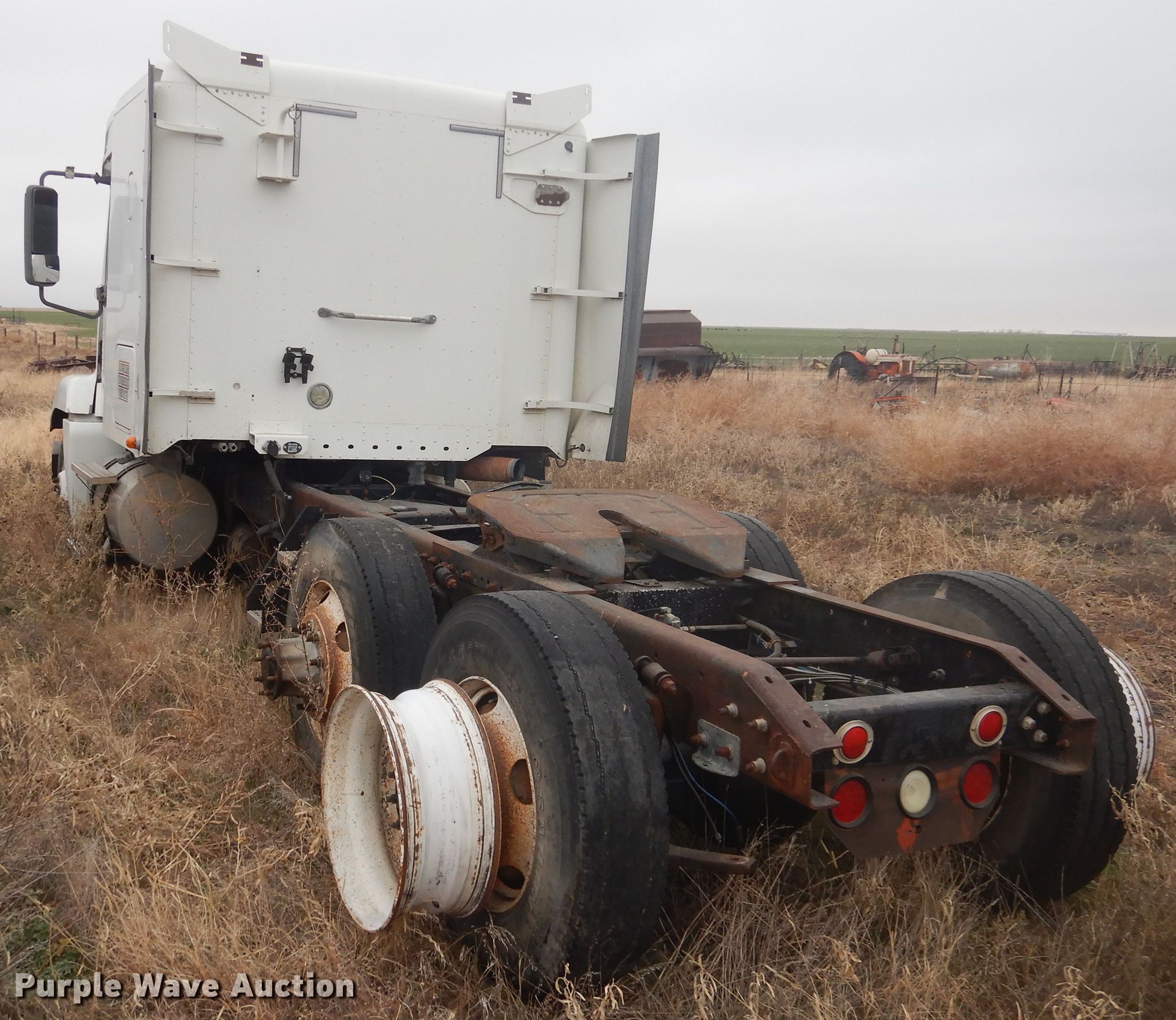 2003 Freightliner Century Class semi truck. 842,944 miles on odometer. Engine Detroit Diesel Series 60, Displacement: 12.7L, Cylinders: 6, Fuel type: Diesel, Engine brake. Transmission No transmission. Chassis Axles: Tandem, Differential lock: Inter-axle, Suspension: Air, Brakes: Air. Interior AC, Heat, Heated mirrors, Power windows, Cruise control, Dump valves, Sleeper Sleeper length: 4', Beds: Single, Rear climate control. Operational Fifth wheel type: Fixed, Fuel tank: Dual. Tires Size: 11R22.5. Notes Windshield chipped or cracked, Non-operational unit. Texas title. Title distribution may be delayed up to 30 days from verification of funds. 1FUJBBCG13LK45713. 800 Main Ave. Gruver, TX 79040