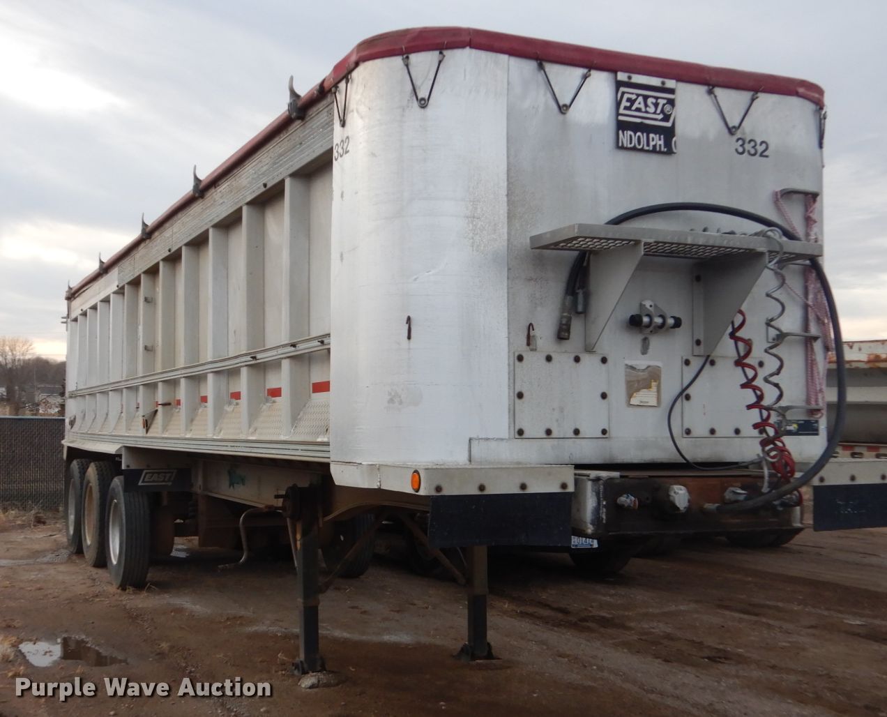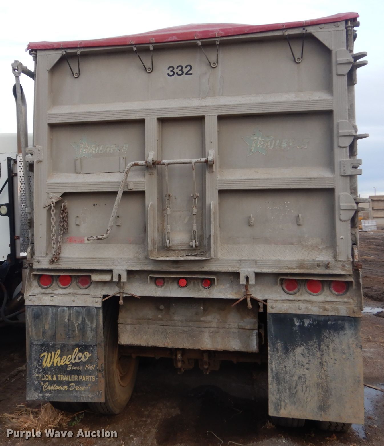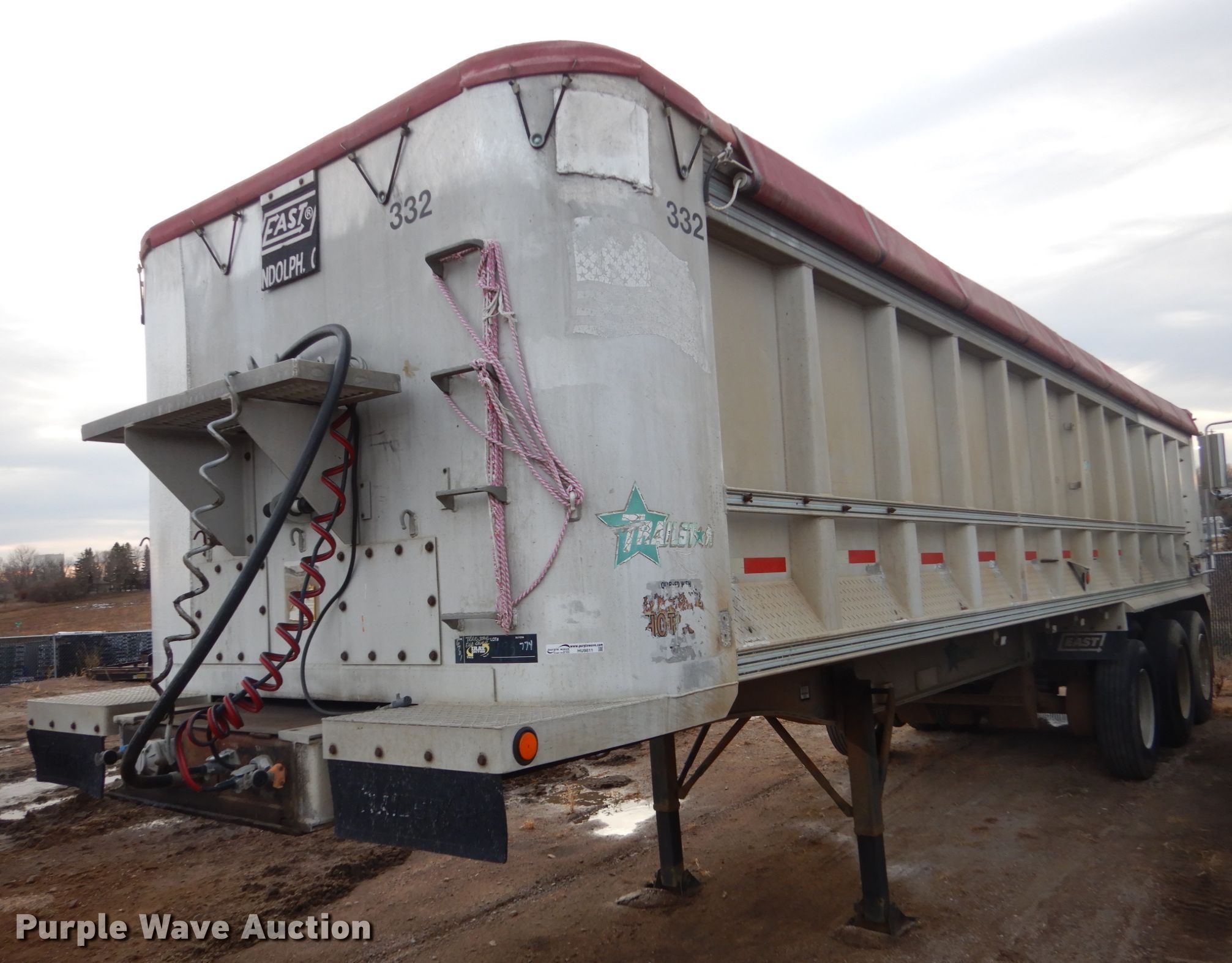 Purple Wave is selling a used End Dump Rock Trailer in South Dakota. This item is a 1988 Trailstar end dump trailer with the following: 34'3"L x 96"W overall, Single cylinder hoist, Air operated end gate, Grain door, Roll tarp, Aluminum construction, Dual leg landing gear, Air suspension, Air brakes, Triple axle, Aluminum wheels, 11R24.5 tires, 11R22.5 tires
