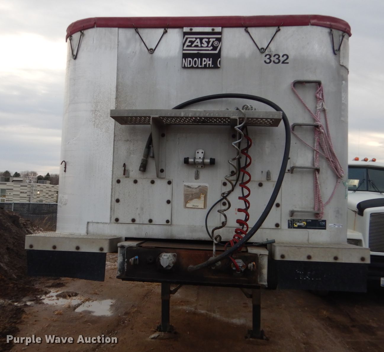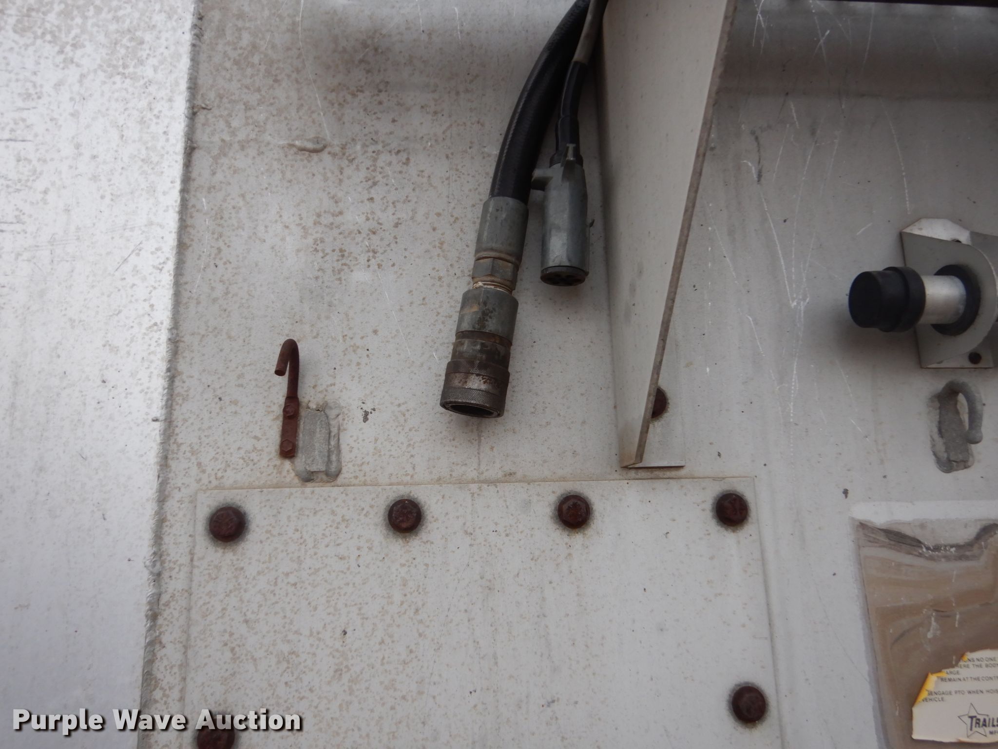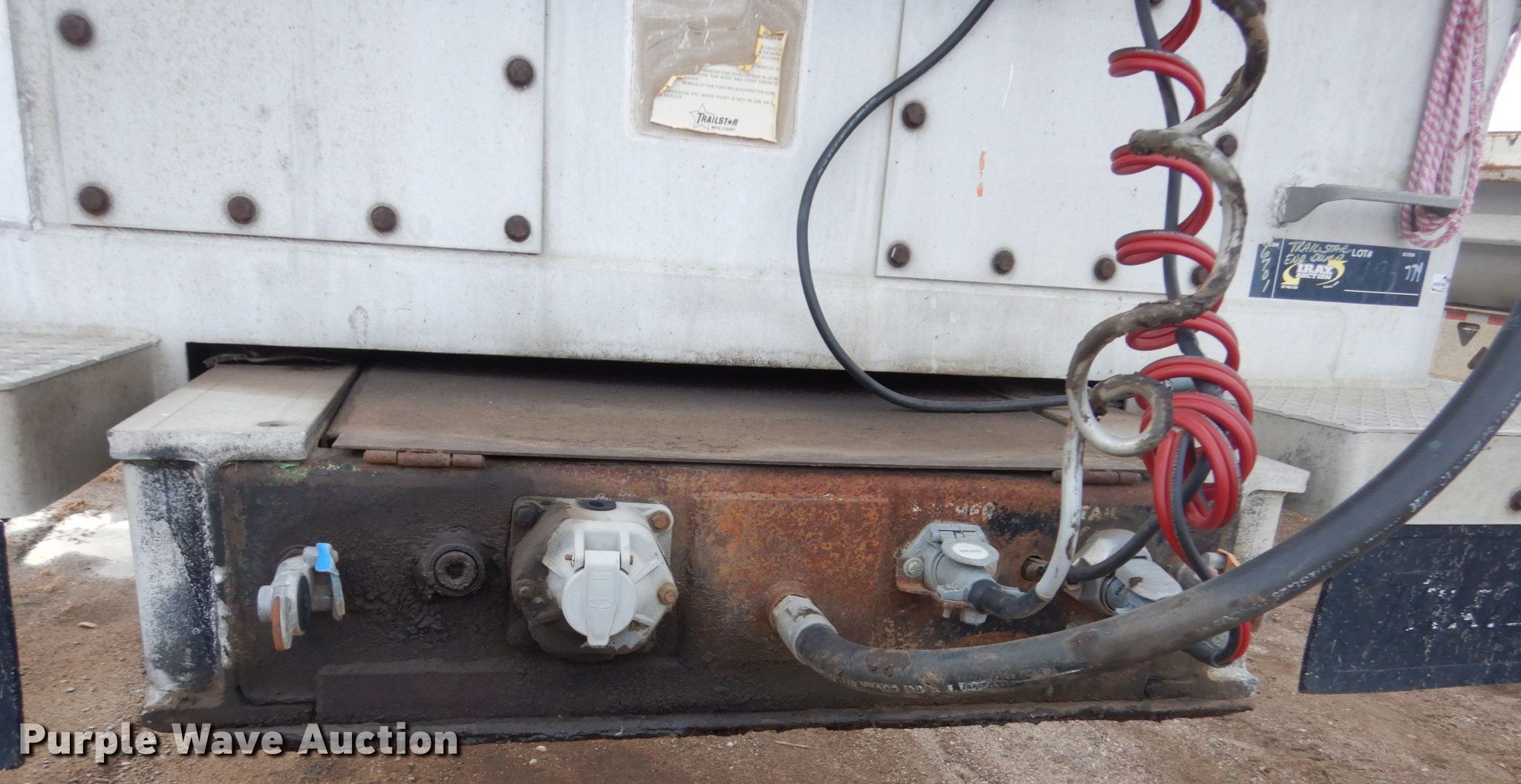 Purple Wave is selling a used End Dump Rock Trailer in South Dakota. This item is a 1988 Trailstar end dump trailer with the following: 34'3"L x 96"W overall, Single cylinder hoist, Air operated end gate, Grain door, Roll tarp, Aluminum construction, Dual leg landing gear, Air suspension, Air brakes, Triple axle, Aluminum wheels, 11R24.5 tires, 11R22.5 tires