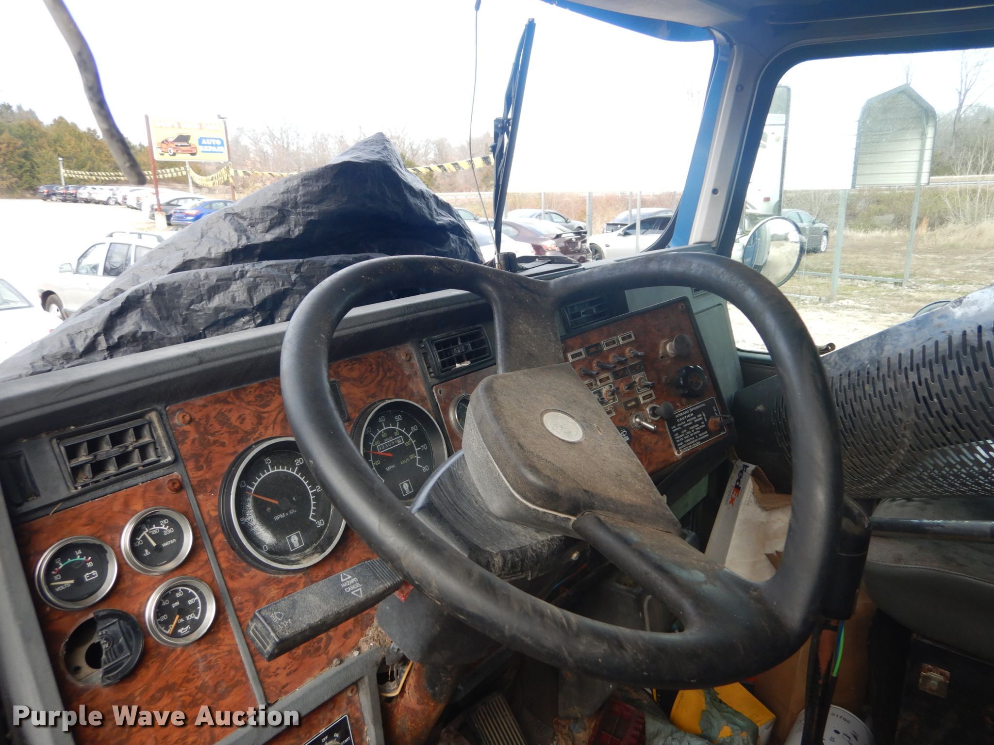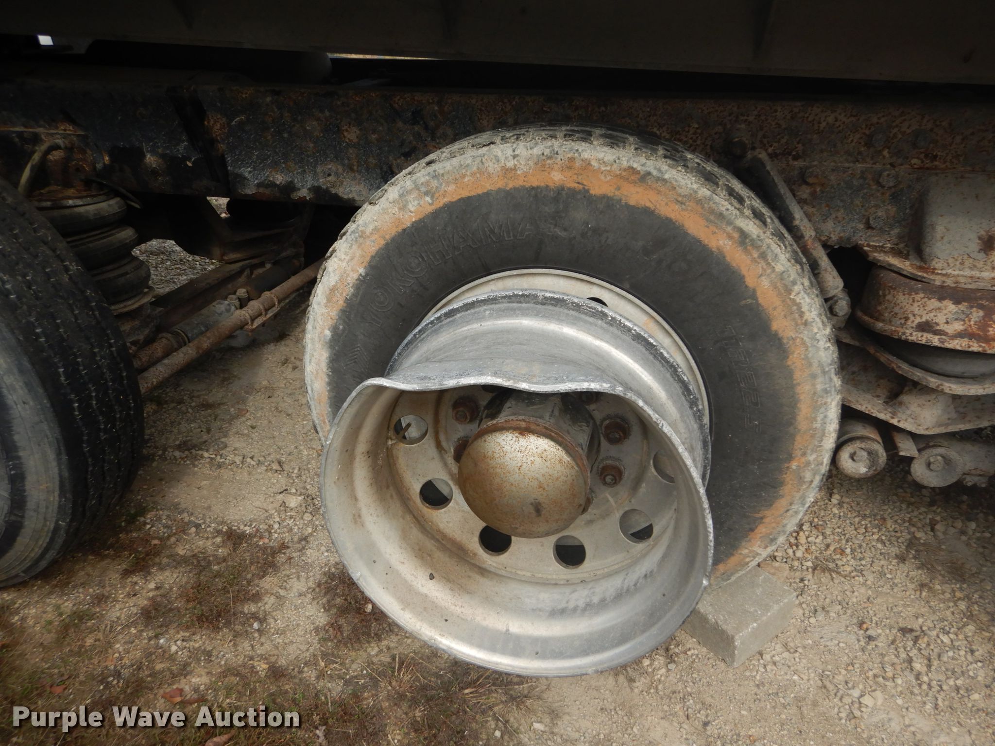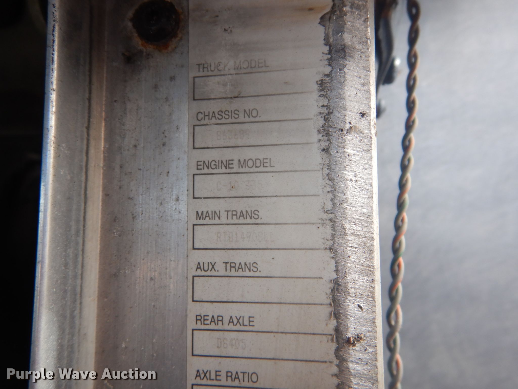 2000 Kenworth T800 dump truck. 323,084 miles on odometer. Engine Caterpillar C10, Displacement: 10.3L, Cylinders: 6, Fuel type: Diesel, HP: 335. Transmission Eaton Fuller RT1014908LL, Manual. Chassis Axles: Triple, Tag axle, Differential lock: Inter-axle, Suspension: Walking beam, Brakes: Air, PTO, GVWR: 54,600 lbs FAWR: 14,600 lbs, IAWR: 20,000 lbs, RAWR: 20,000 lbs, Lift axle GAWR: 13,000 lbs, Wheelbase: 210". Interior AC, Heat, Heated mirrors, Cruise control. Operational Dump bed Ravens 116A6066, 15' L x 96" W, Side height: 60", Bed type: Aluminum, Ram: Single , End gate: Air operated. Tires Front: 315/80R22.5, Rear: 11R22.5. Notes Windshield chipped or cracked, Non-operational unit. Missouri title. 1NKDLT9X8YJ863689. Beaufort, MO 63013
