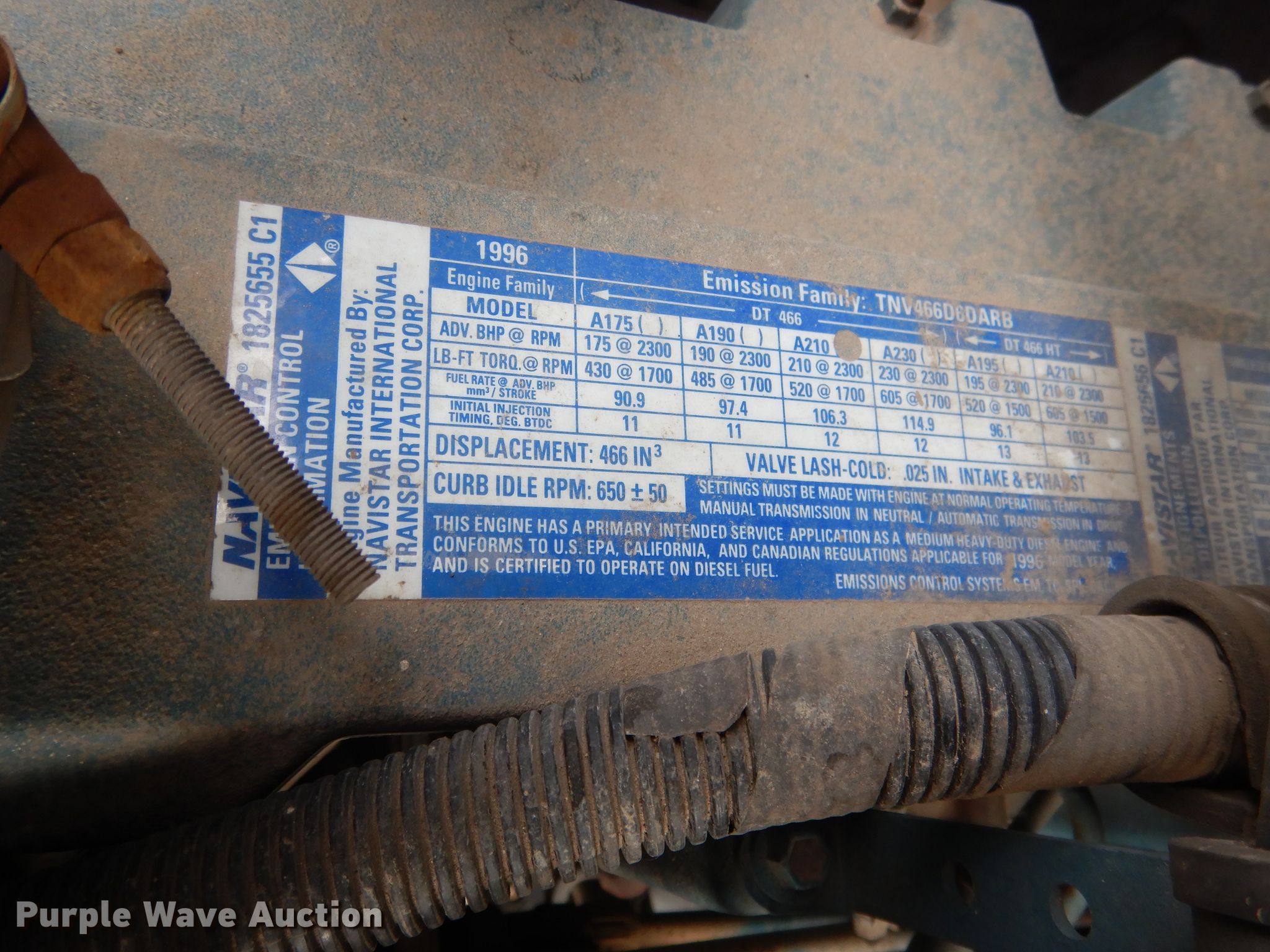 1997 International 4700 box truck. 270,850 miles on odometer. Engine International DT466, Displacement: 7.6L, Cylinders: 6, Fuel type: Diesel. Transmission Eaton Fuller Roadranger, Manual, Speed: 6. Chassis Axles: Single, Suspension: Spring, Brakes: Air, Wheelbase: 254". Interior AC, Heat. Operational Box bed Timpte, Length: 24', Width: 96", Height: 100", Floor: Wood, End gate lift. Tires Size: 11R22.5, Brand: Firestone. Notes Non-operational end gate lift. Nebraska title. Title distribution may be delayed up to 14 days from verification of funds. 1HTSCAAL5VH451757. Chipperfield Ag Erectors. 71264 US-83. McCook, NE 69001