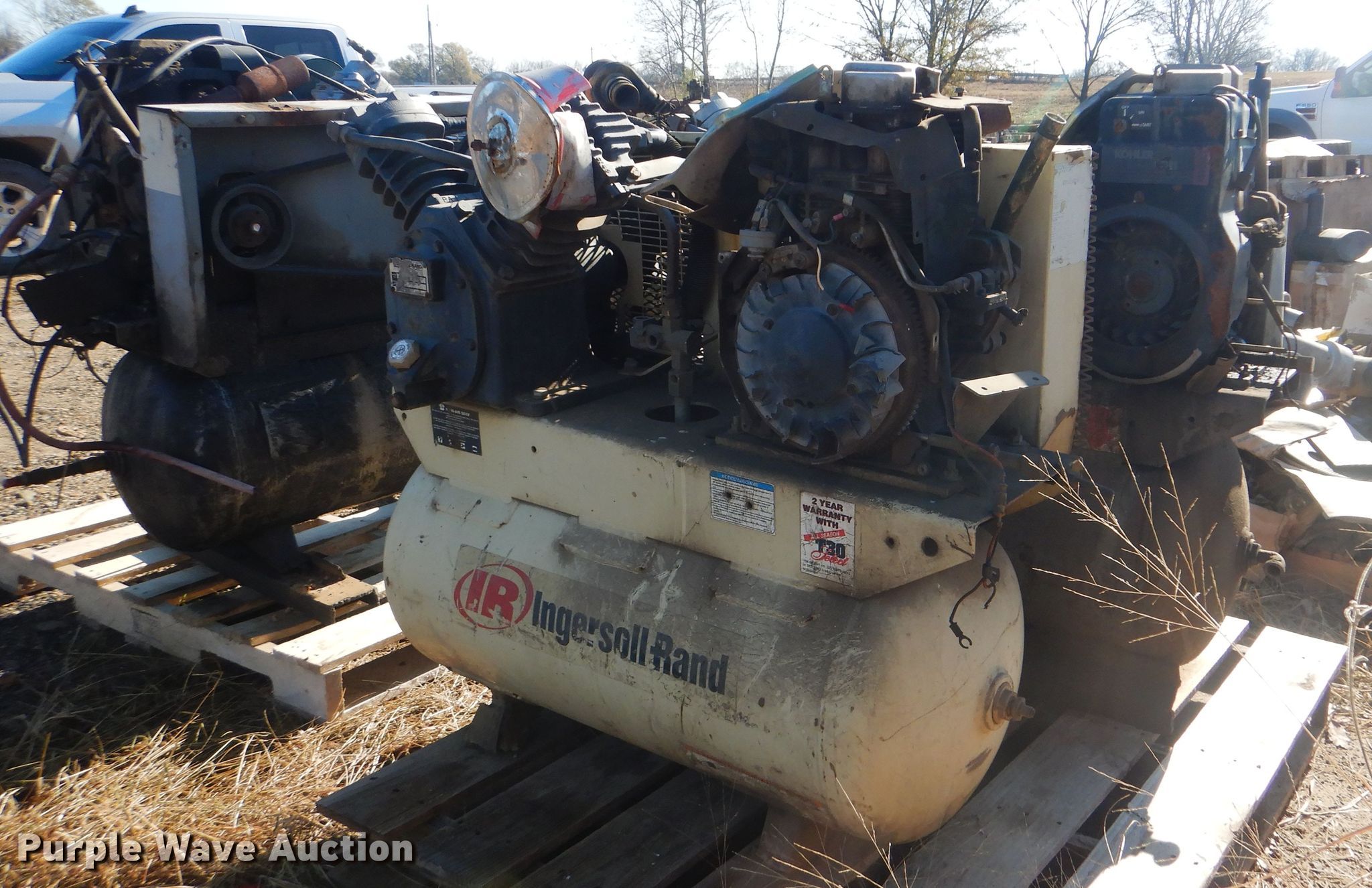 Purple Wave is selling a used Air Compressor in Oklahoma. This item is a (3) Ingersoll Rand air compressors with the following: Kohler Command 11 398cc gas engine, Electric start, 30 gallon tank, Non-operational units