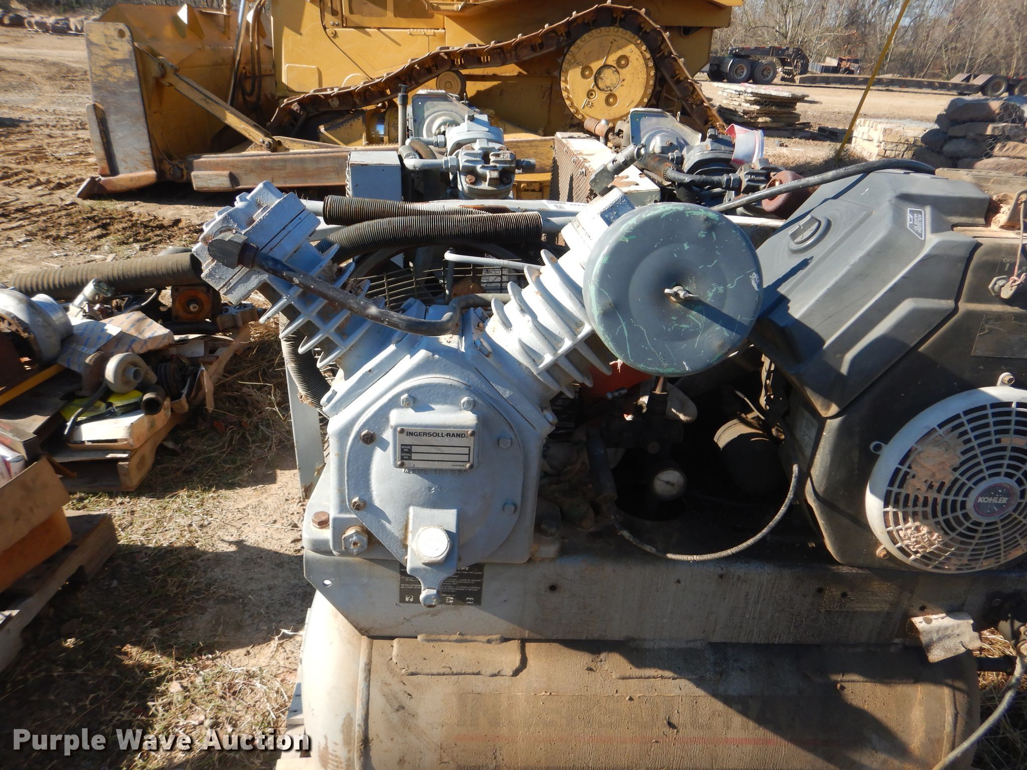 (3) Ingersoll Rand air compressors. Kohler Command 11 398cc gas engine, Electric start, 30 gallon tank, Non-operational units. Donaho Stone. 27054 US-270. Wister, OK 74966