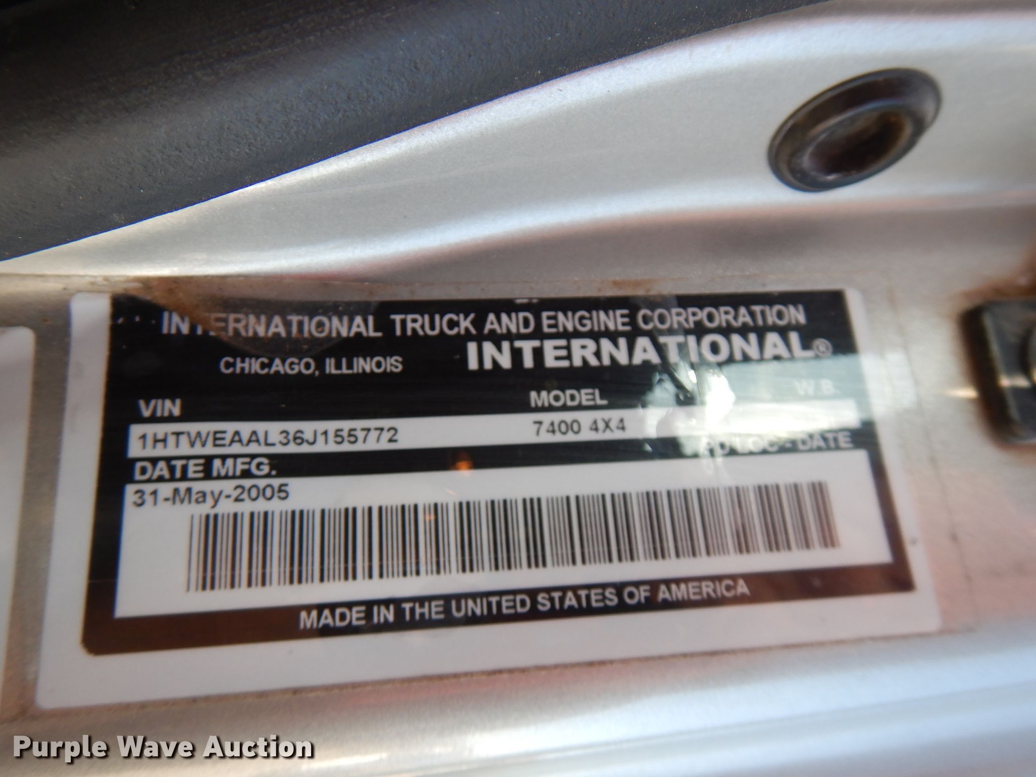 Purple Wave is selling a used Truck Chassis in Kansas. This item is a 2006 International 7400 CXT Crew Cab dump bed truck with the following: 129,113 miles on odometer, Engine hours: 3,674