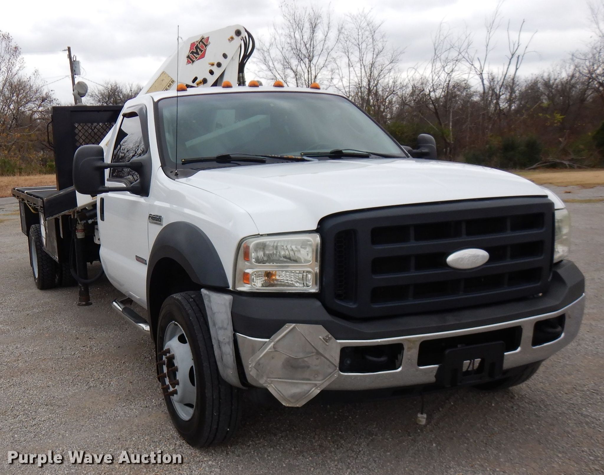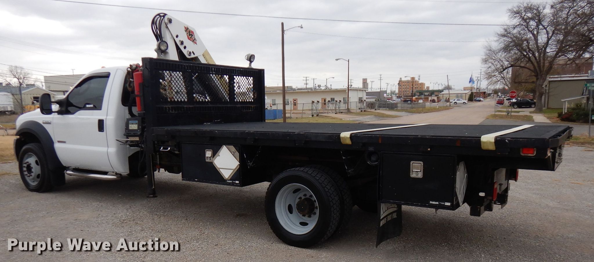 Purple Wave is selling a used Flat Bed Truck in Oklahoma. This item is a 2007 Ford F550 Super Duty flatbed truck with crane with the following: 136,885 miles on odometer