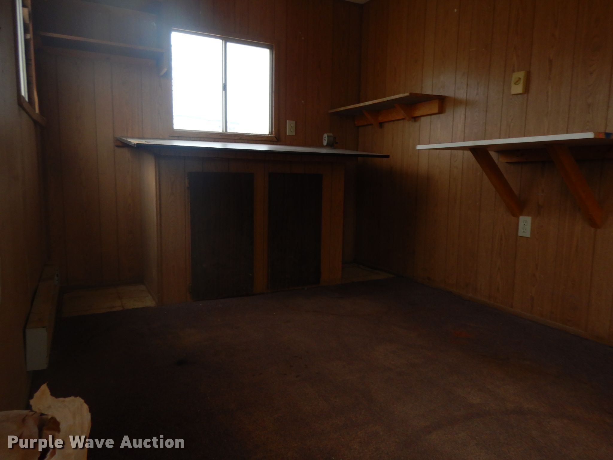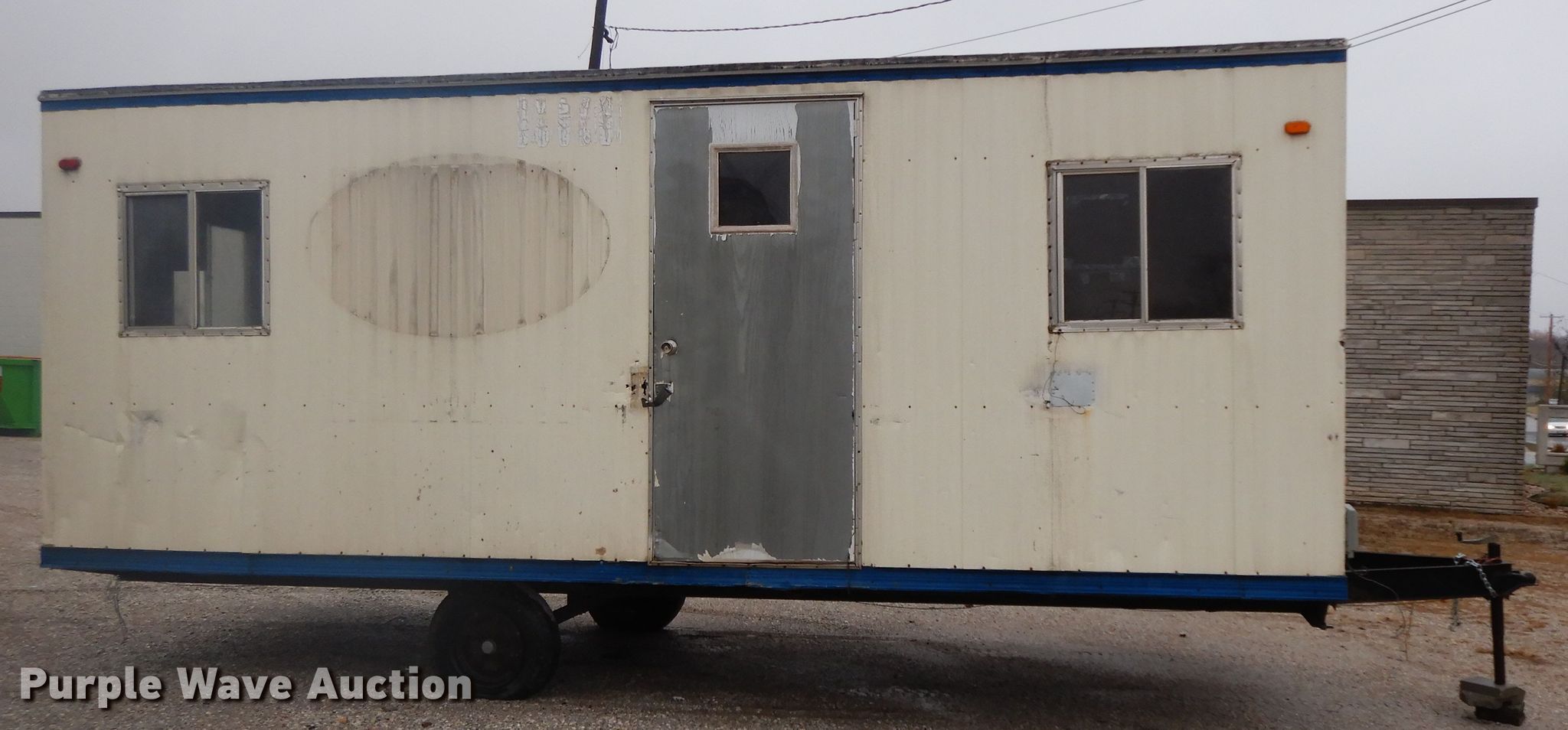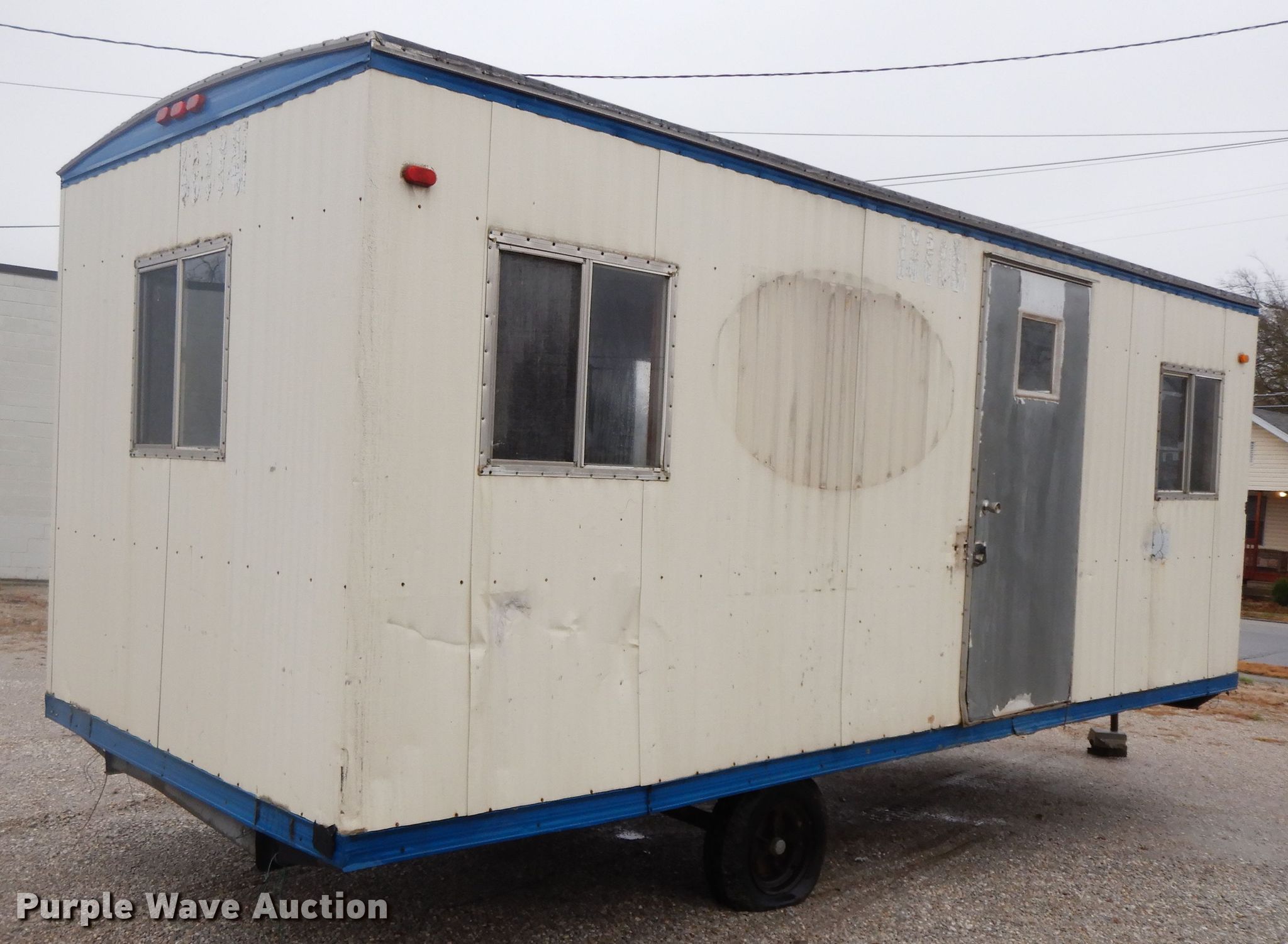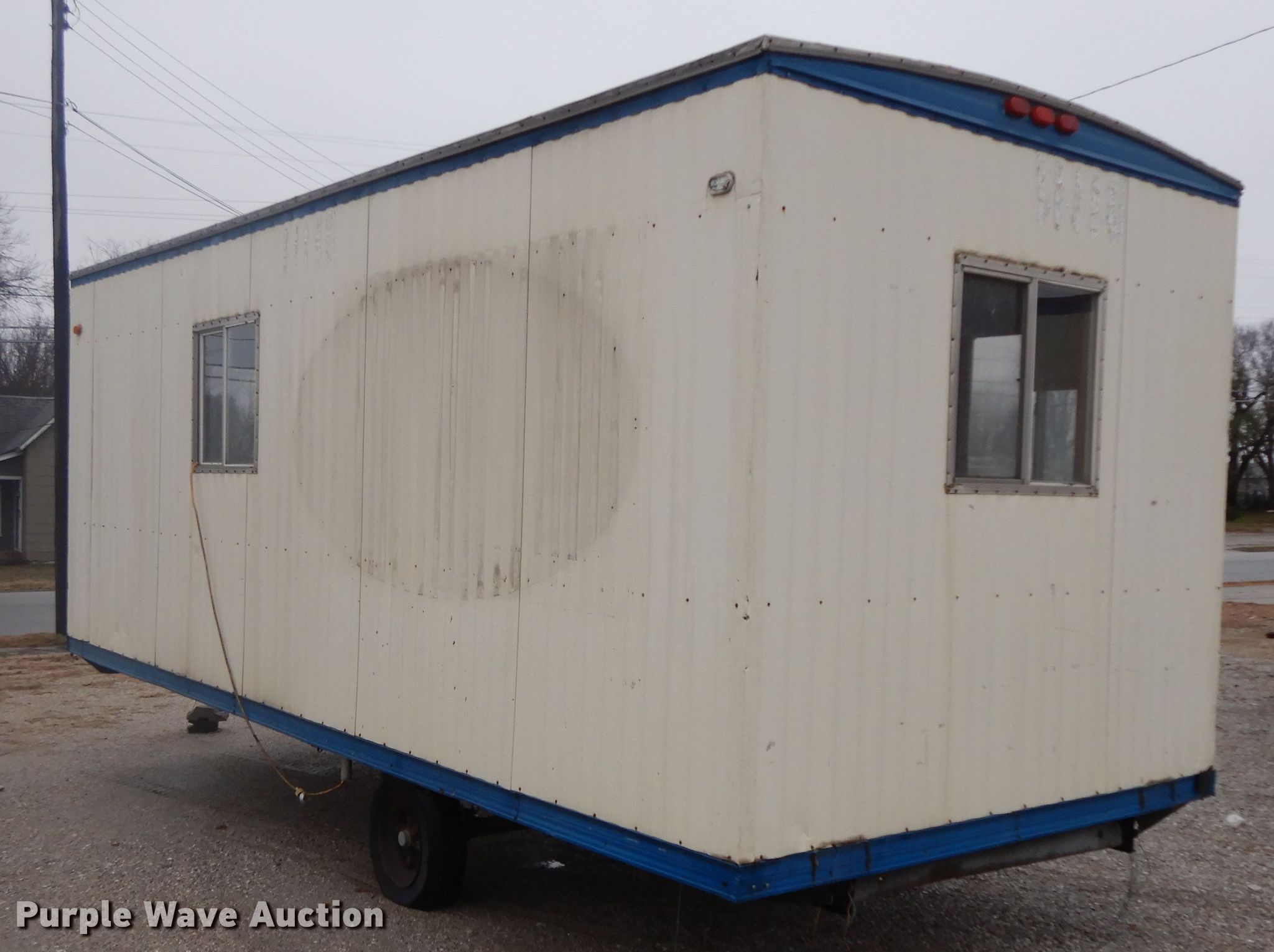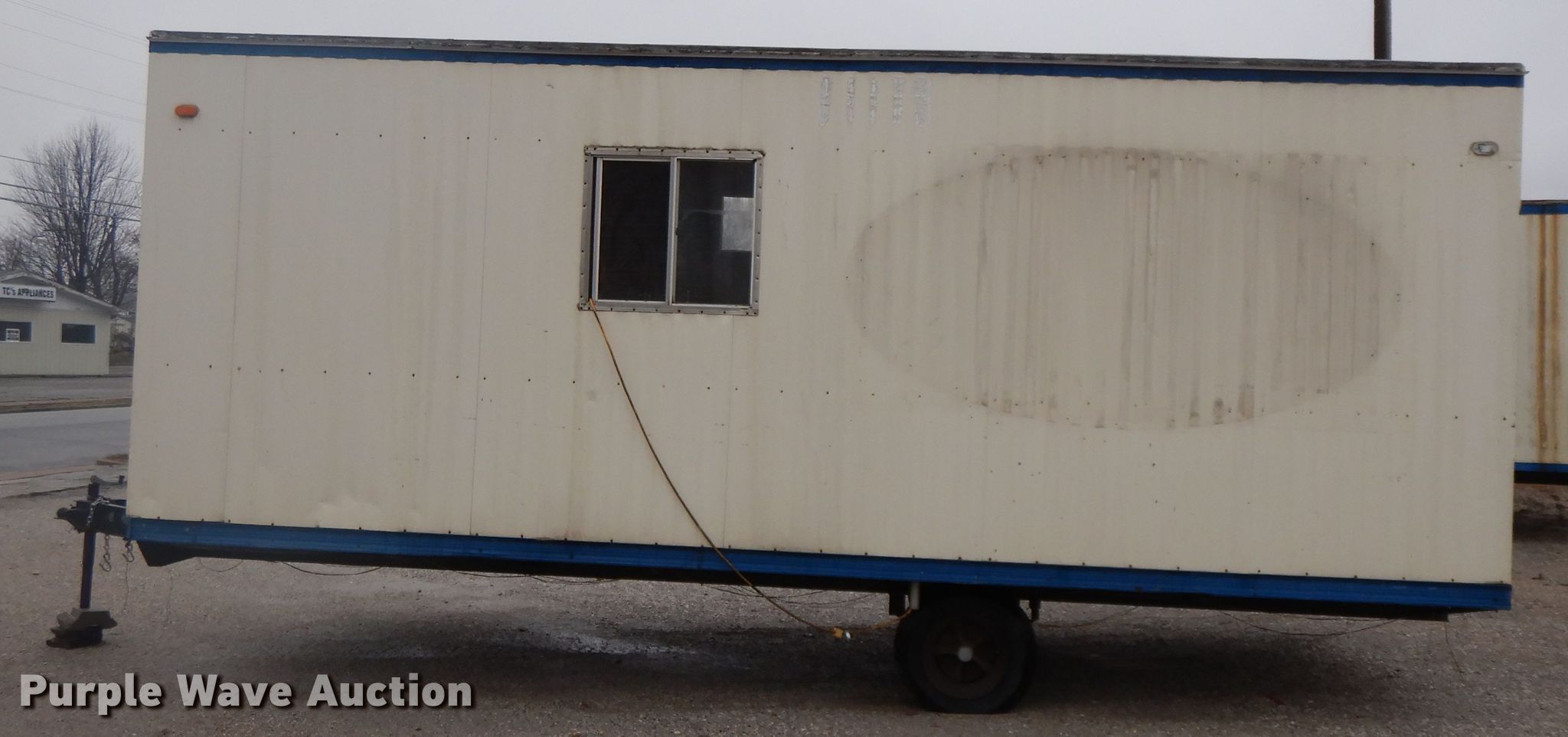 Purple Wave is selling a used Manufactured Home or Office in Missouri. This item is a 1997 Office trailer with the following: 24'L x 8'W overall, 20'L office space, Base board heaters, Window AC unit, 2" ball hitch, Single leg landing gear, Spring suspension, Electric brakes, 7-14.5 tires, Unit# J