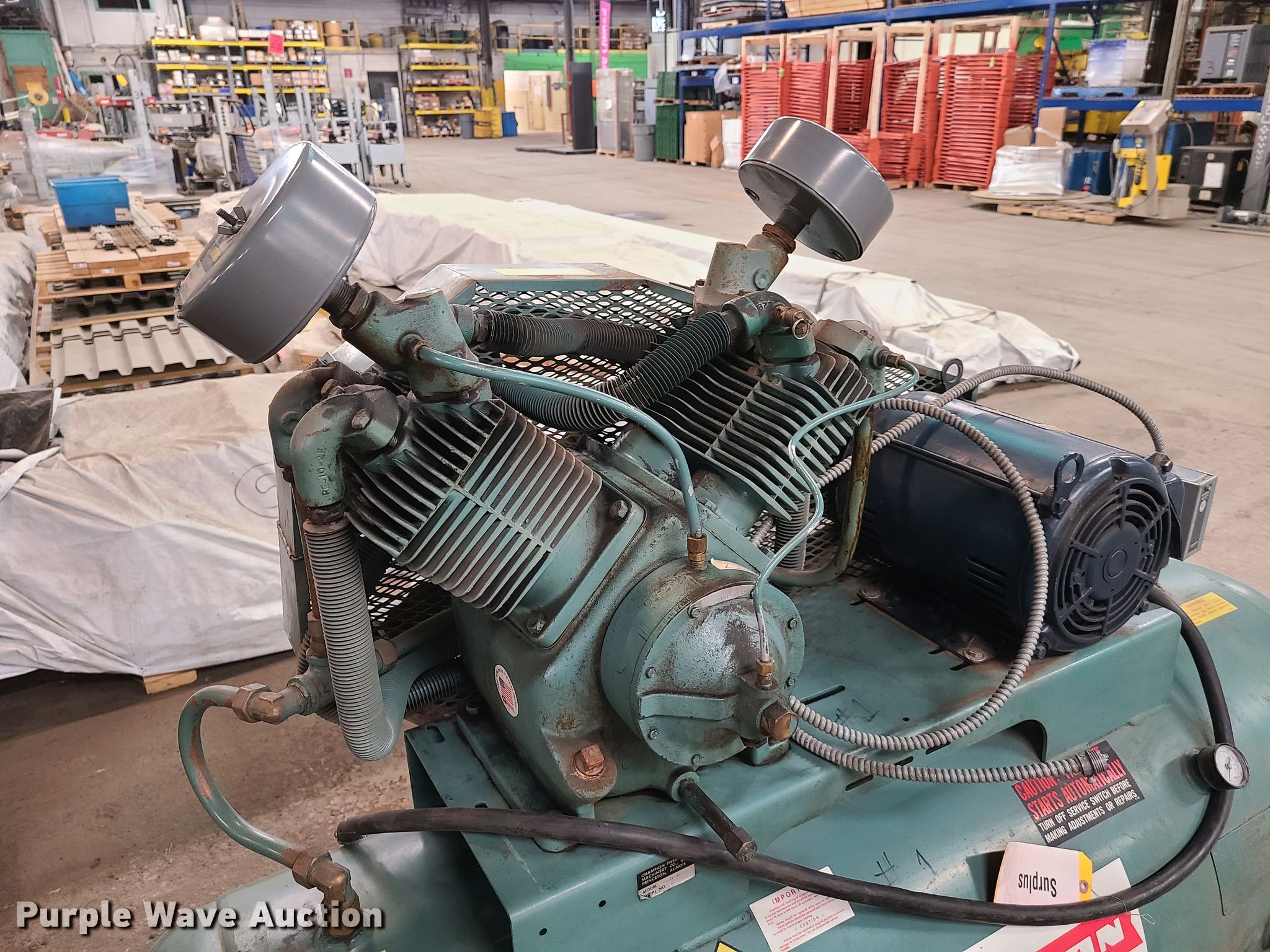 Purple Wave is selling a used Air Compressor in Missouri. This item is a Champion HR10-12 air compressor with the following: Three phase