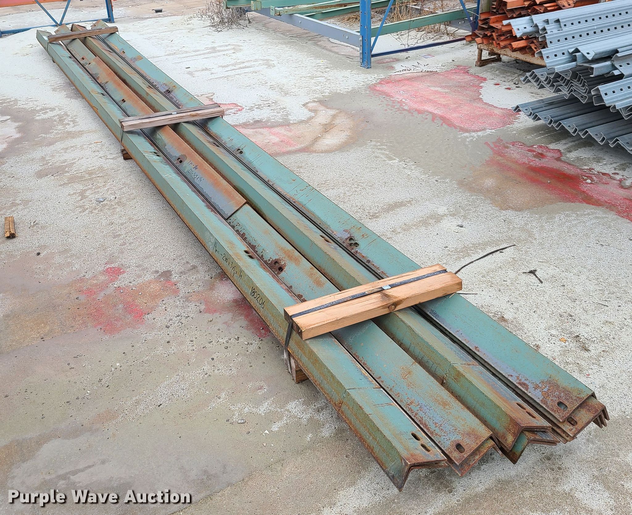 Purple Wave is selling a used Building Materials in Missouri. This item is a (15) pieces of angle iron with the following: (14) 20'L x 5" x 3" x 1/4" thick, (10'L x 5" x 3" x 1/4" thick