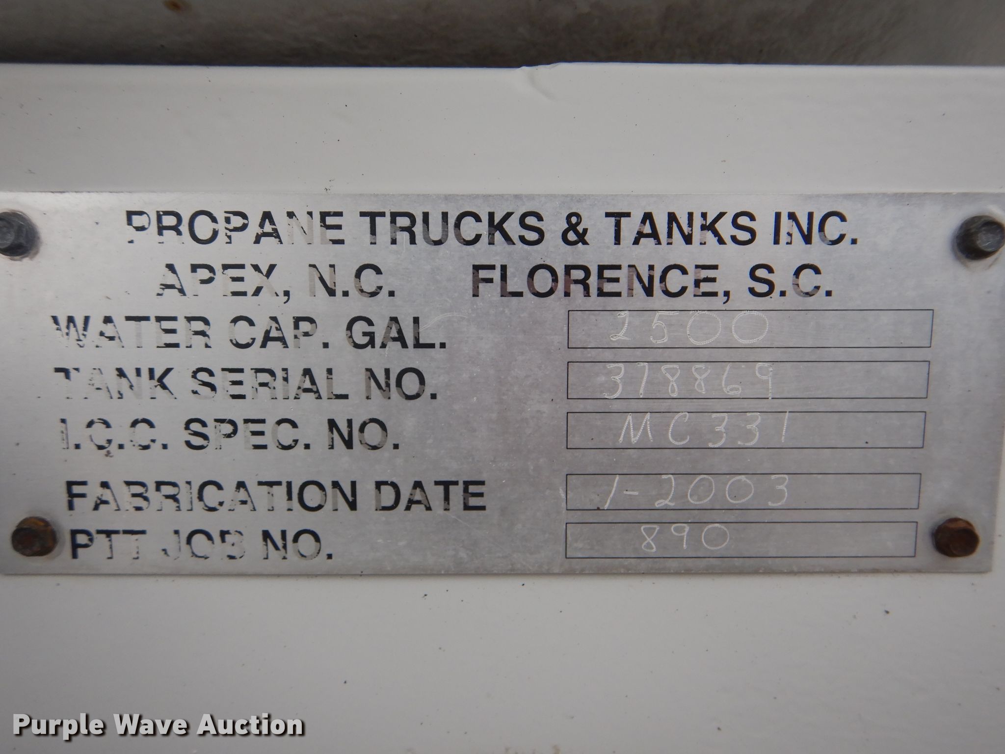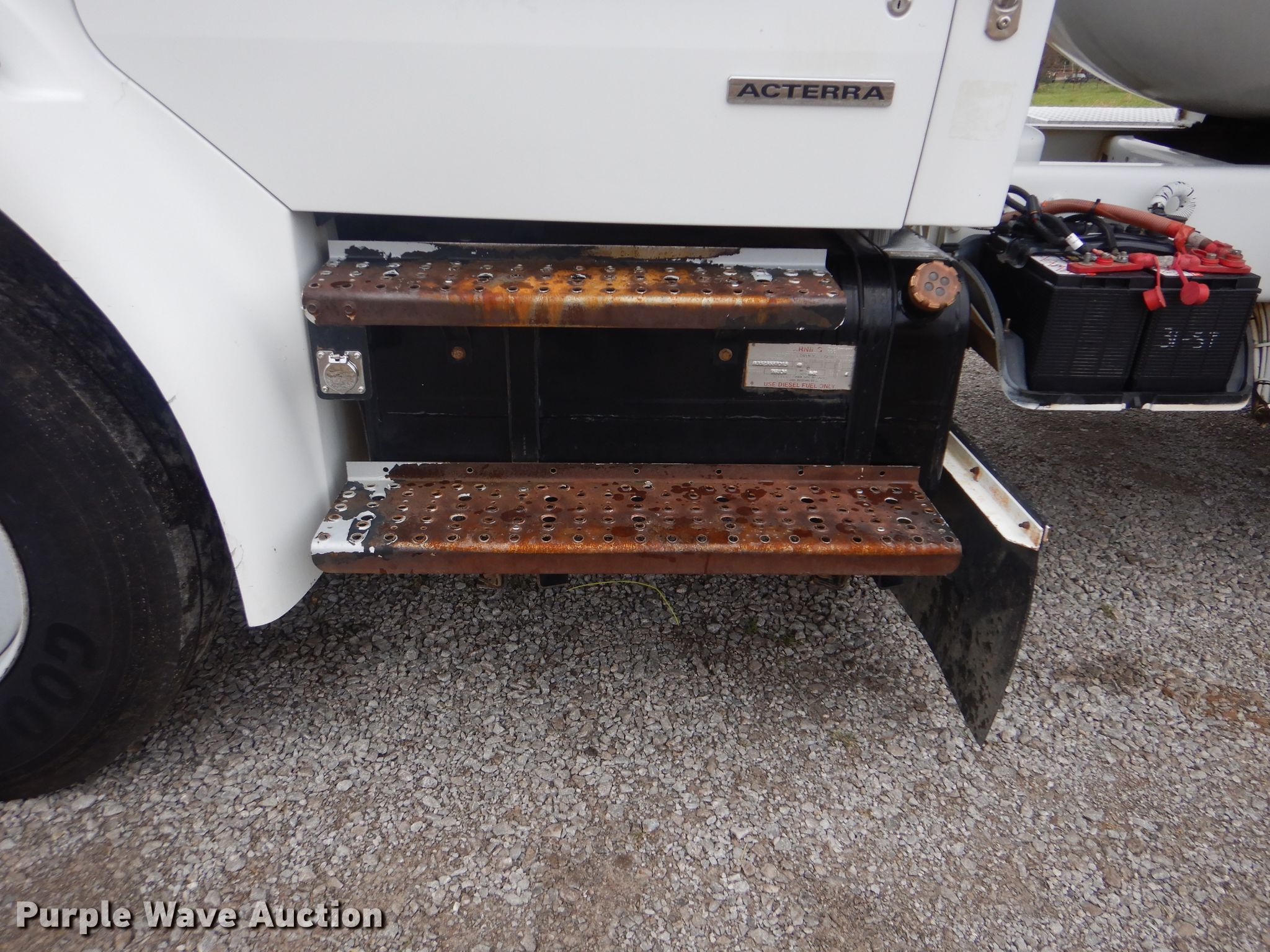 2003 Sterling Acterra fuel truck. 229,978 miles on odometer, Engine hours: 1,243. Engine Caterpillar 3126, Displacement: 7.2L, Cylinders: 6, Fuel type: Diesel, HP: 330. Transmission Automatic. Chassis Axles: Single, Suspension: Spring, Brakes: Air, GVWR: 33,000 lbs. Interior AC, Heat, Heated mirrors, Cruise control. Operational Bed / tank Propane Trucks & Tanks, Serial: 378869, Capacity: 2,500 gallons, Length: 14', Compartments: 1, Hose reels: 1. Tires Size: 11R22.5. Notes Propane tank certification info plate has been ground off. Oklahoma title. 2FZAAKAK63AL05768. Collinsville, OK 74021