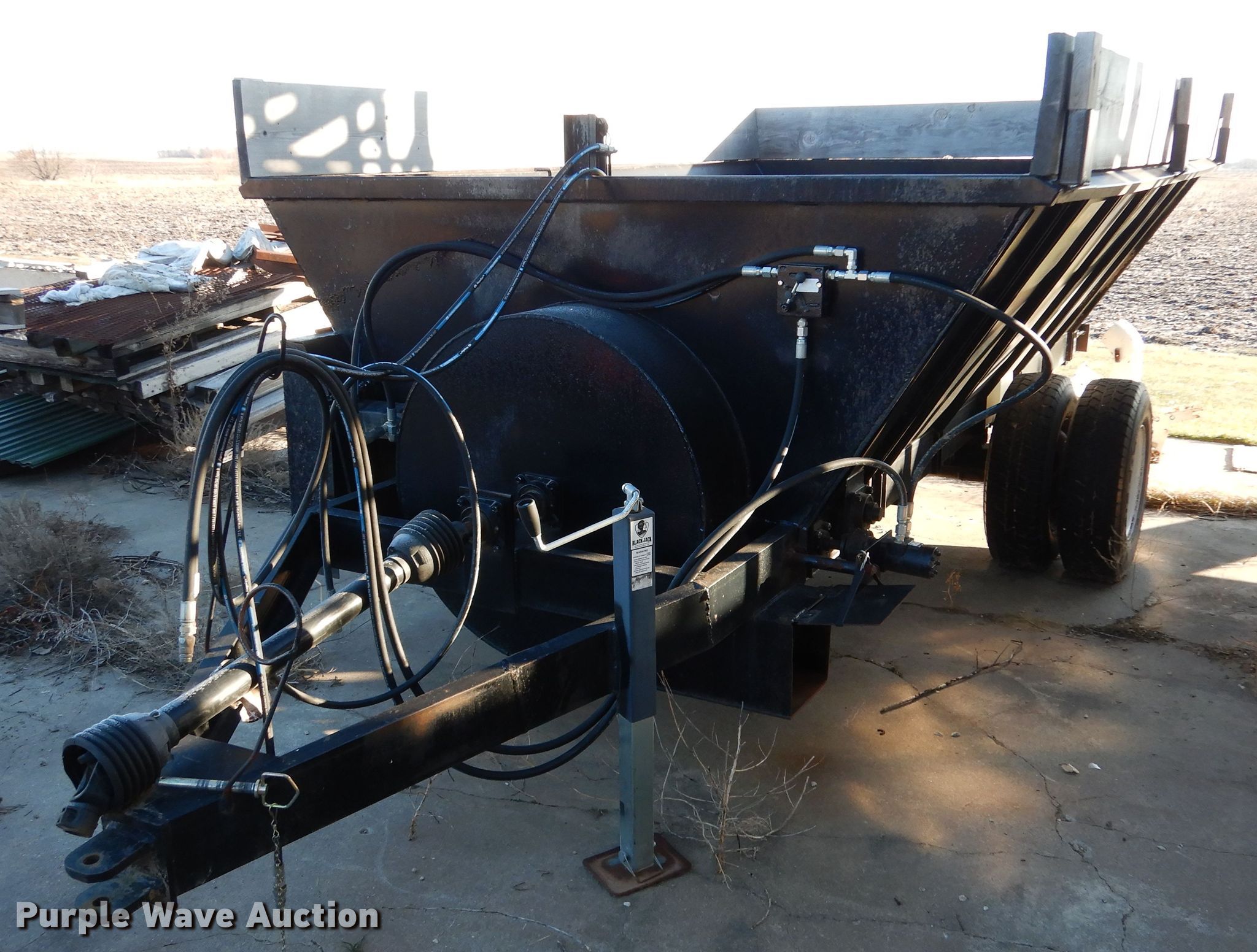 Purple Wave is selling a used Trailer Other in Minnesota. This item is a Shop built spreader trailer with the following: 12.5'L x 8'W overall, 4'W chain floor, 540 PTO, Hydraulic driven, 9.5R16.5 tires