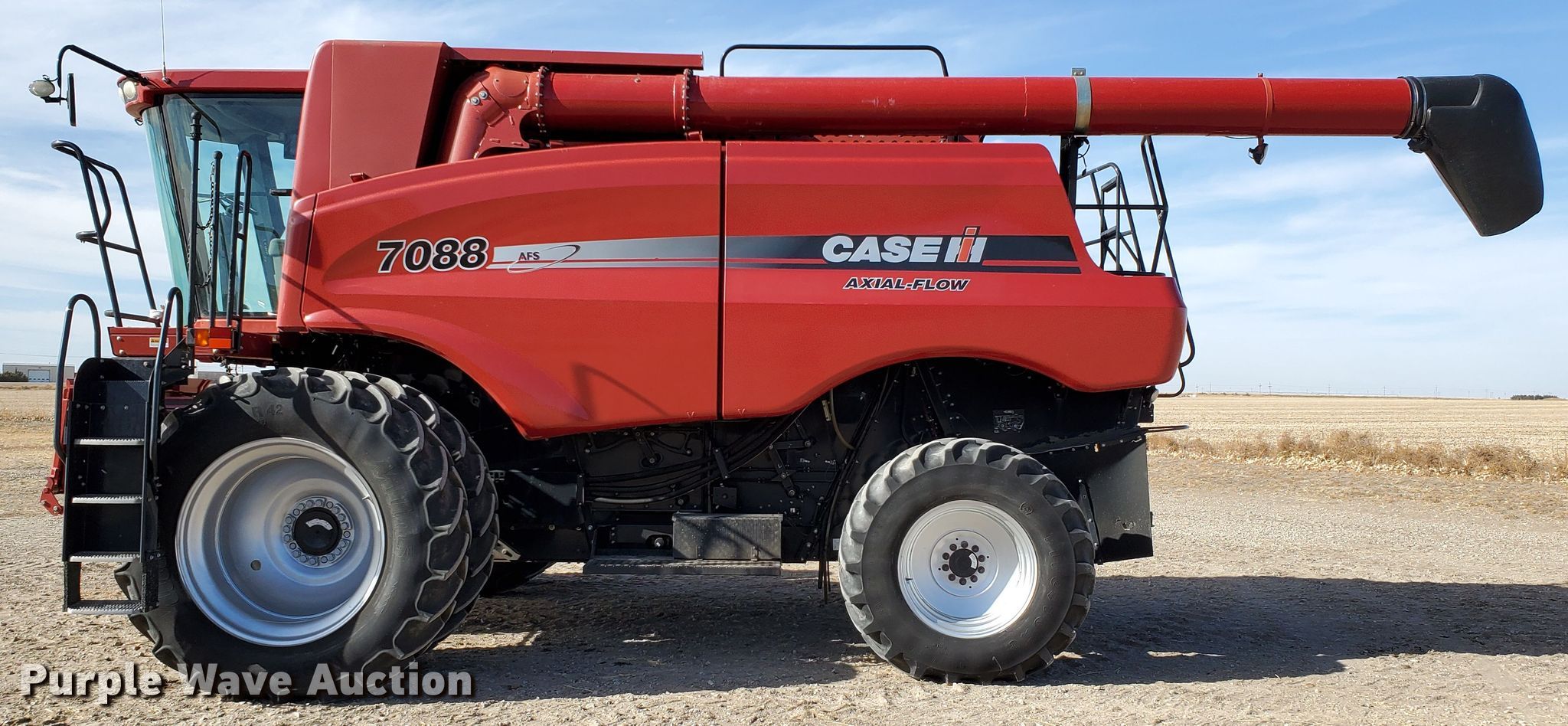 Purple Wave is selling a used Combine in Kansas. This item is a 2009 Case IH 7088 combine with the following: Engine hours: 2,656, Separator hours: 2,001, Serial: Y8G000063, Stock #: 11313