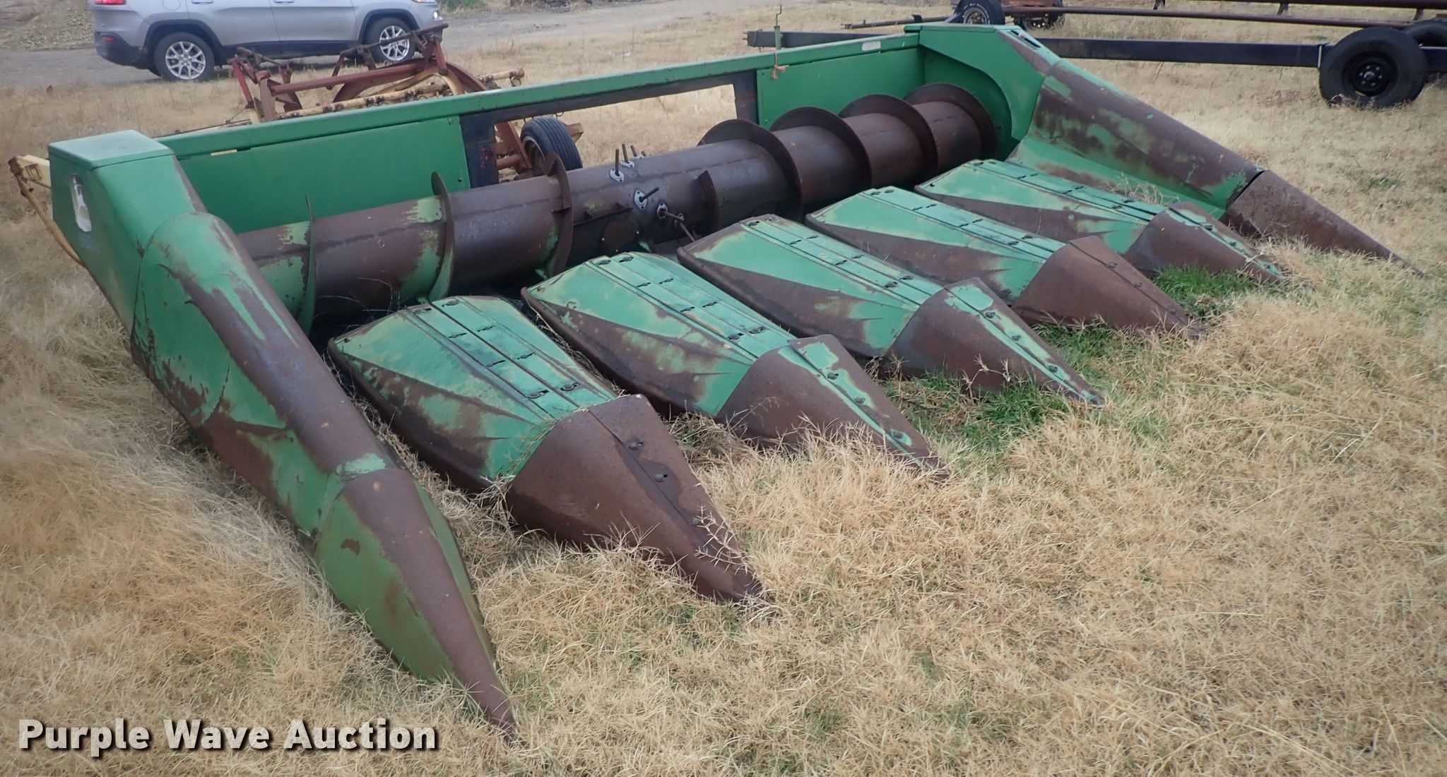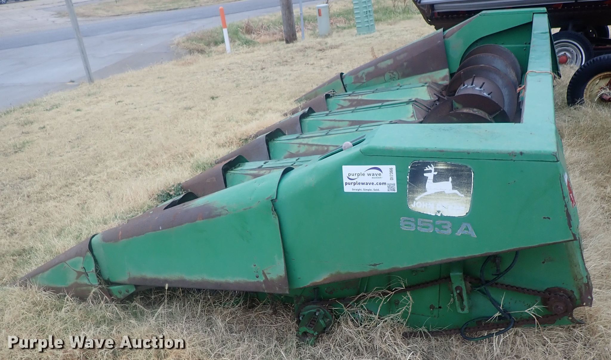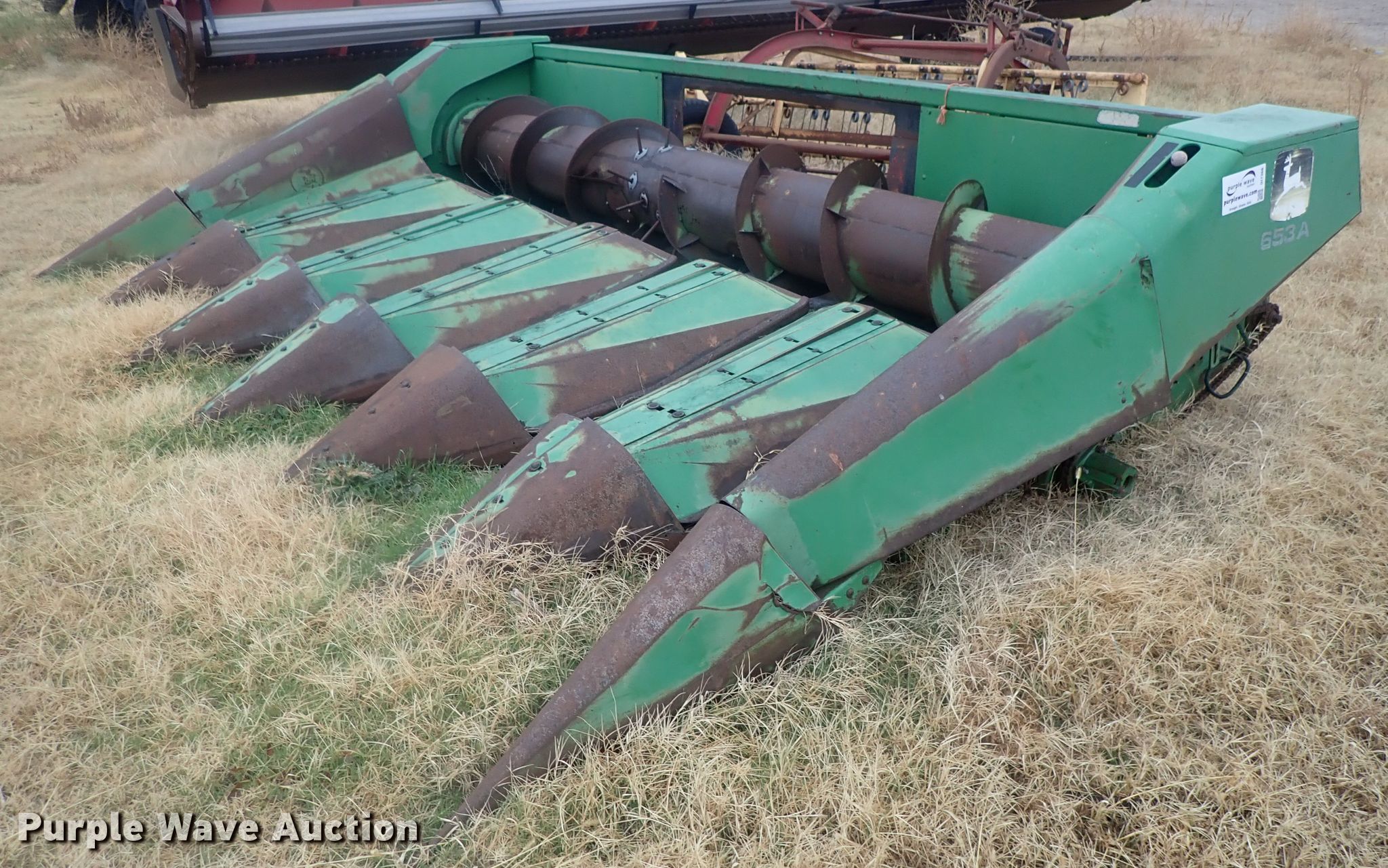 Purple Wave is selling a used Corn or Row Head in Kansas. This item is a John Deere 653A all-crop head with the following: Six rows, 30" row spacing, Unit# 187705
