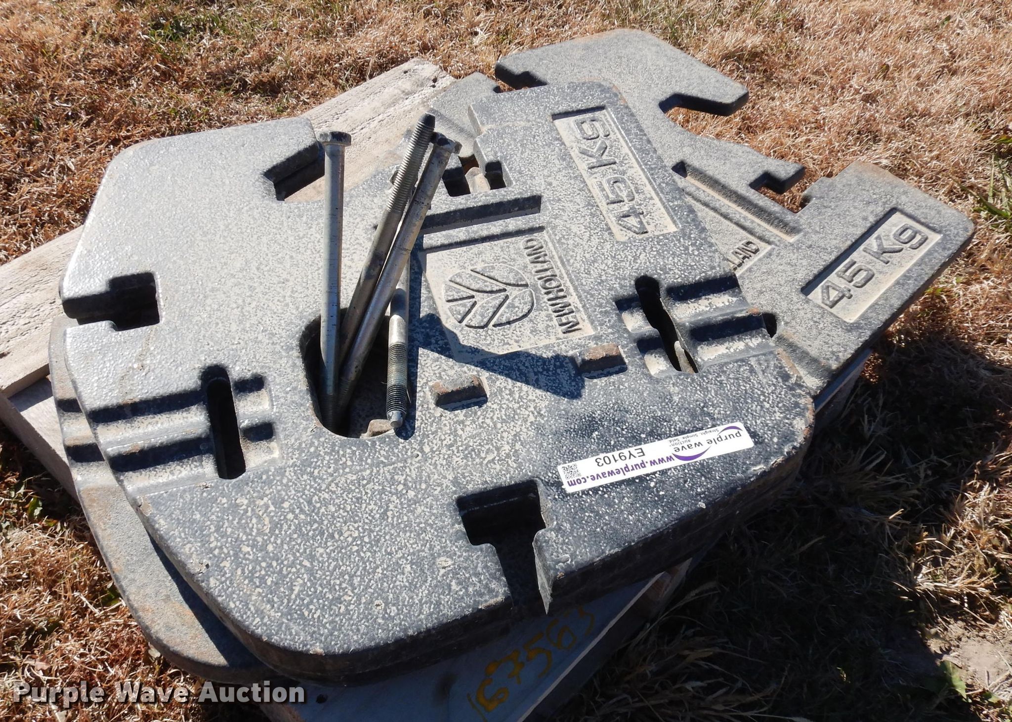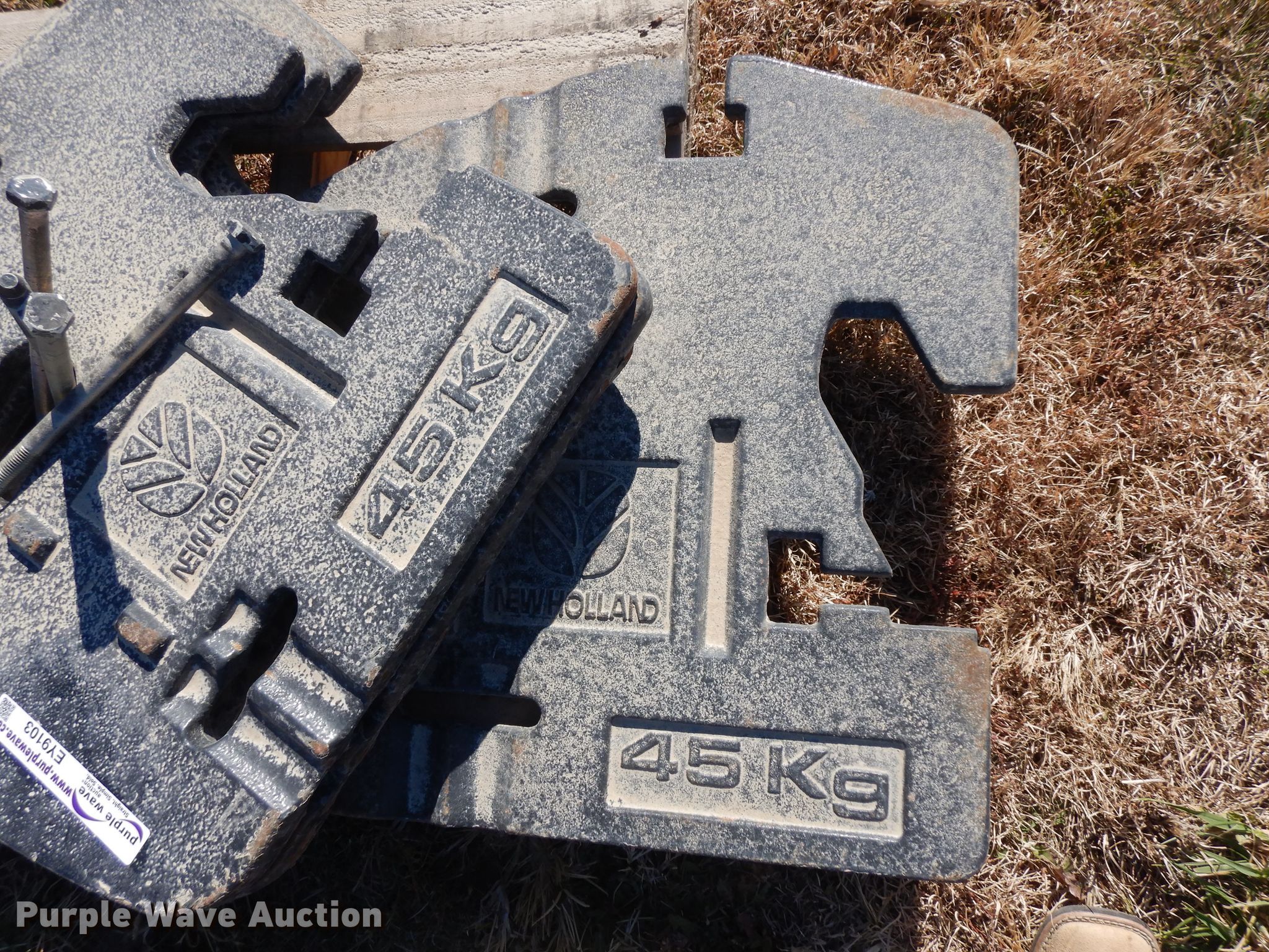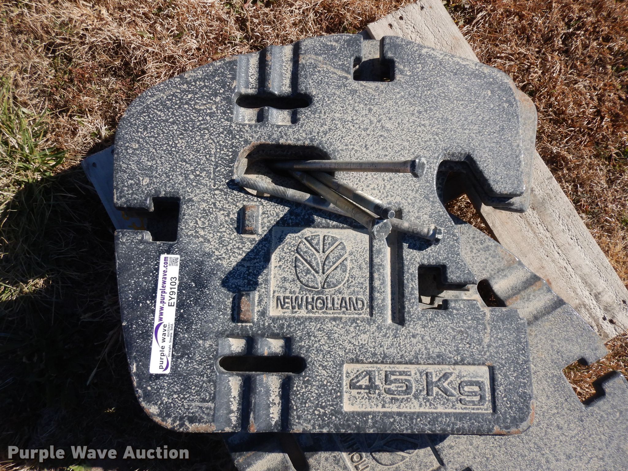 Purple Wave is selling a used Ag Tractor Loader or Attach. in Kansas. This item is a (4) New Holland suitcase weights with the following: 45 kg each