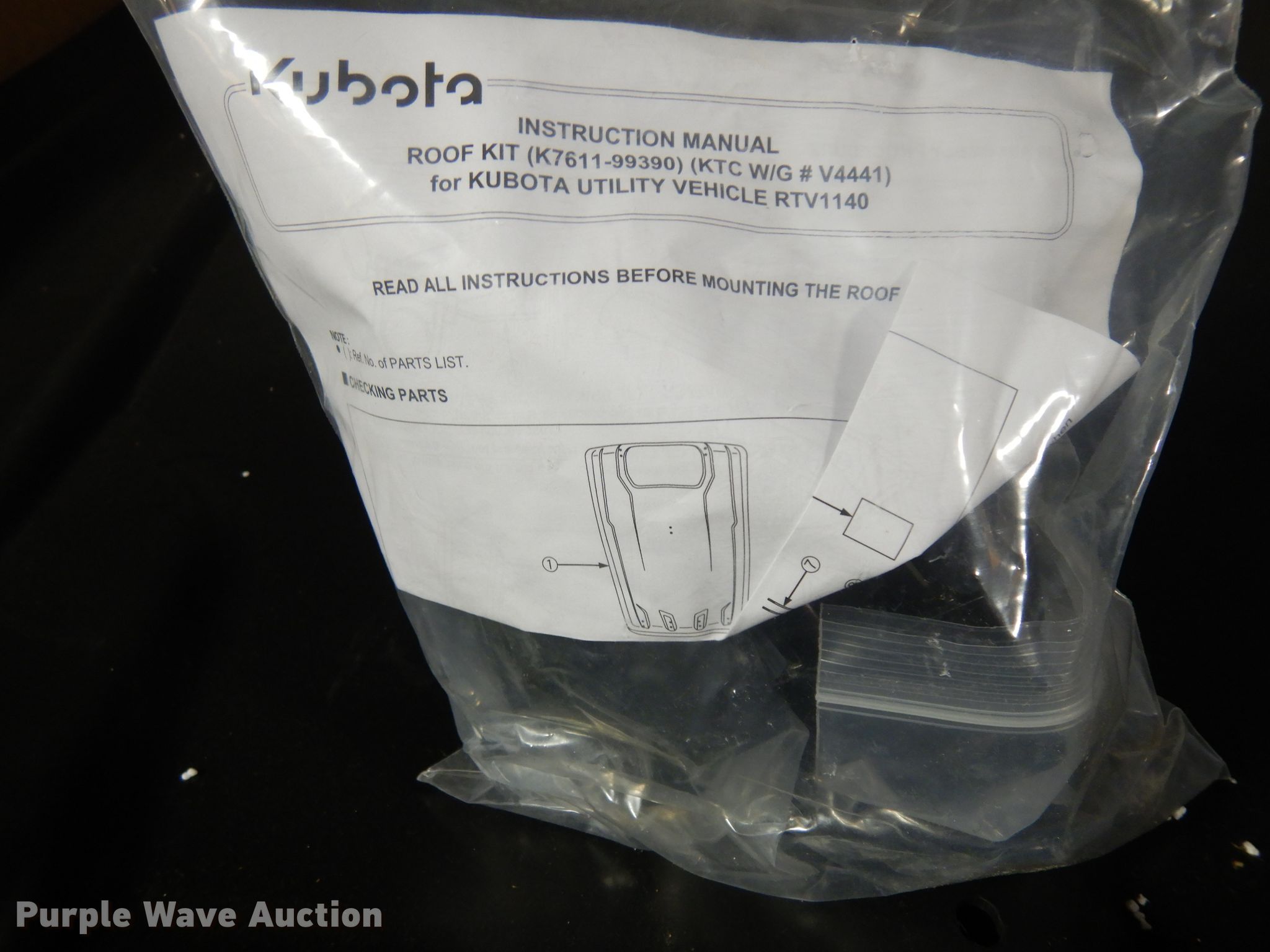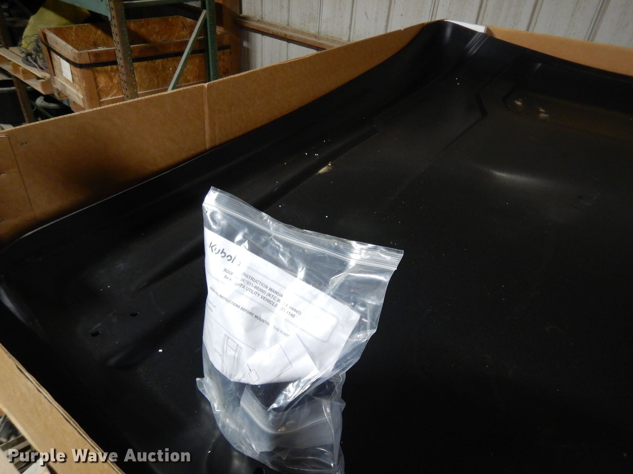 Purple Wave is selling a used Utility Vehicle in Kansas. This item is a Kubota UTV roof kit with the following: Hardware, Fits Kubota RTV1140 utility vehicles
