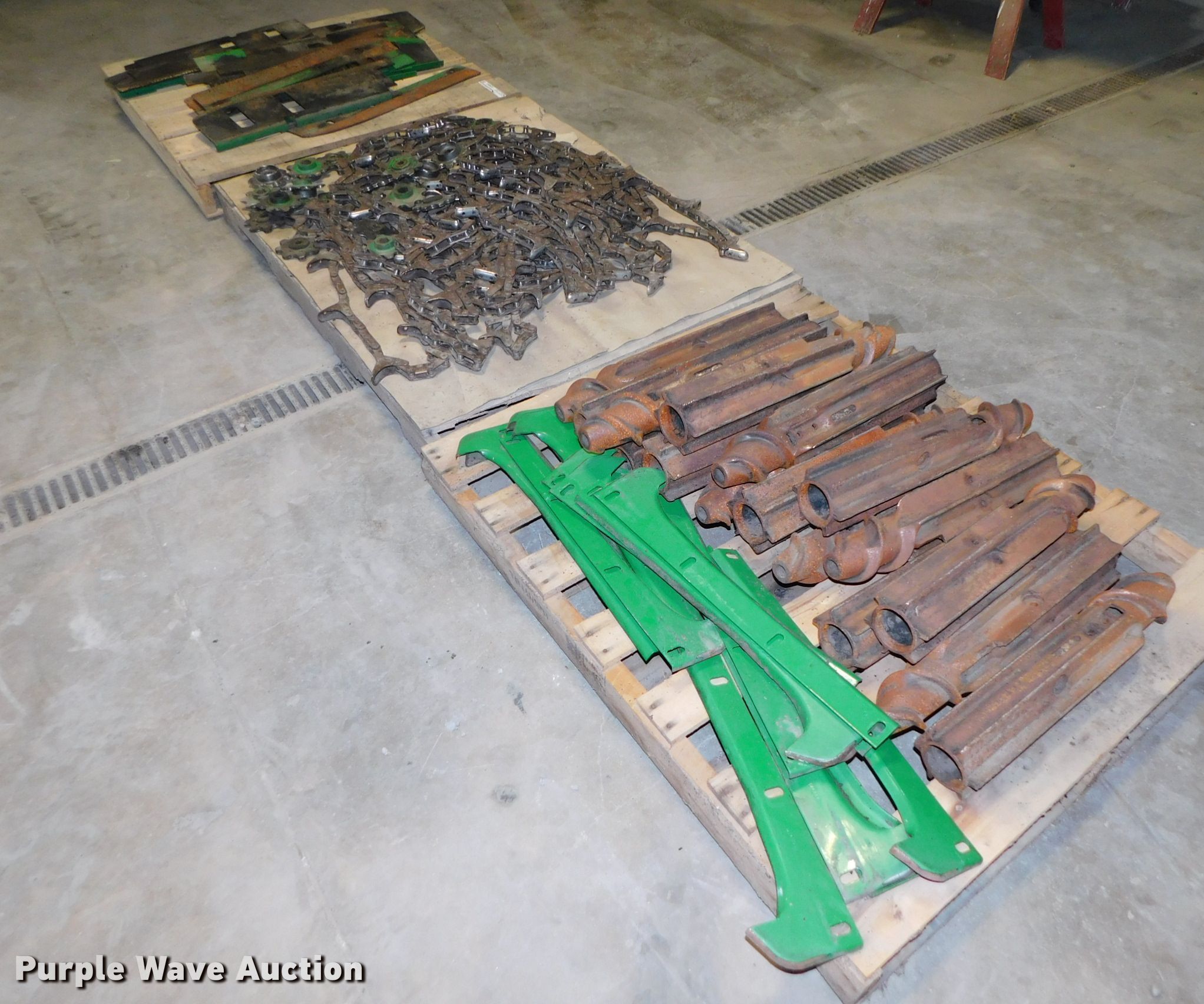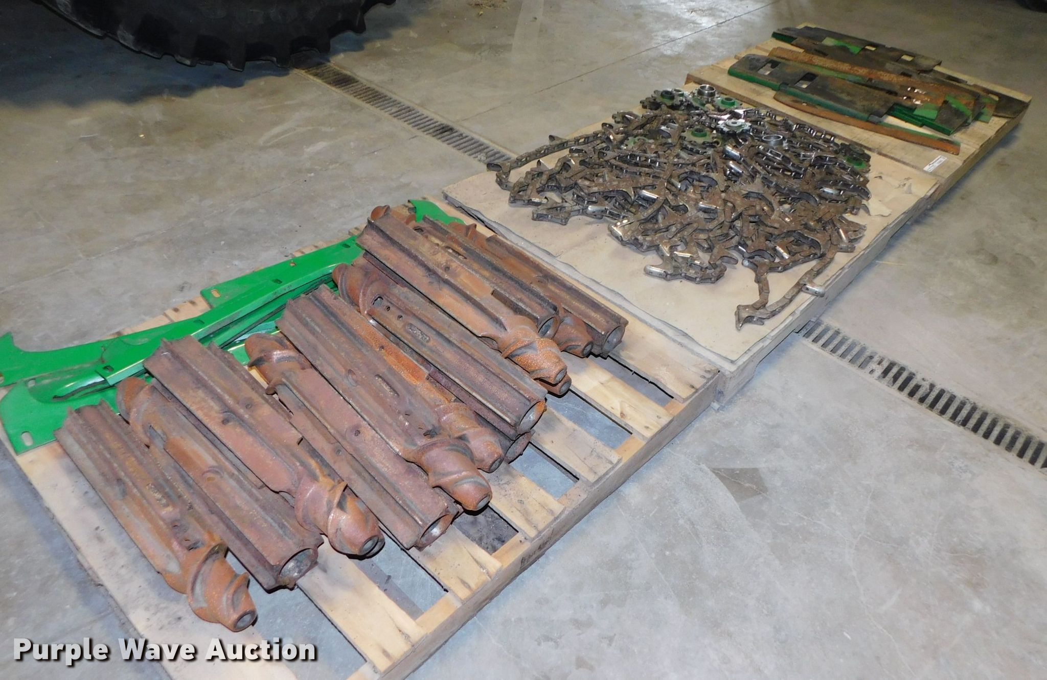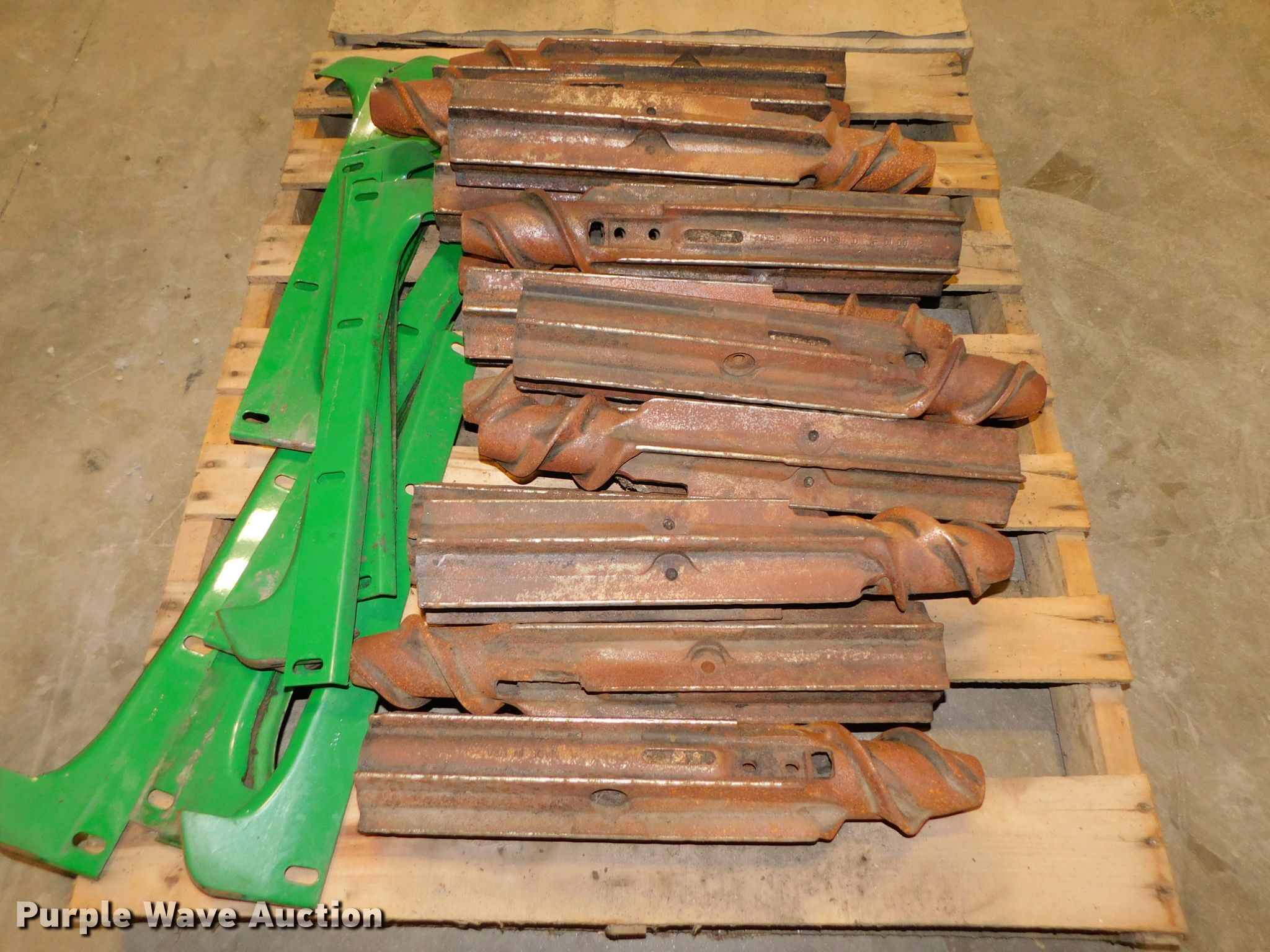 Purple Wave is selling a used Harvester Attach. in Nebraska. This item is a Corn head parts with the following: Hydraulic deck plates, Right and left sides, Gathering chains and sprockets, Rollers, Stripper knives, Removed from John Deere 893B corn head