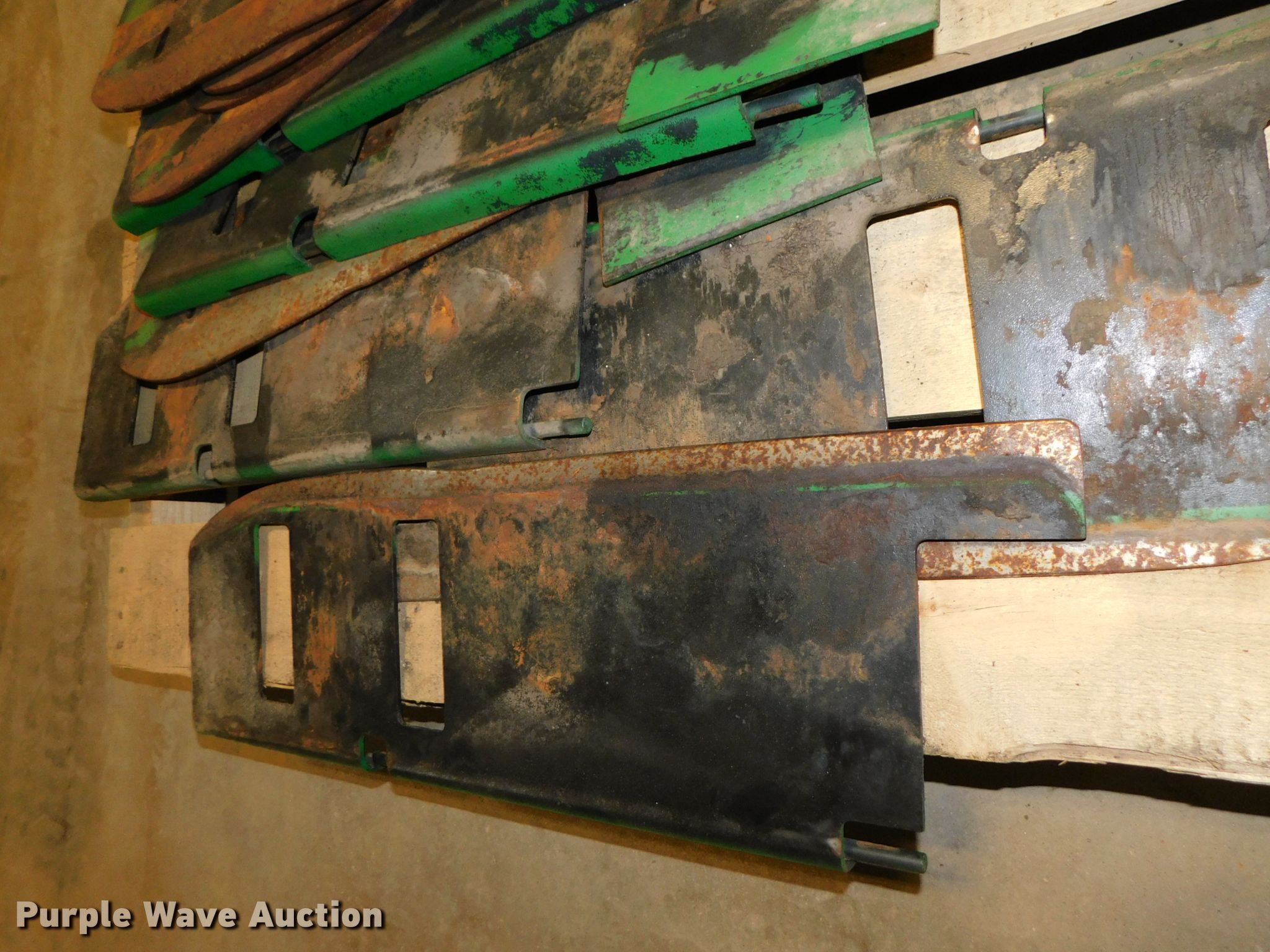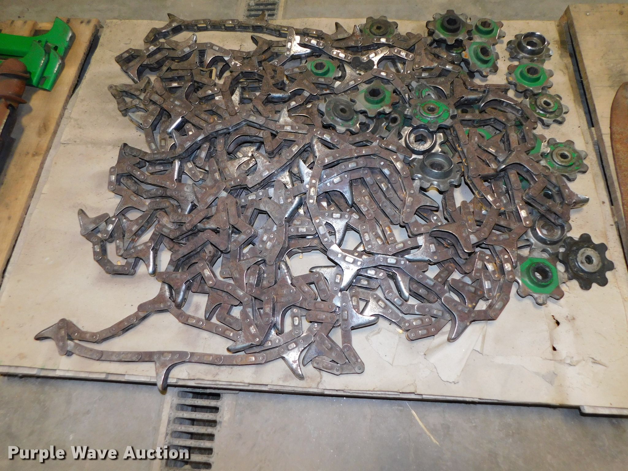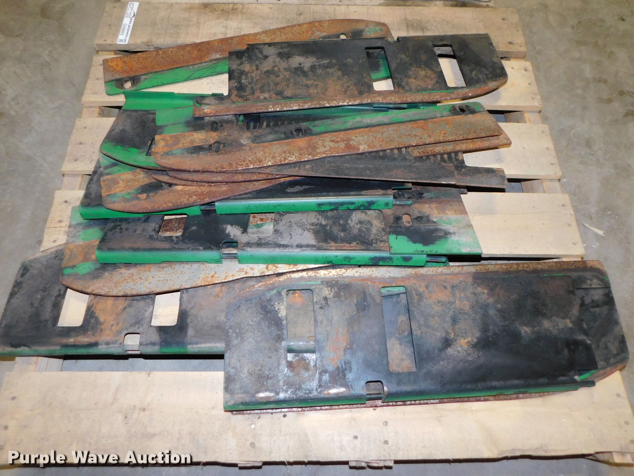 Purple Wave is selling a used Harvester Attach. in Nebraska. This item is a Corn head parts with the following: Hydraulic deck plates, Right and left sides, Gathering chains and sprockets, Rollers, Stripper knives, Removed from John Deere 893B corn head