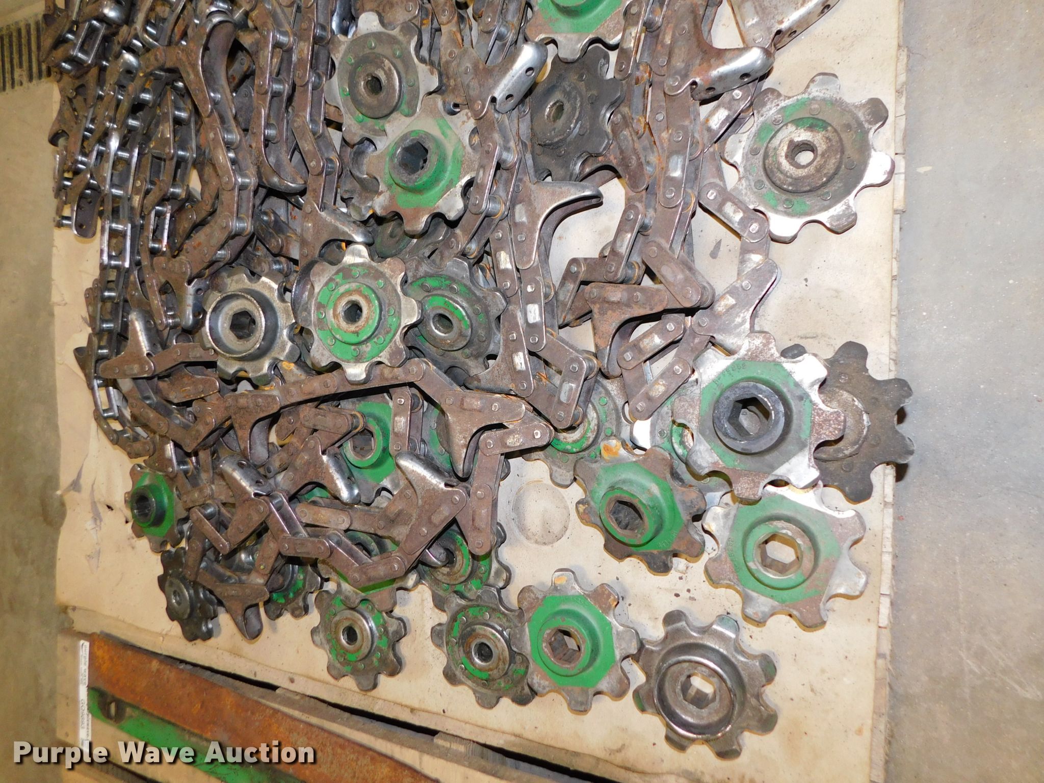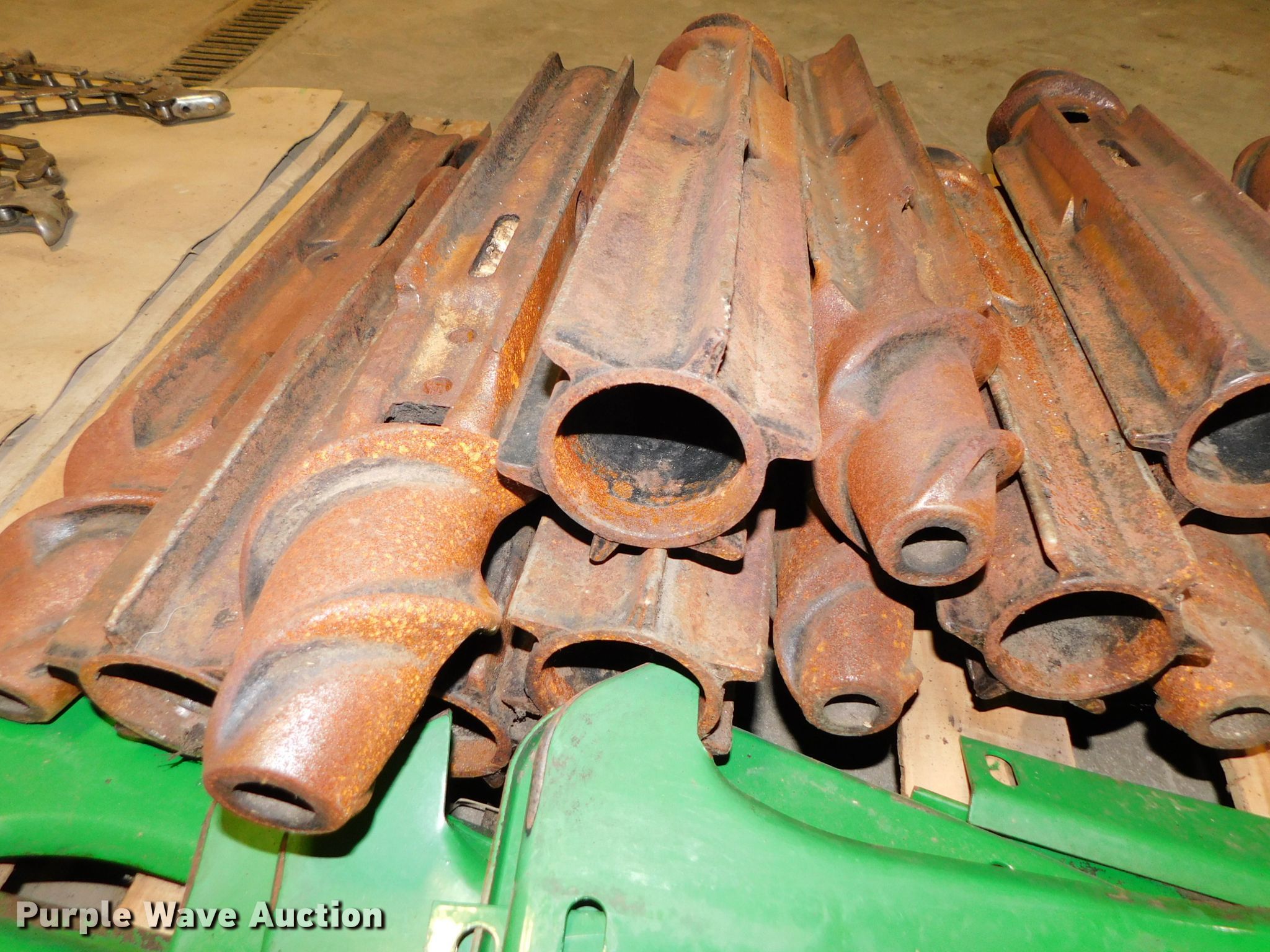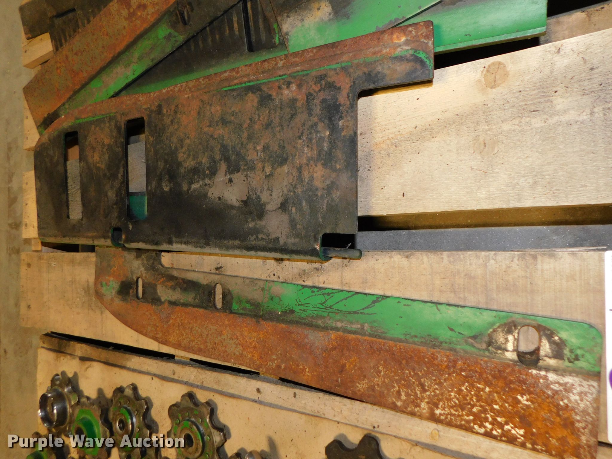 Corn head parts. Hydraulic deck plates Right and left sides, Gathering chains and sprockets, Rollers, Stripper knives, Removed from John Deere 893B corn head. TB Farms & Seed Sales. 71365 570th Ave. Fairbury, NE 68352