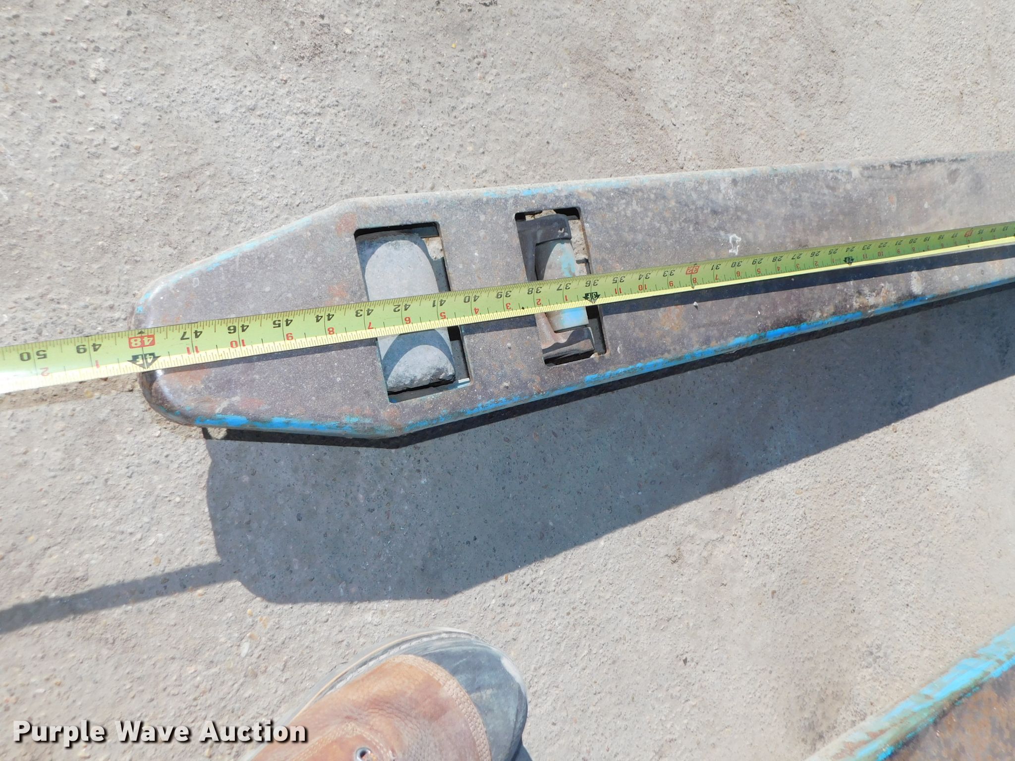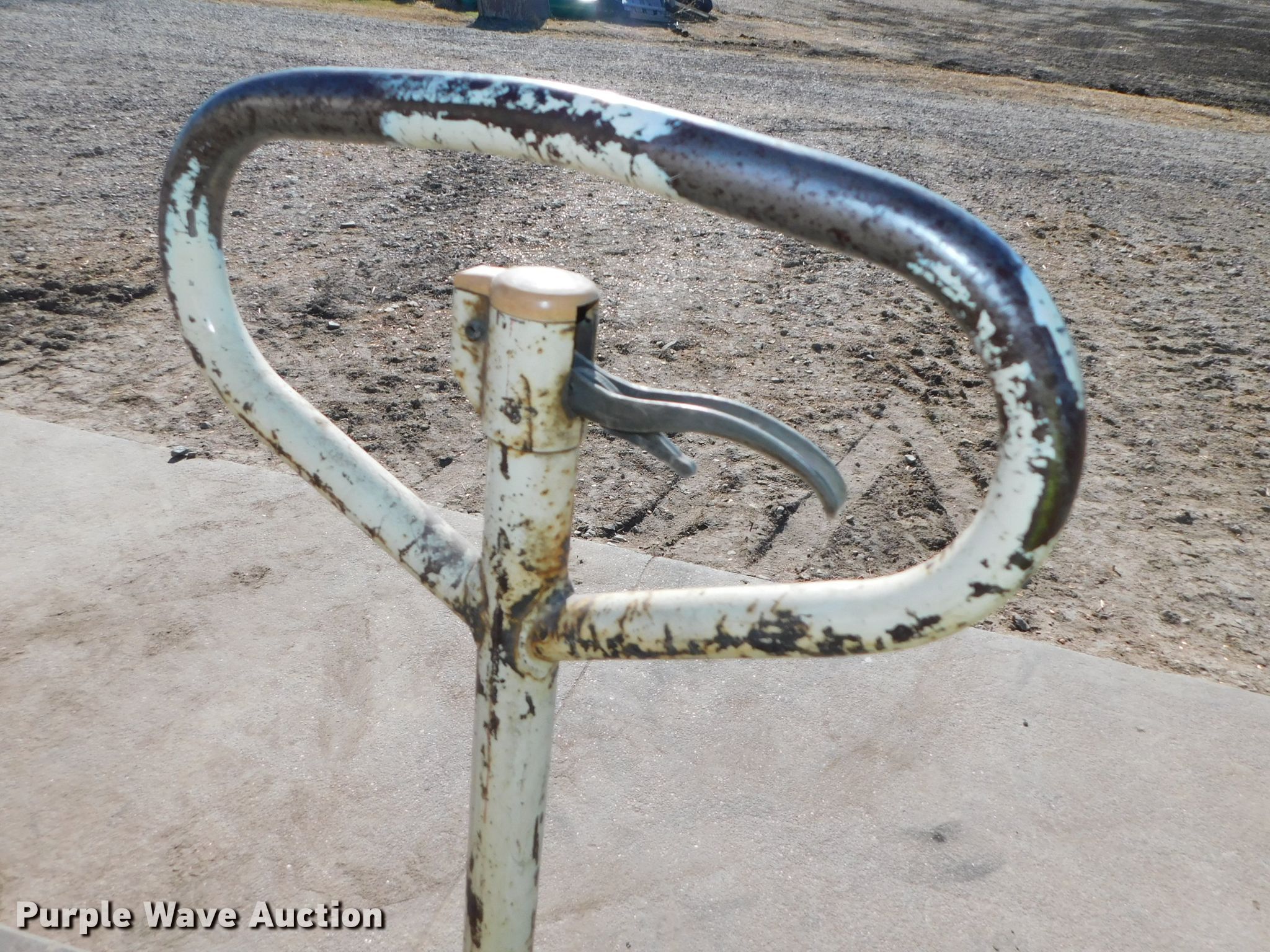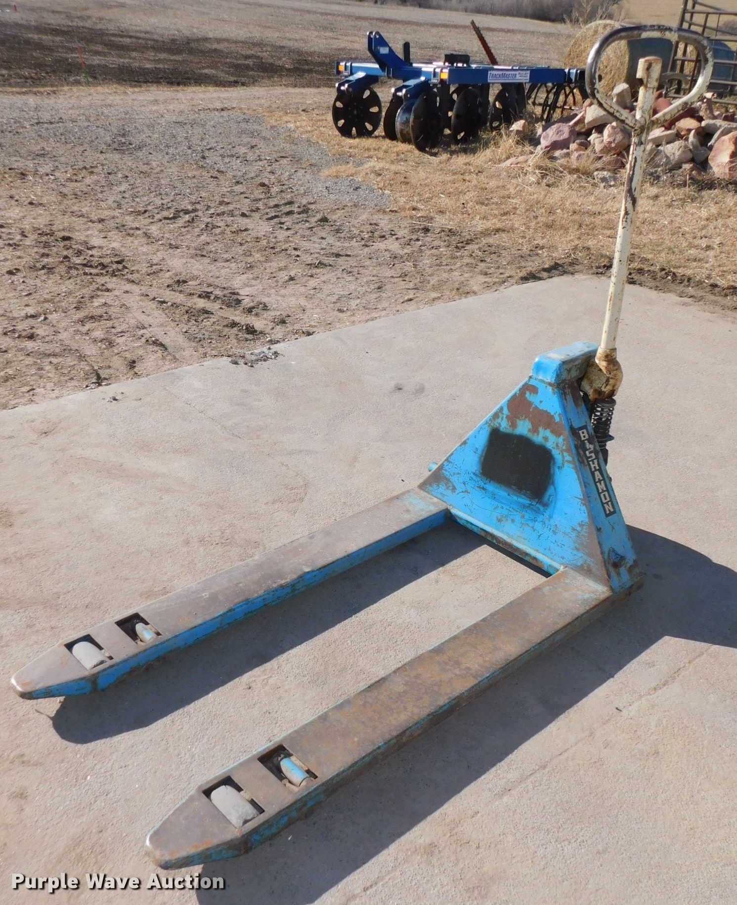 Bulk seed handling equipment. Minden Machine Shop Patriot Bulk seed bag forklift attachment, Fork pockets, Shop built bulk seed bag forklift attachment, Bishamon hydraulic pallet jack 48"L forks. TB Farms & Seed Sales. 71365 570th Ave. Fairbury, NE 68352