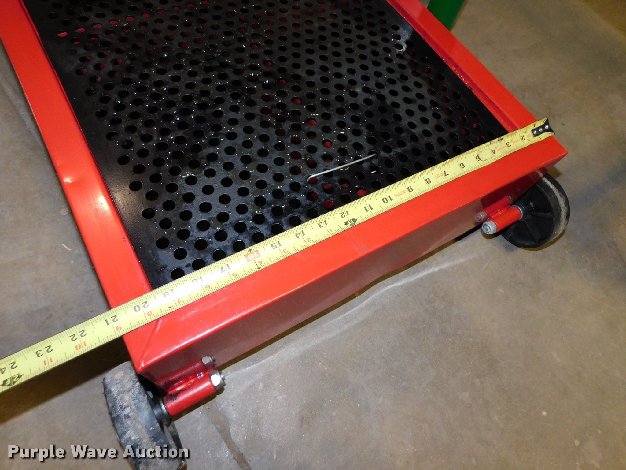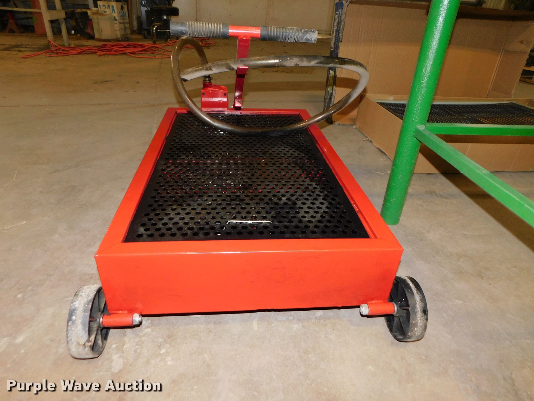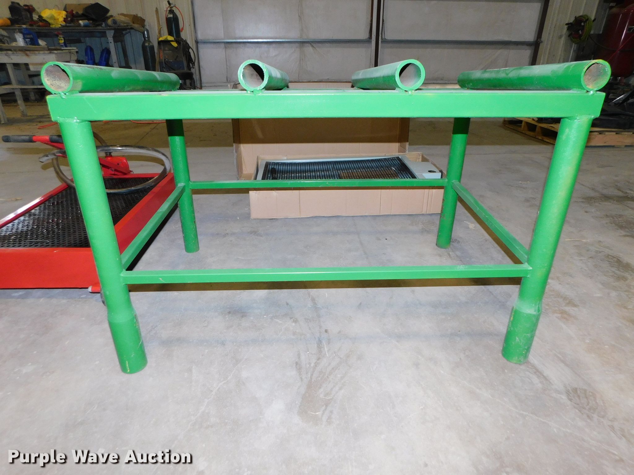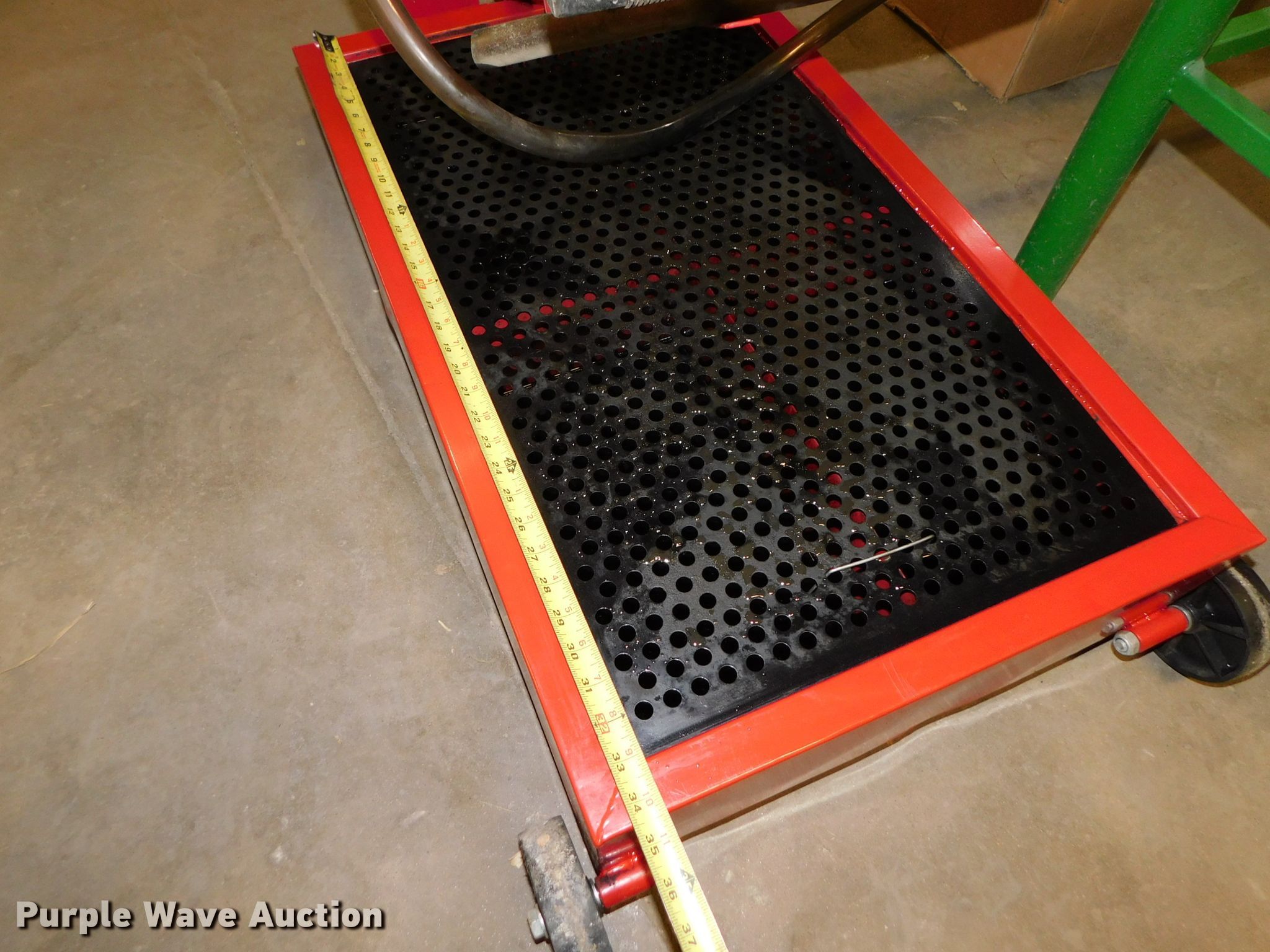 Purple Wave is selling a used Tools in Nebraska. This item is a Tools with the following: Shop built 55 gallon drum rack, Approx. 46"W x 30"D x 32"H, Roughneck 15 gallon oil drain dolly, Manual pump, Handle, Casters, Roughneck 15 gallon oil drain dolly, 110V pump, Handle, Casters, Unused
