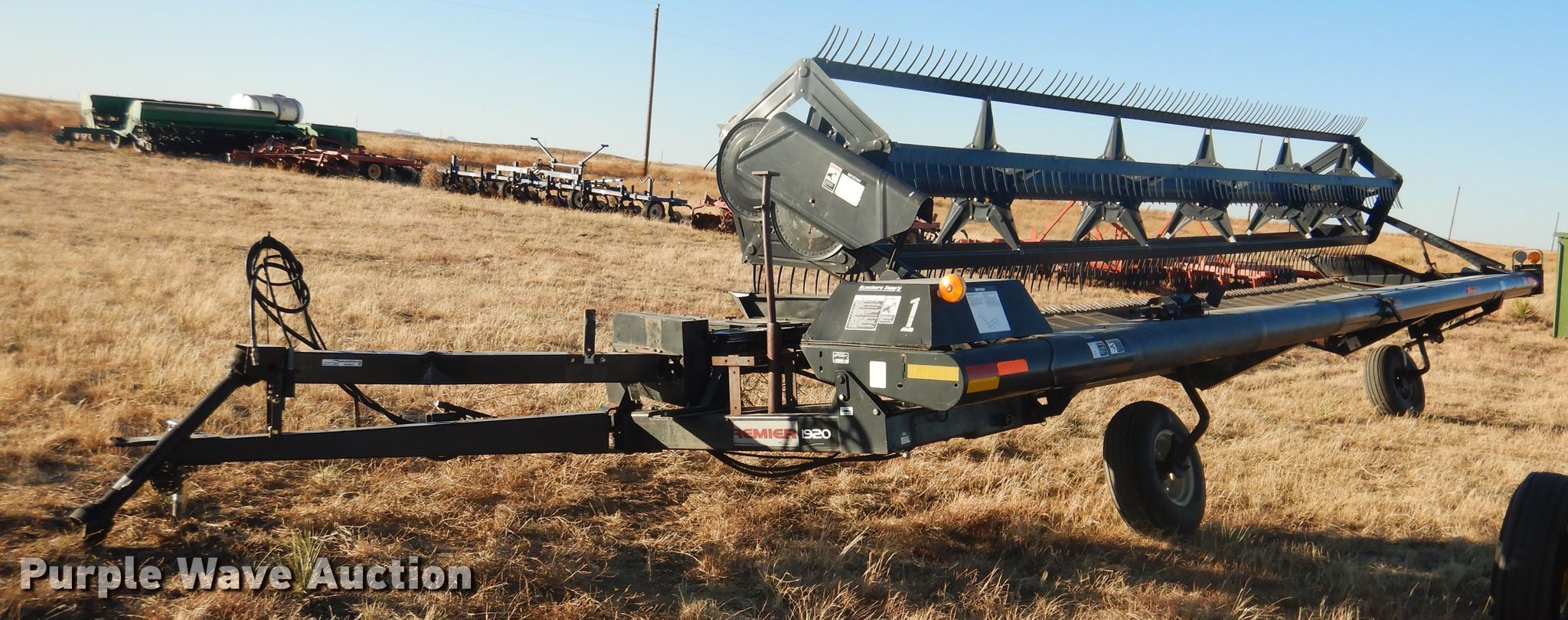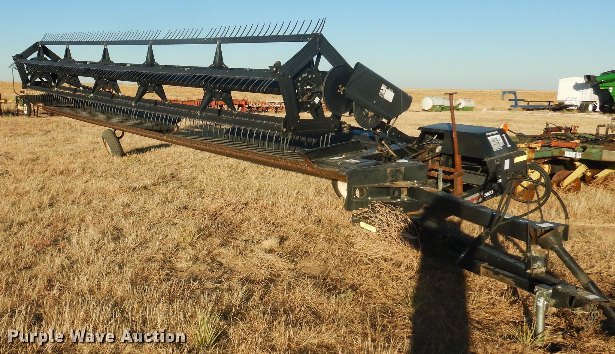 Purple Wave is selling a used Windrower Pull Type in Texas. This item is a 2005 MacDon windrower with the following: Draper head, 30'W, Hydraulic head tilt, 1000 PTO, Swivel hitch, Serial 166096