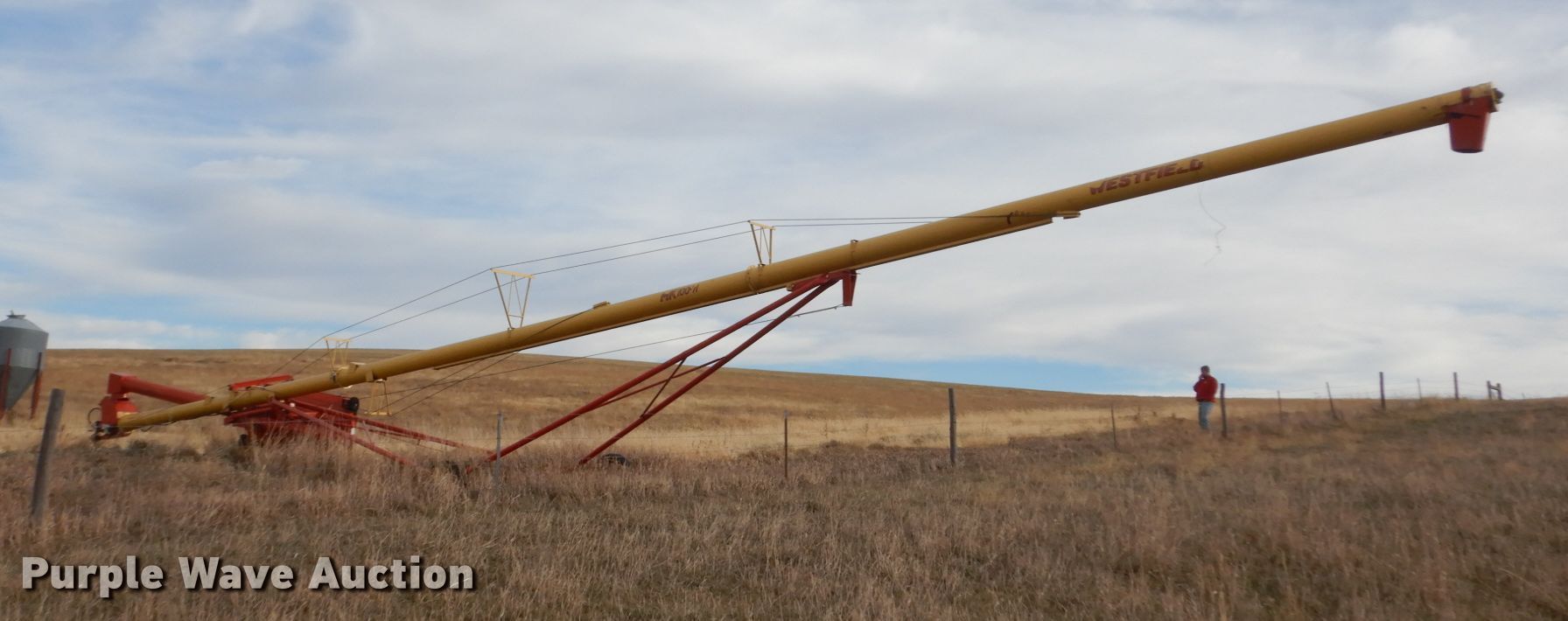 Purple Wave is selling a used Auger or Conveyor in South Dakota. This item is a Westfield MK100-71 grain auger with the following: 71'L x 10" diameter, Hydraulic lift, Swing-out hopper, 540 PTO, 205/75R15 tires