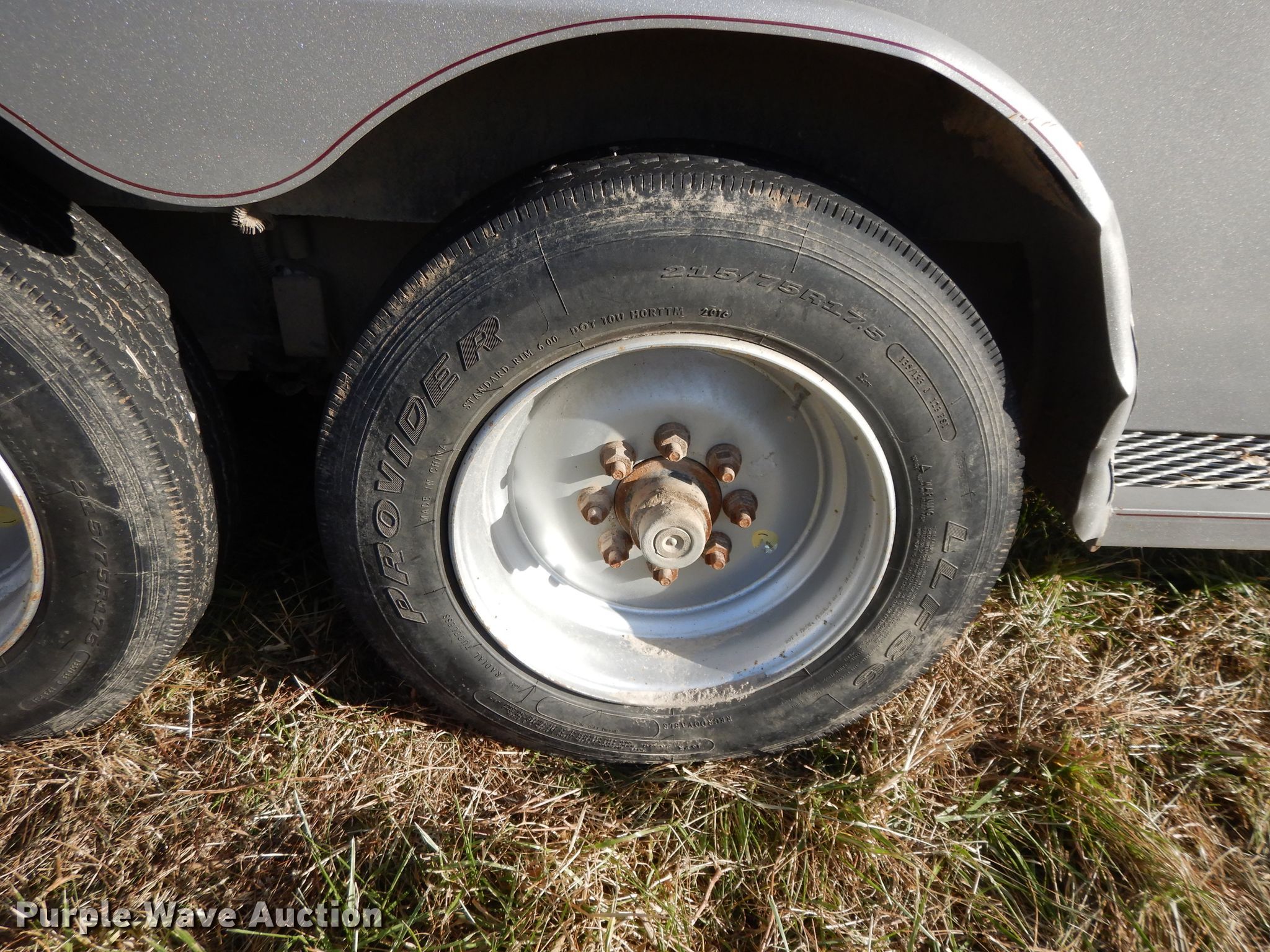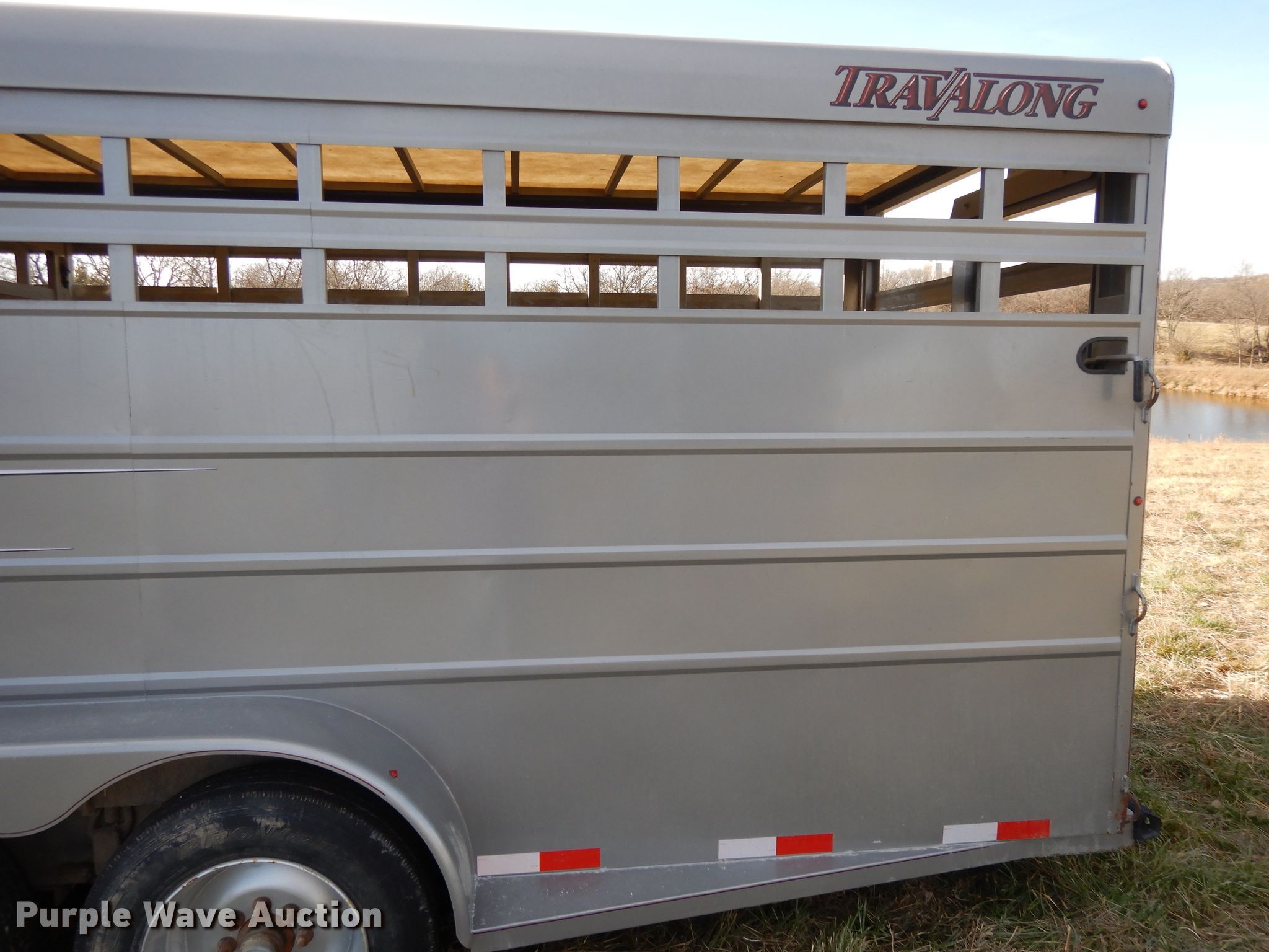 Purple Wave is selling a used Livestock Trailer in Kansas. This item is a 2017 Travalong livestock trailer with the following: 28'L x 82"W overall, 80" interior width, (2) center gates, Spring suspension, Electric brakes, Tandem axle, Steel wheels, 215/75R17.5 tires, GVWR 16,000 lbs