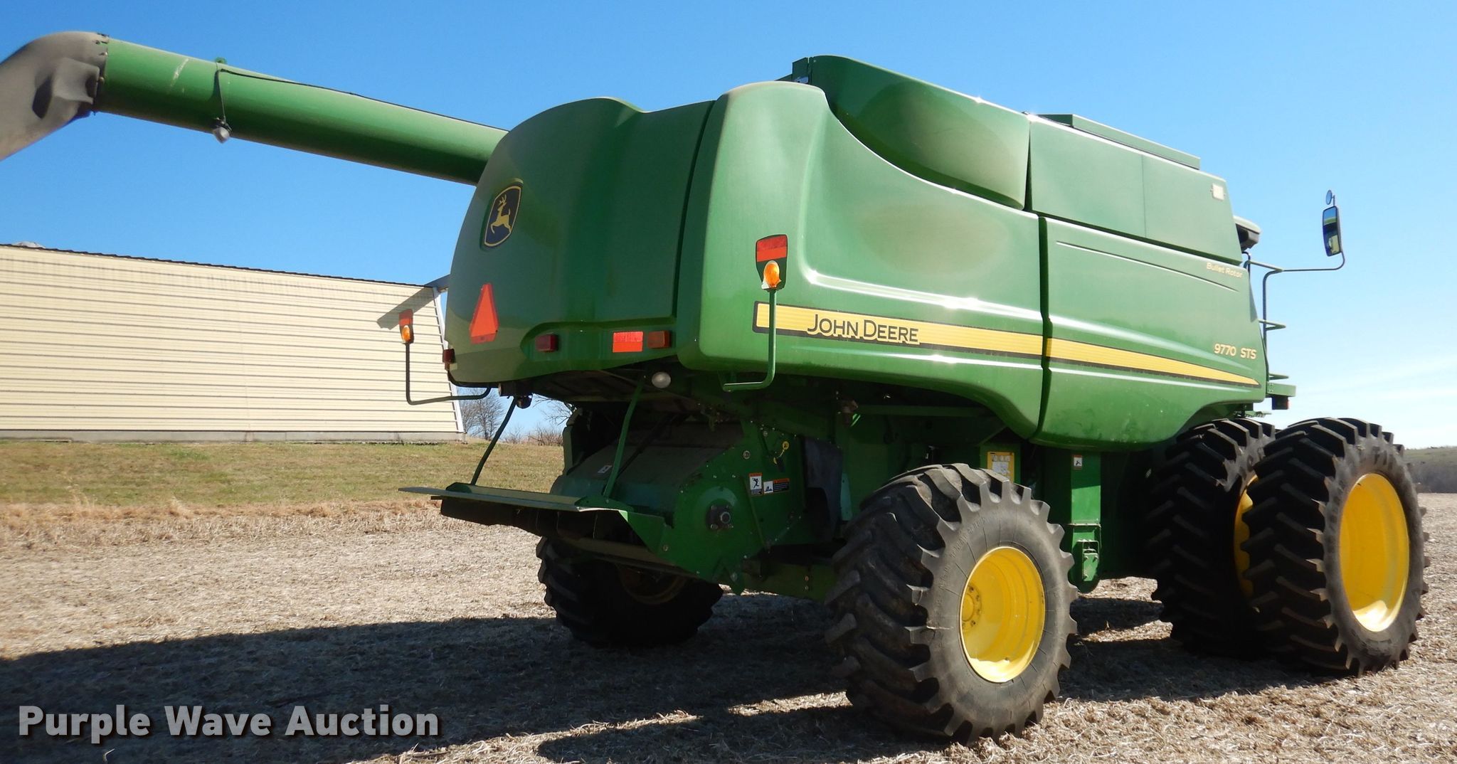 Purple Wave is selling a used Combine in Kansas. This item is a 2008 John Deere 9770 STS combine with the following: Engine hours: 4,025, Separator hours: 2,973, Serial: H09770S725962