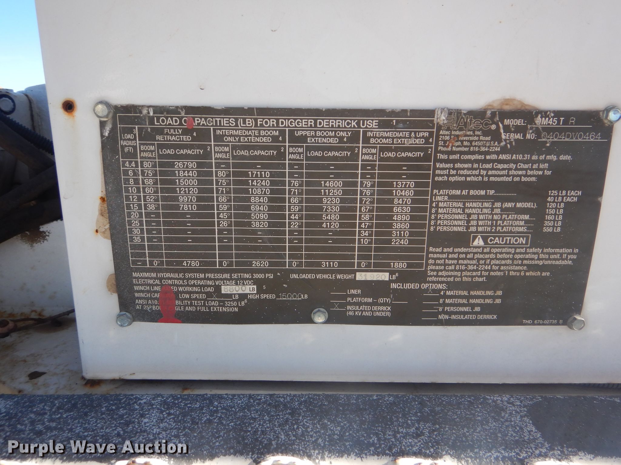 Purple Wave is selling a used Digger Derrick Truck in Oklahoma. This item is a 2004 International 7400 digger derrick truck with the following: 69,235 miles on odometer
