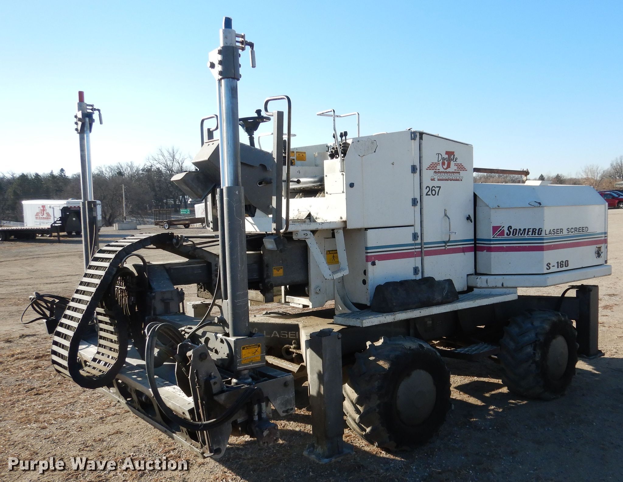 Somero S160 screed. 2,843 hours on meter, Serial: 109730293. Engine Deutz, Cylinders: 4, Fuel type: Diesel, HP: 57. Transmission Hydrostatic, Four wheel drive. Operational Screed 8'W, 20' boom length , 360 degree upper frame rotation, 3,000 rpm vibratory screed , Hydraulic outriggers, Laser plane dual control system. Tires Size: 11-15.5. Double J concrete. 2396 State Hwy 9. New London, MN 56273