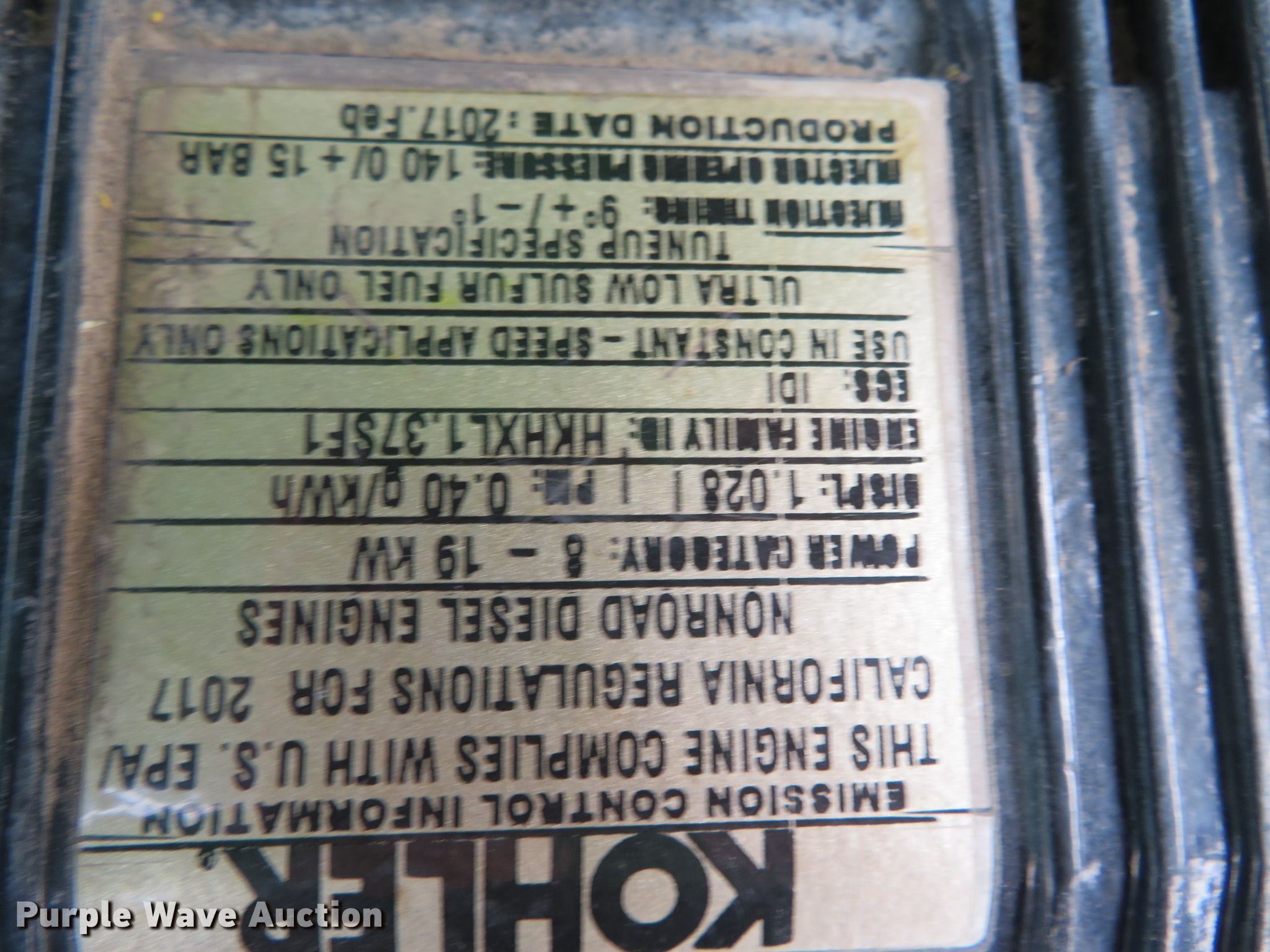 2017 Terex RL4 light plant. 4,863 hours on meter, Serial: RL4J-4807. Engine Kohler KDW1003-5138, Serial: 4703300486, Displacement: 1.028, Fuel type: Diesel. Operational Generator Pancake 201CSA5411, Watts: 6,000, kVA: 6, kW: 6, Phase: Single, Fuel tank, Trailer mounted, Light plant Bulbs: 4, Watts: 1,000, Tower height: 23.4', Hoist: Manual, Stabilizers. Trailer Ball hitch size: 2". Tires Tire size: ST175/80D13. Notes one light non functional. Transfer of ownership documentation will be a bill of sale. 4ZJSA101XH1004807. Geringer Construction. 358 Pcr 202. Perryville, MO 63775