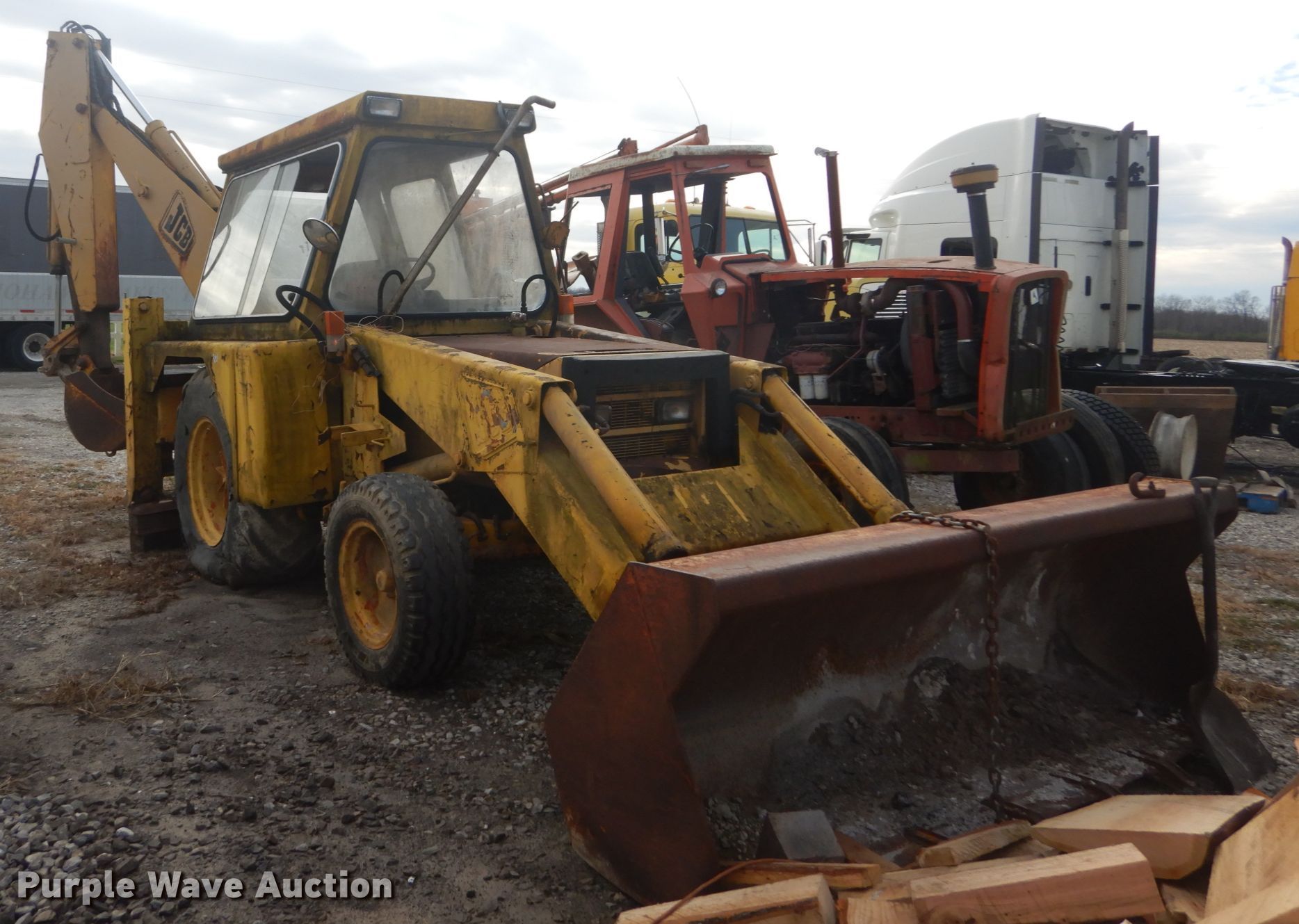1978 JCB 3D111 backhoe. 2312 hours on meter, Serial: 128851. Engine Cylinders: 4, Fuel type: Diesel. Transmission Powershift, 4F - 4R. Operators station Enclosed cab, Backhoe controls: Wobble stick / two stick. Operational Loader Bucket, Width: 92", Teeth: 7, Backhoe Extendable stick, Backhoe bucket Width: 24", Teeth: 4. Tires Front: 13.0/65R18, Rear: 18.4/15-16. Notes Backhoe bucket tooth missing, Hydraulic issue , Possible transmission issue, Non-operational unit. Breese, IL 62230