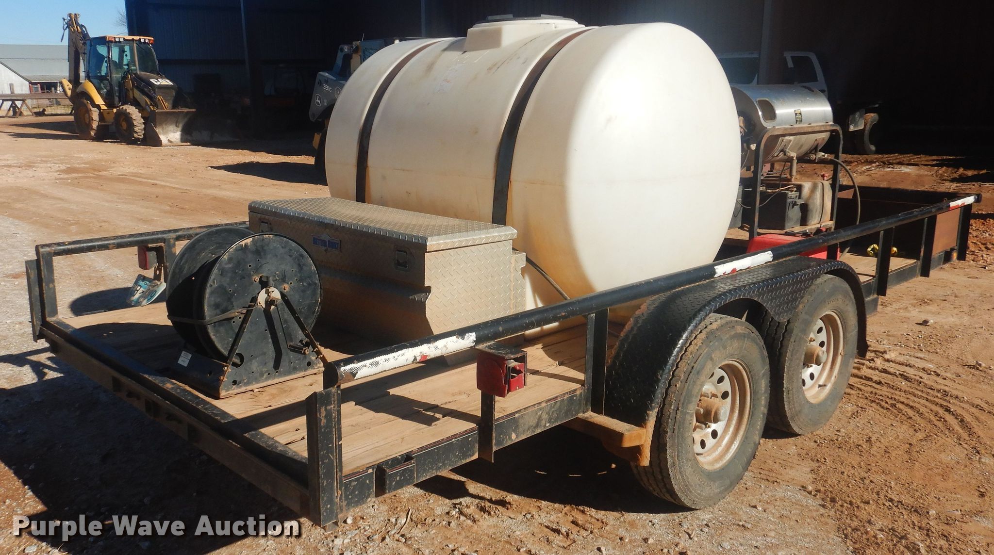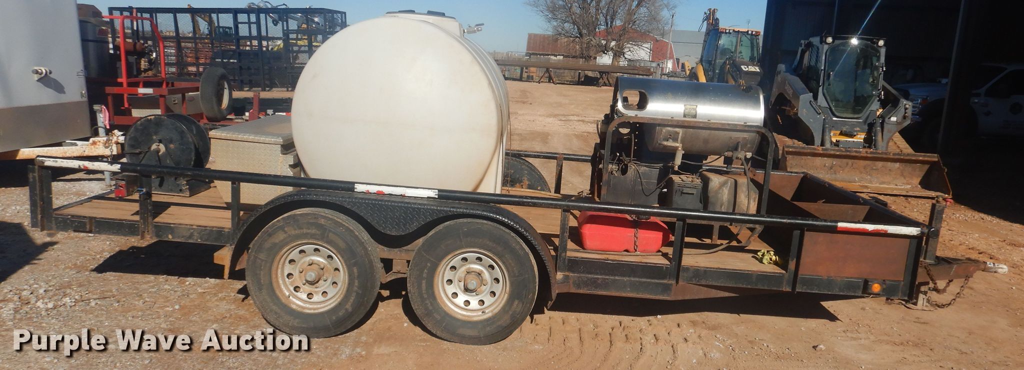 Purple Wave is selling a used Car or Utility Trailer in Oklahoma. This item is a 2006 Tex Mex utility trailer with pressure washer with the following: 20'L x 100"W overall, 16'3"L x 87"W wood deck, Karcher heated pressure washer, Honda GX630 gas engine, Engine hours: 663, 535 gallon poly tank, 2" ball hitch, Single leg landing gear, Spring suspension, Electric brakes, Tandem axle, Steel wheels, 225/75R45 tires, Unit# 42