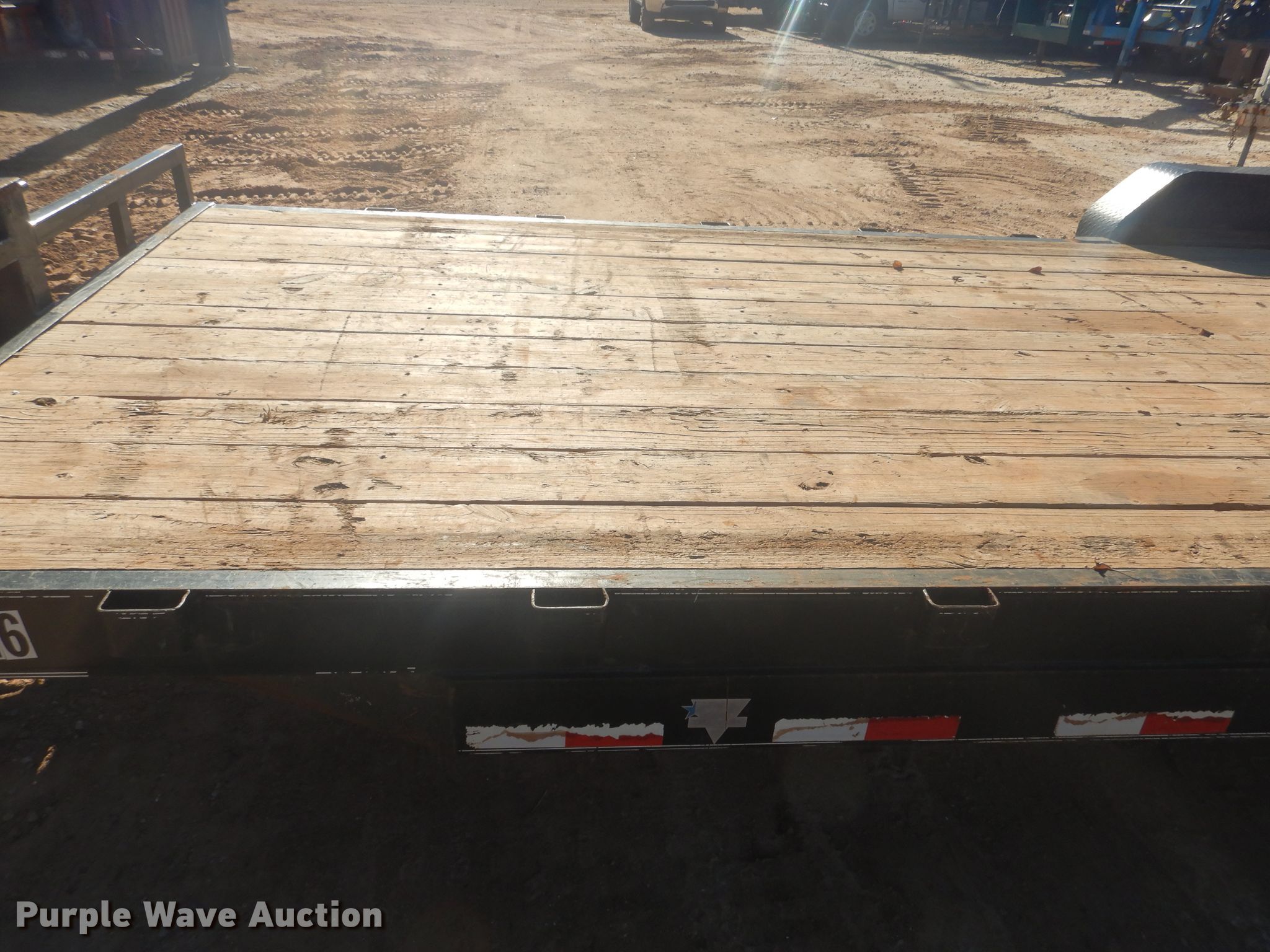 Purple Wave is selling a used Equip. Trailer in Oklahoma. This item is a 2016 PJ equipment trailer with the following: 25'L x 102"W overall, 22'L x 7'W wood deck, 5'L ramps, Single leg landing gear, Spring suspension, Electric brakes, Tandem axle, Steel wheels, 235/85R16 tires, GVWR 10,000 lbs, Unit# 16