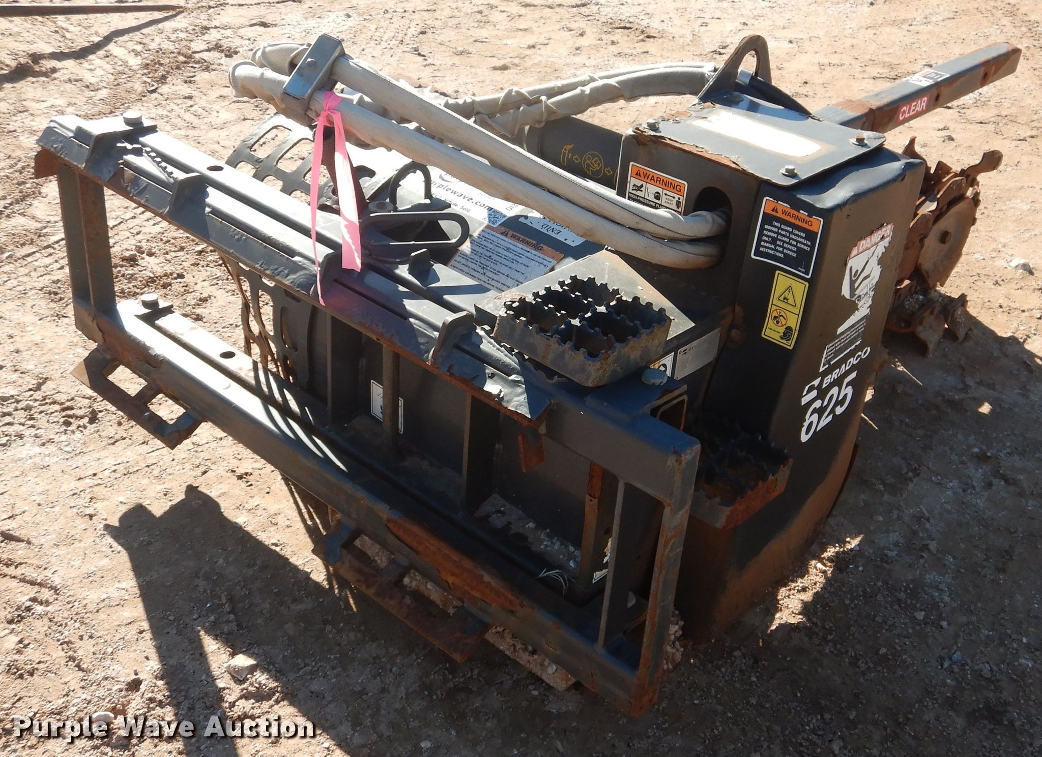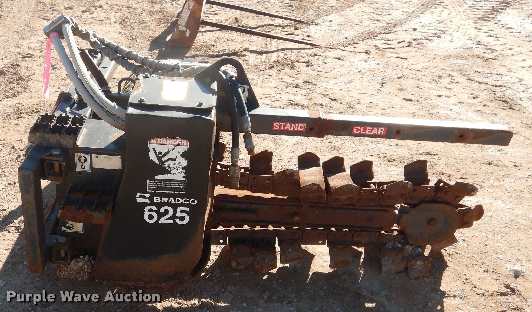 Purple Wave is selling a used Skid Steer Attach. in Oklahoma. This item is a Bradco 62S skid steer trencher with the following: Boom length: 36", Cutting width: 12", Serial 338337